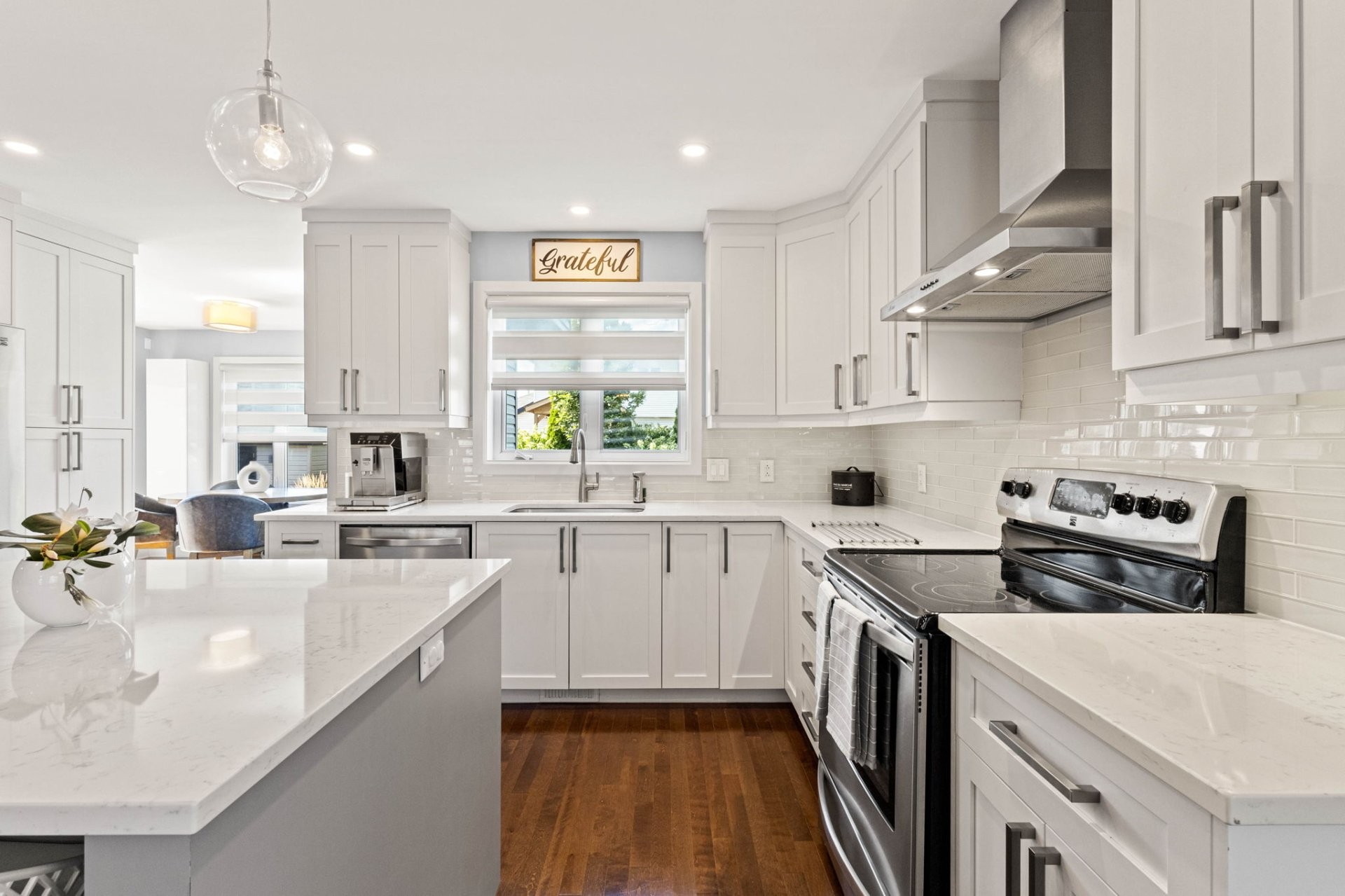 - Comptoirs en quartz et armoires de cuisine haut de gamme