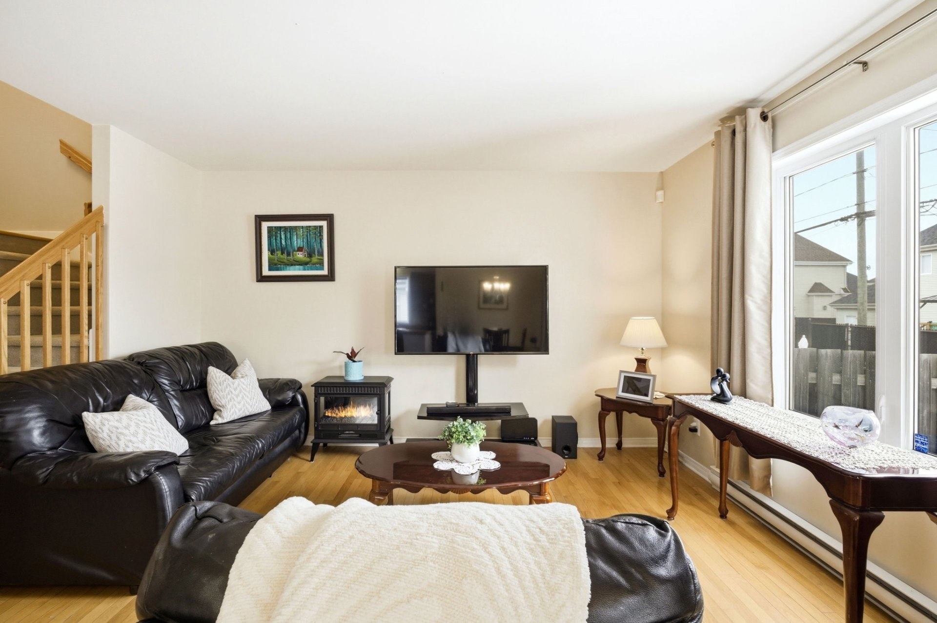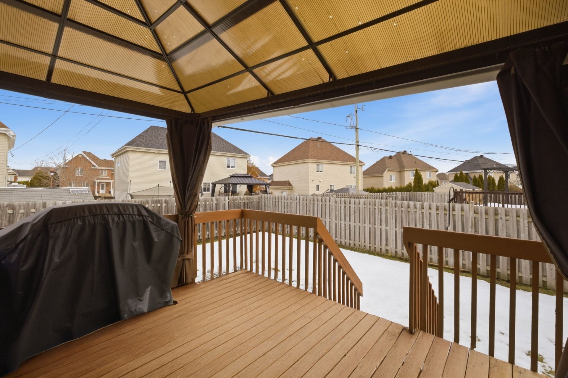 À l'extérieur, profitez d'une cour arrière entièrement clôturée et magnifiquement aménagée, avec balcon en bois, parfait pour les repas et les réceptions en plein air. L'entrée asphaltée surdimensionnée permet de stationner jusqu'à quatre véhicules.