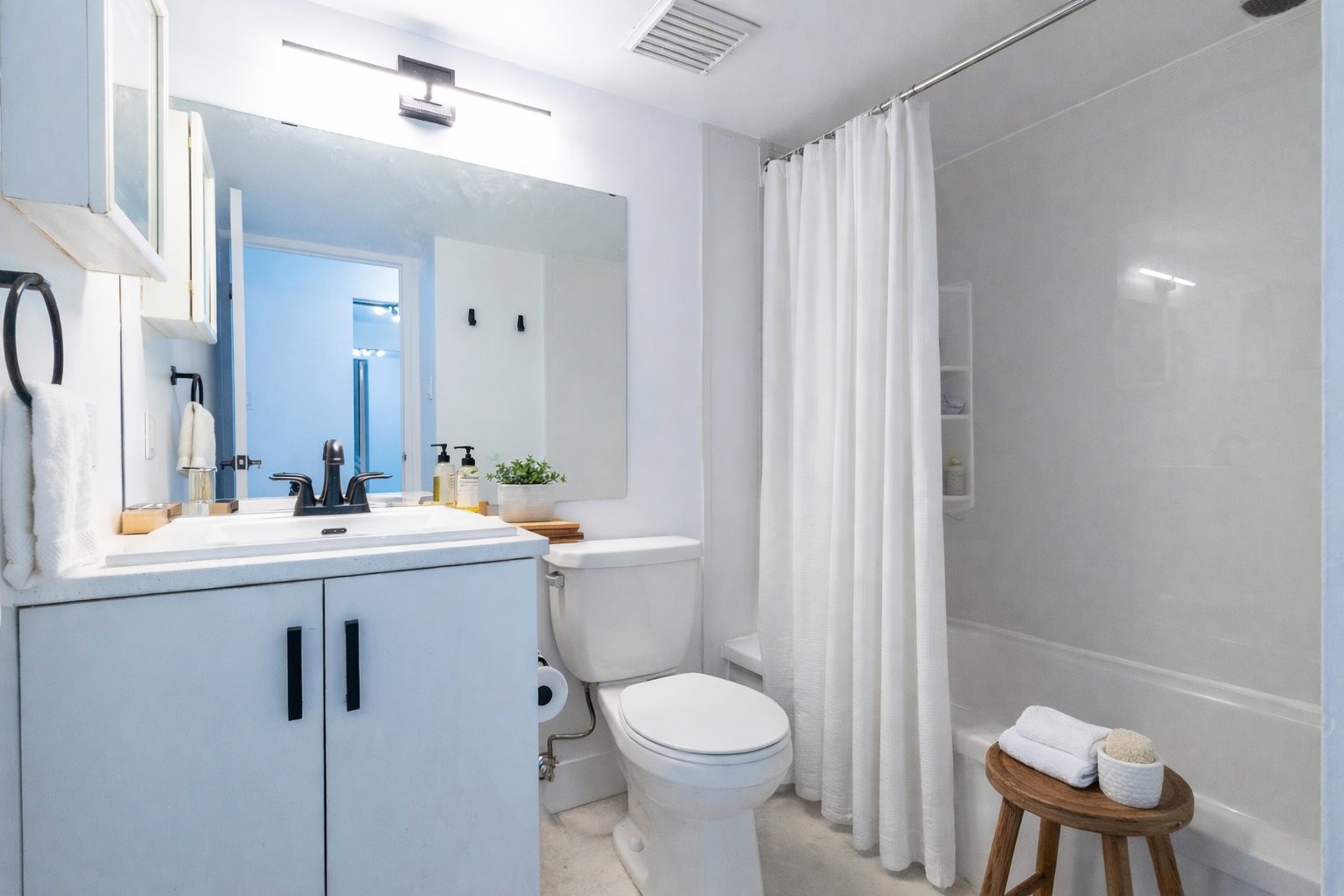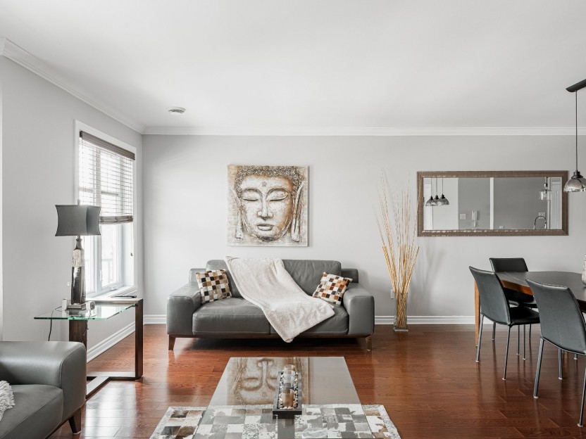 RÉNOVATIONS DE DÉCEMBRE 2025 À JANVIER 2026 : nouveaux planchers partout, nouveaux comptoirs de cuisine, nouvelle vanité de salle de bain et immeuble fraîchement repeint.