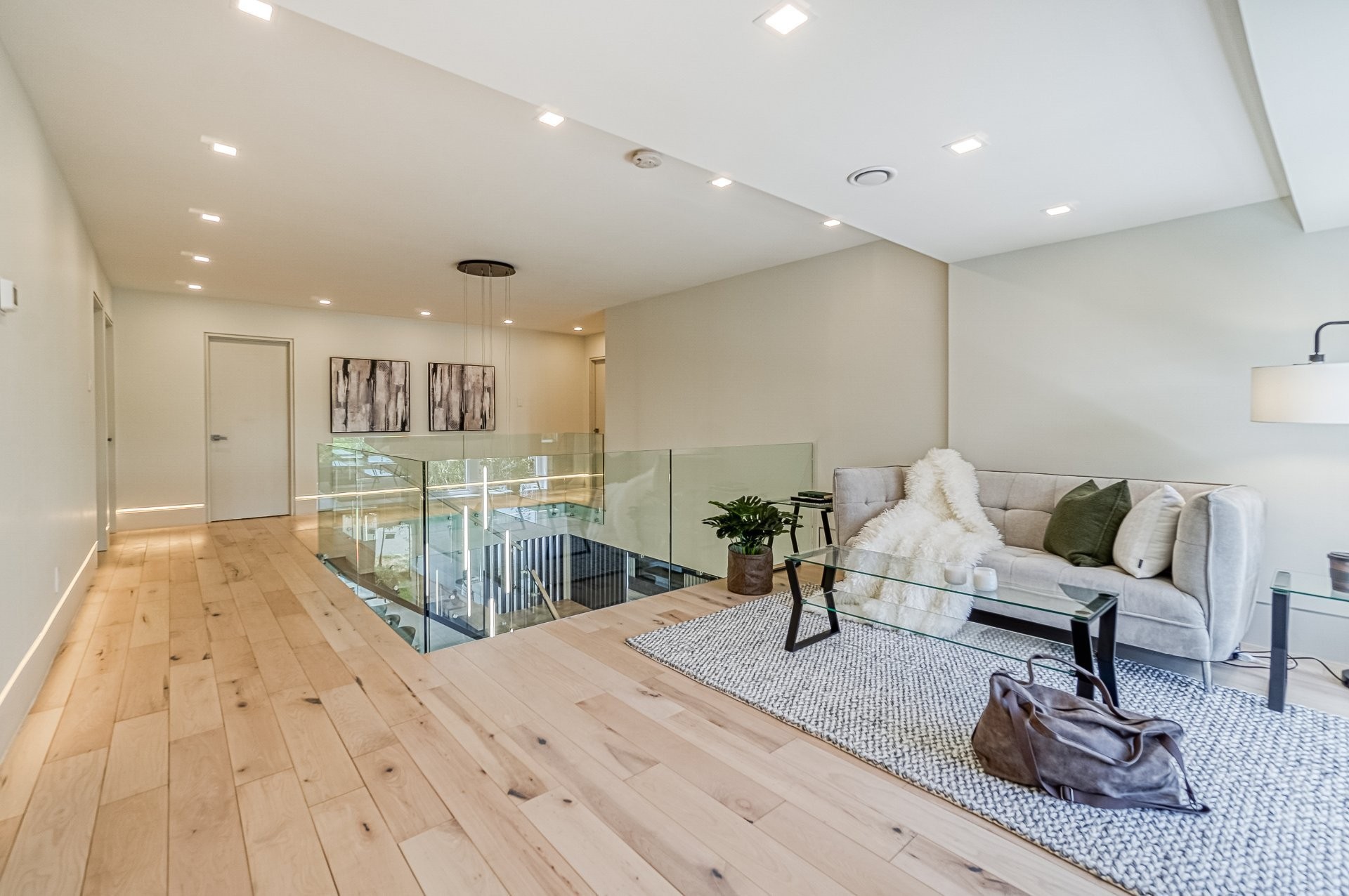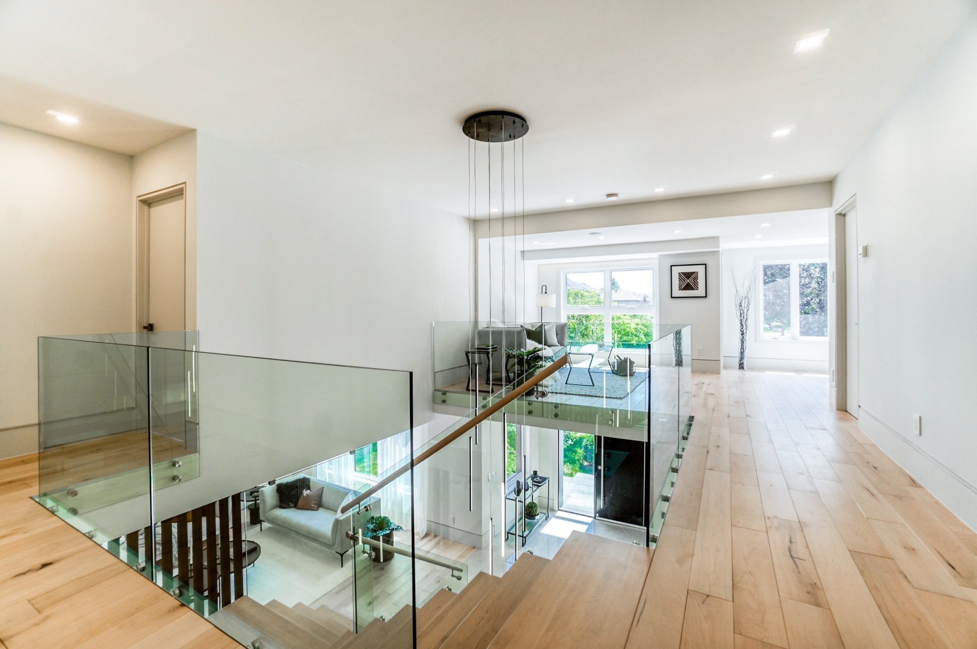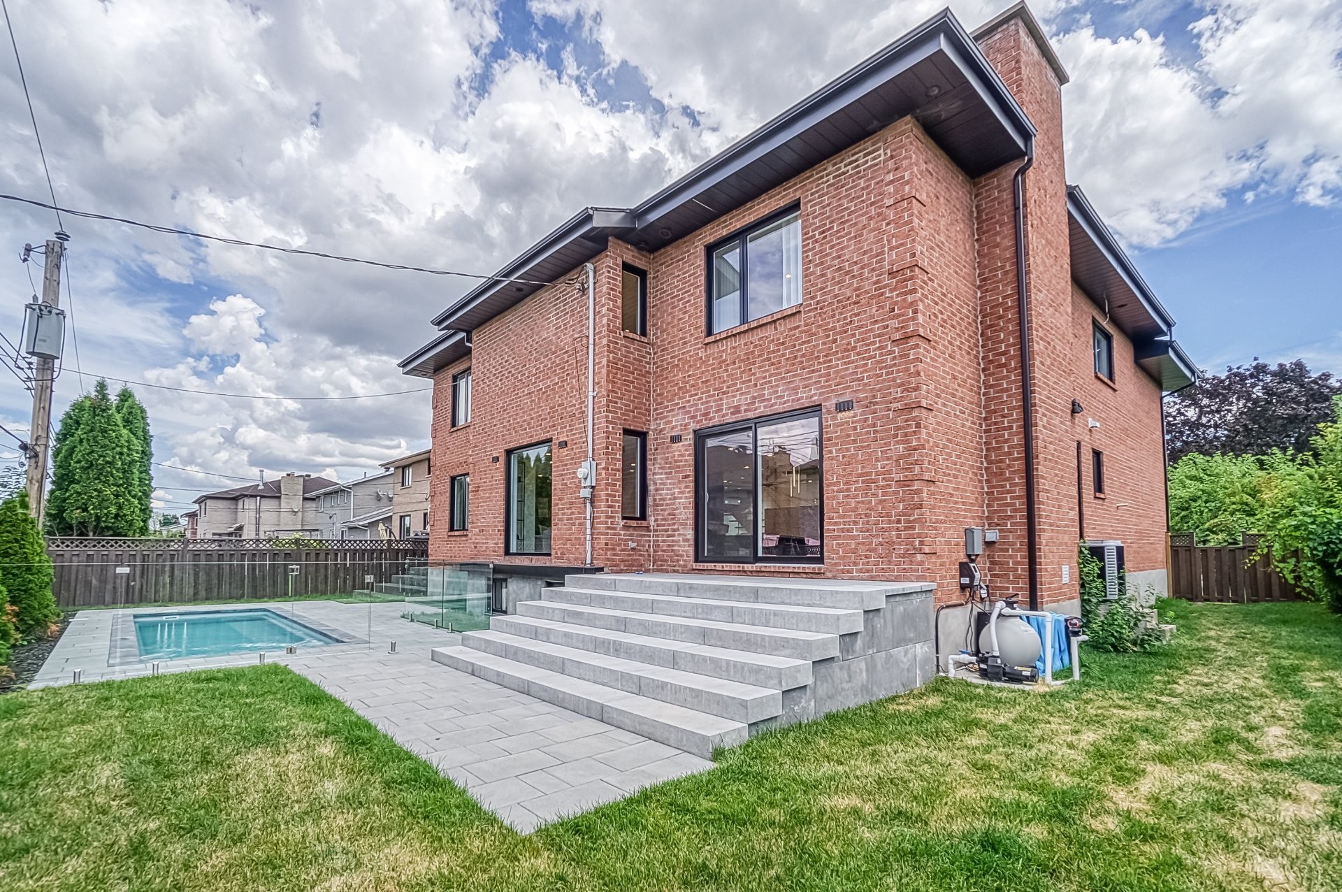 Là où le contemporain rencontre le luxe.Propriété exquise à architecture unique.Dès vos premiers pas dans la maison, vous êtes accueilli par un magnifique escalier en panneaux de verre descendant du dernier étage jusqu'au niveau inférieur.Doté d'un bois franc en chêne de qualité supérieur, et des accents de bois complimenté par un sol en porcelaine chauffant. 5 CAC+4SDB dont 2 attenantes, le niveau inférieur offre une salle de jeux supervisant une pièce vitrée, avec sauna et salle de cinéma.Retirez-vous dans la cour arrière où vous serez accueillis par votre piscine d'eau salée. Cette conception méticuleuse respire de l'élégance et du charme.
