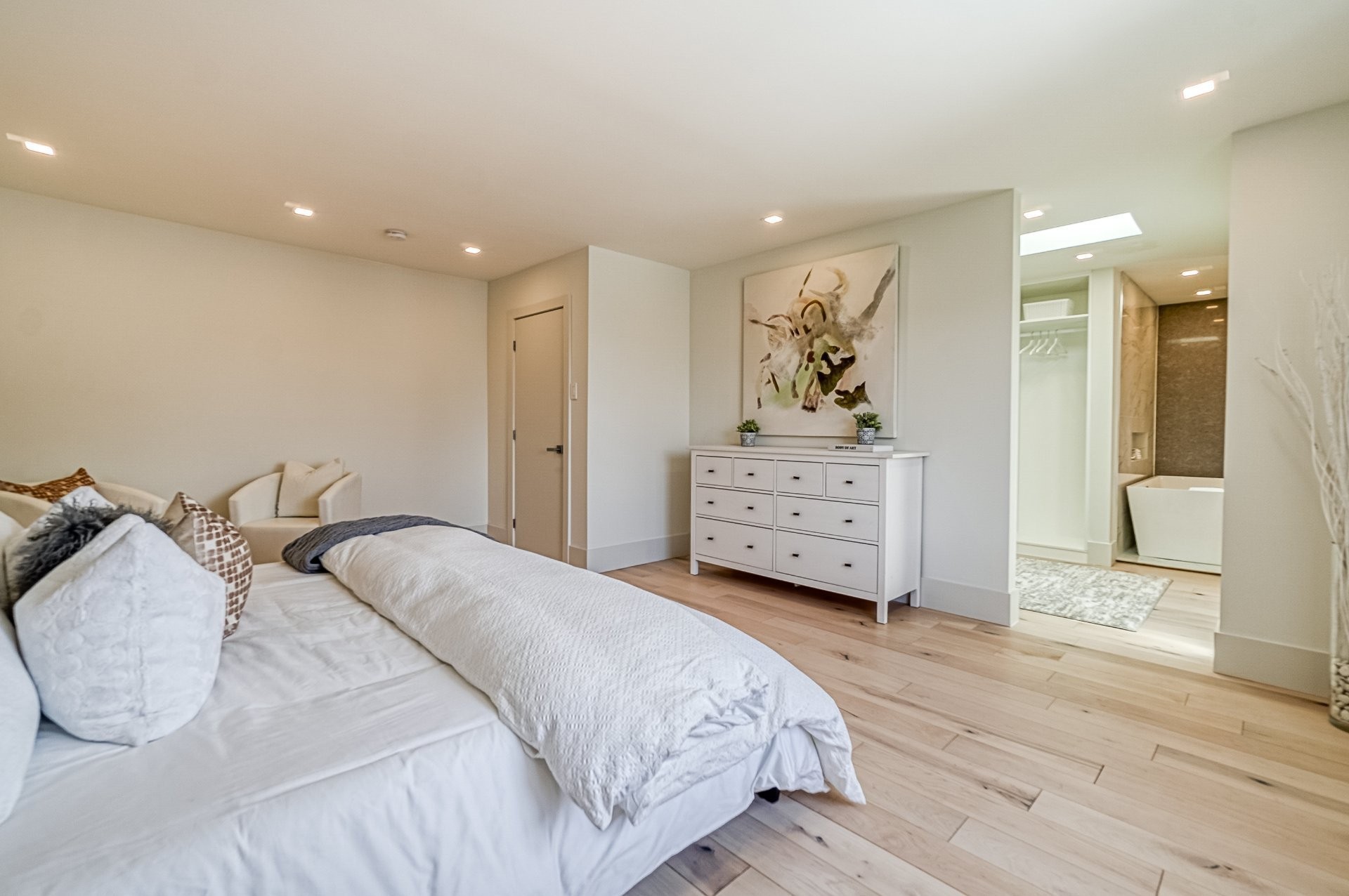 Dès l'entrée, vous êtes accueillis dans une maison exquise et décorée avec goût englobée de lumière naturelle.