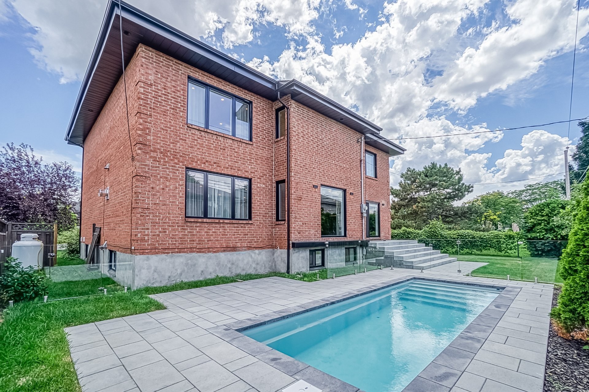 Retirez-vous dans la cour arrière avec sa terrasse en pierre et profitez des chaudes journées d'été avec votre piscine d'eau salée.