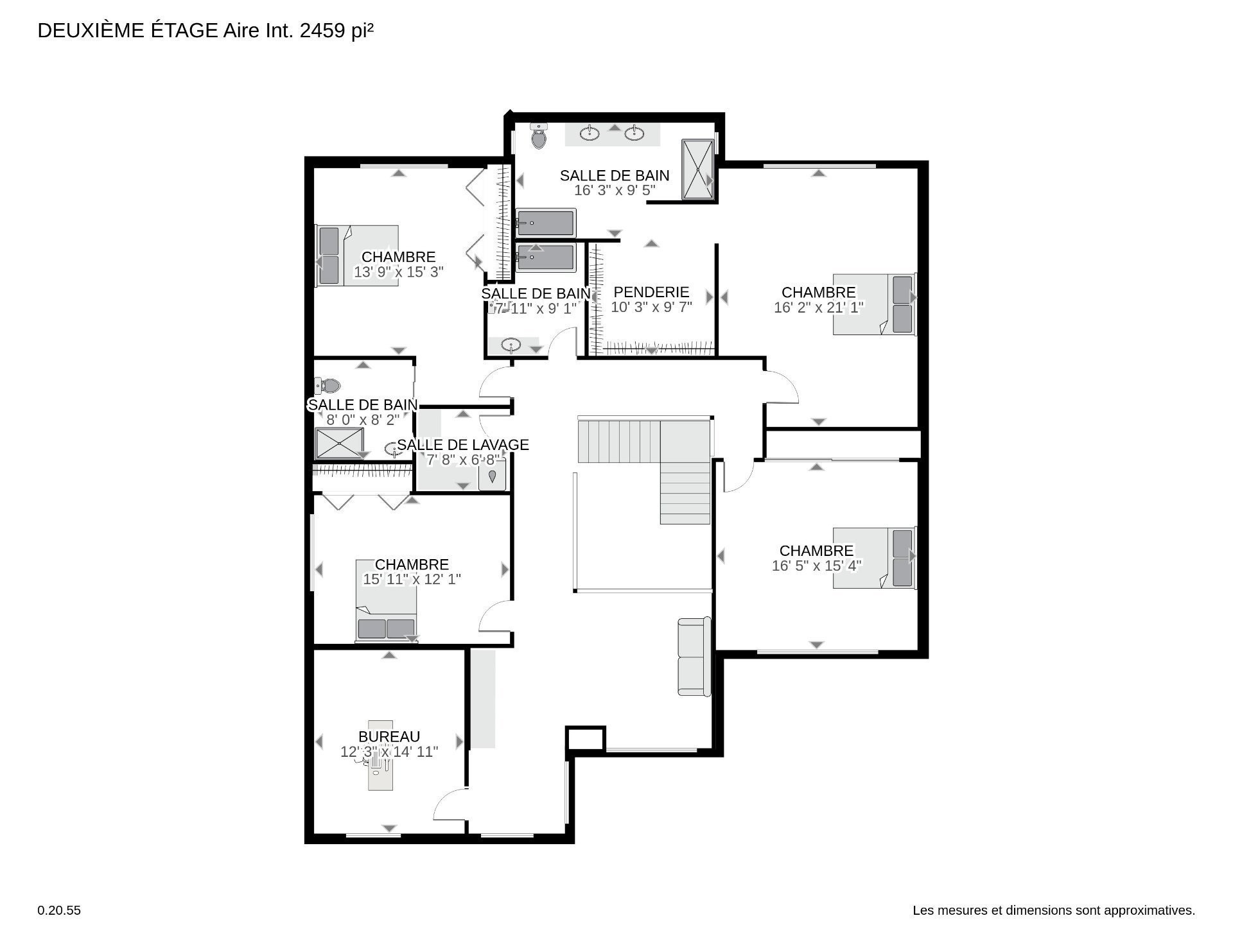 | Chambre à coucher | 2ième étage | 16.5x15.4 P | Bois | |