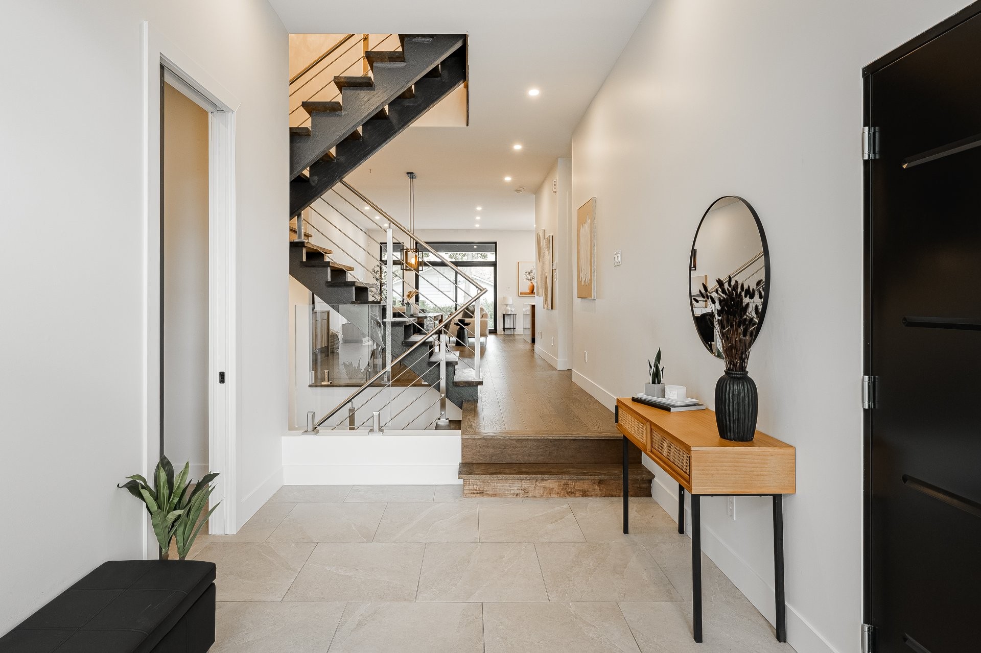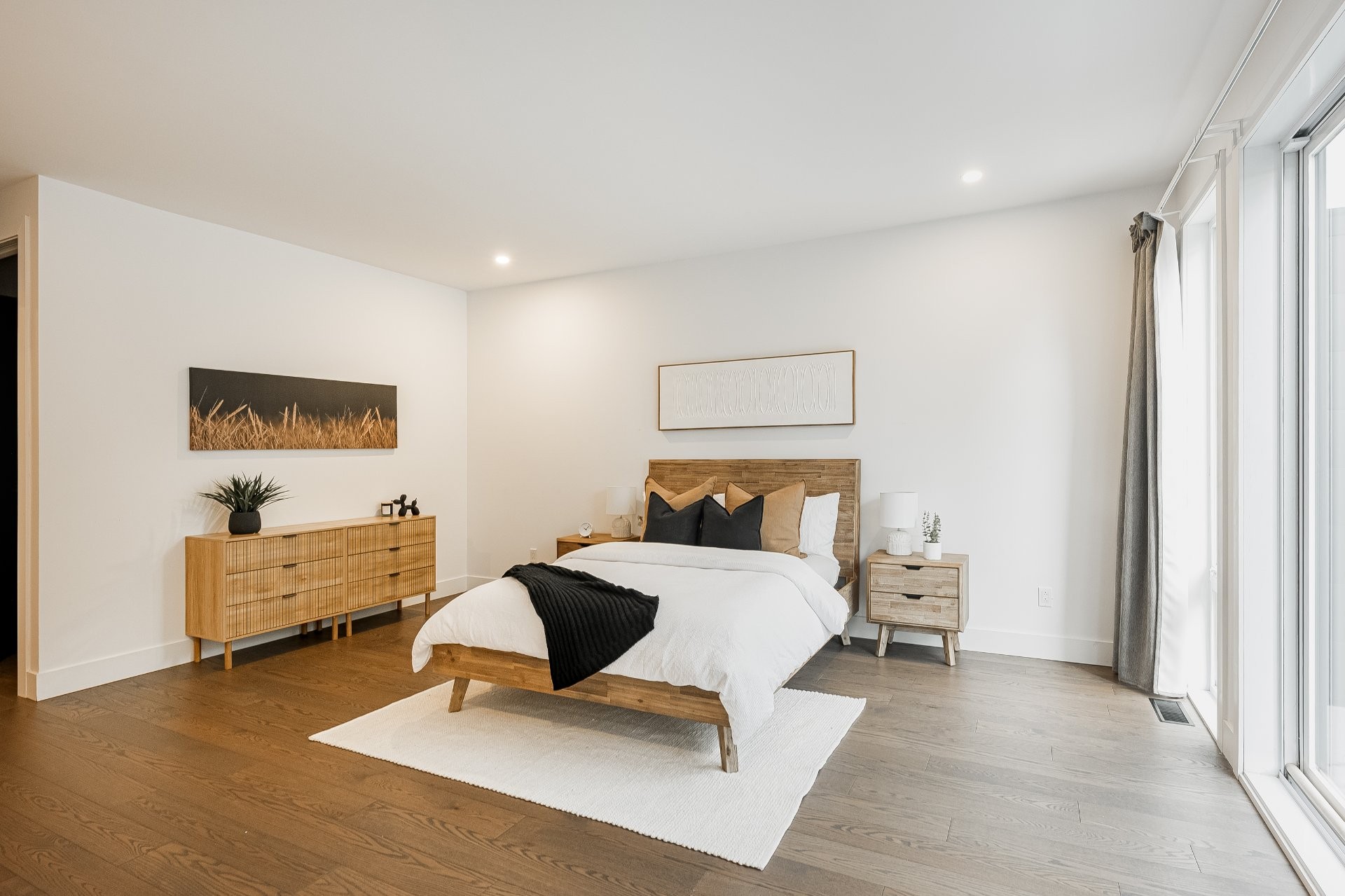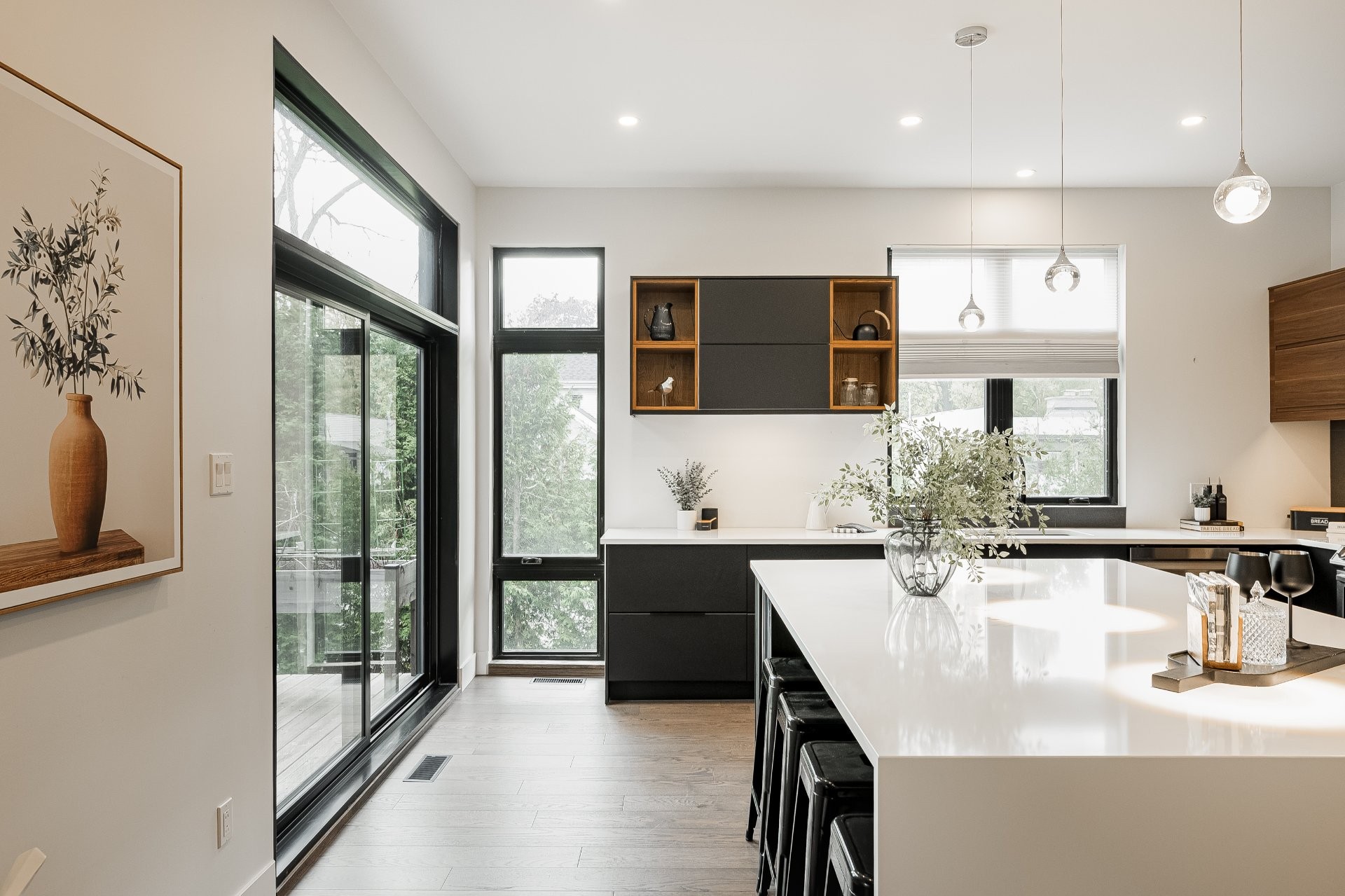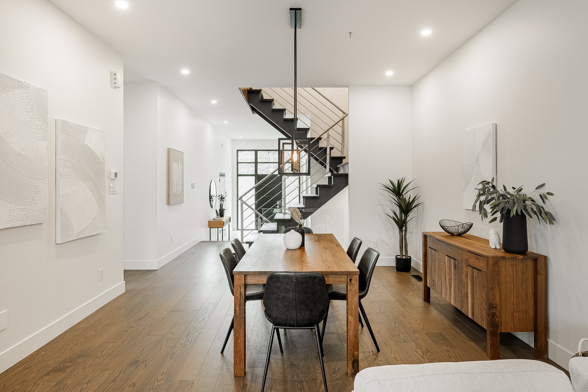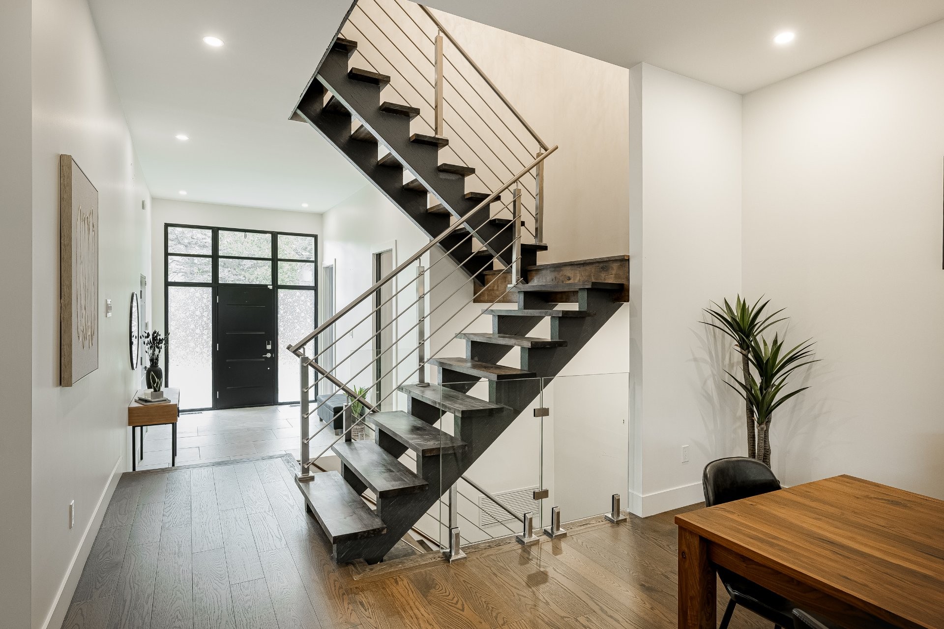 À l'intérieur, des plafonds de 9 à 12 pieds, des planchers de bois franc, un escalier flottant et d'immenses fenêtres pleine hauteur inondent les espaces de lumière naturelle. La cuisine gastronomique se distingue, idéale pour les amateurs de cuisine et pour recevoir. La suite principale est un véritable refuge, avec sa terrasse privée, sa salle de bain de type spa et son grand walk-in. Chaque chambre additionnelle possède également sa propre salle de bain et un walk-in, assurant confort et intimité.