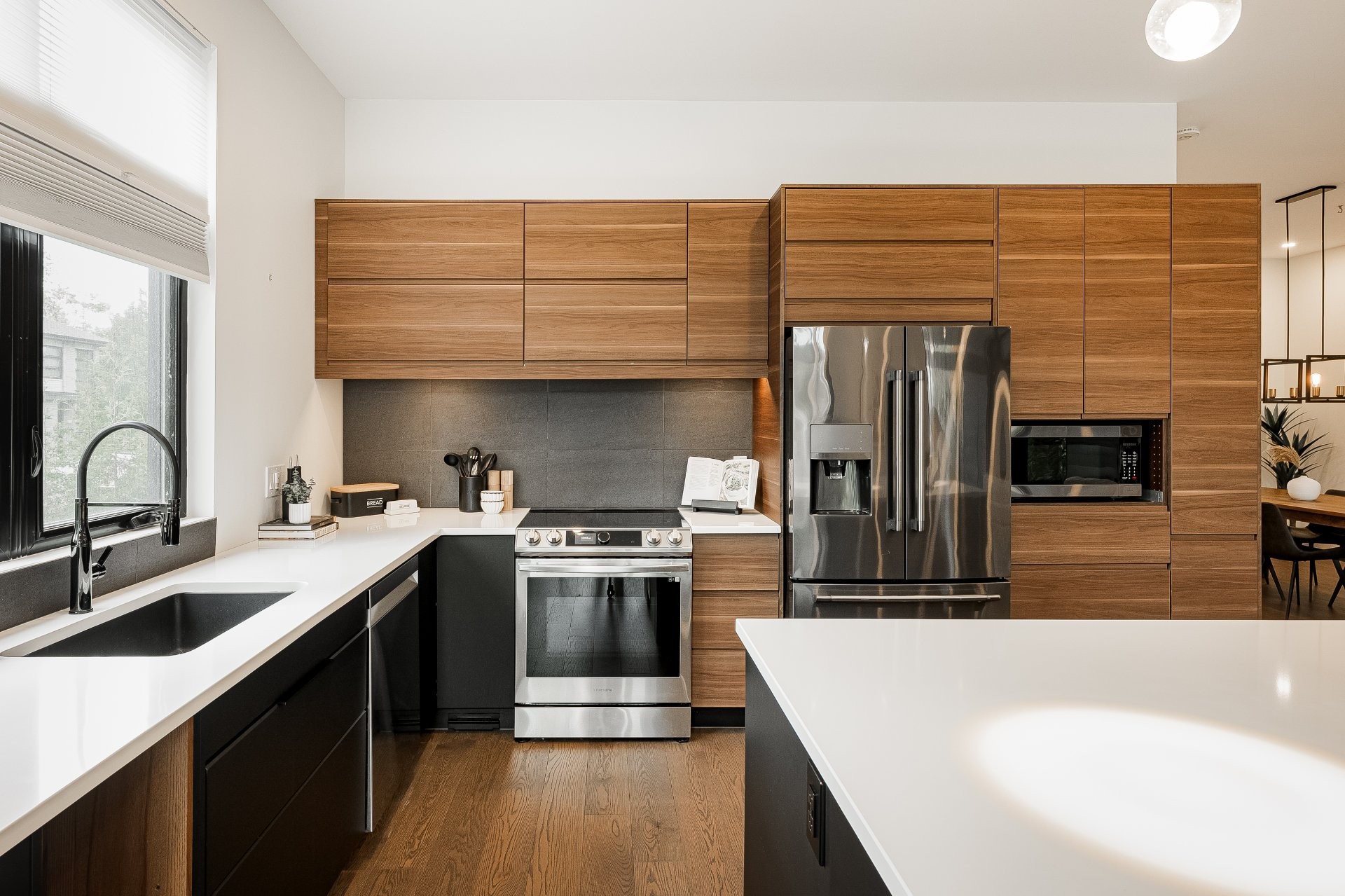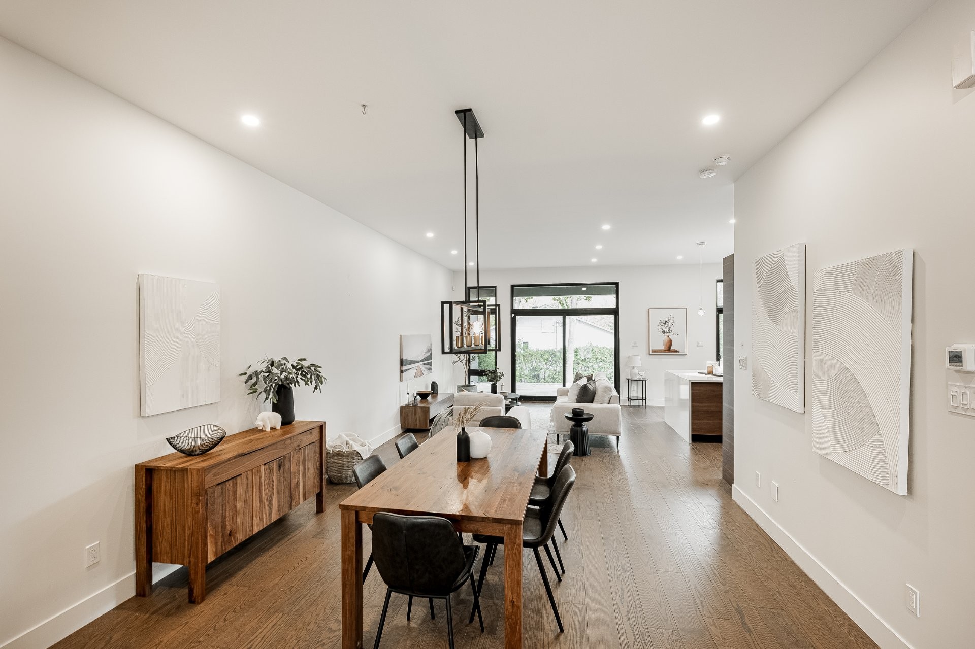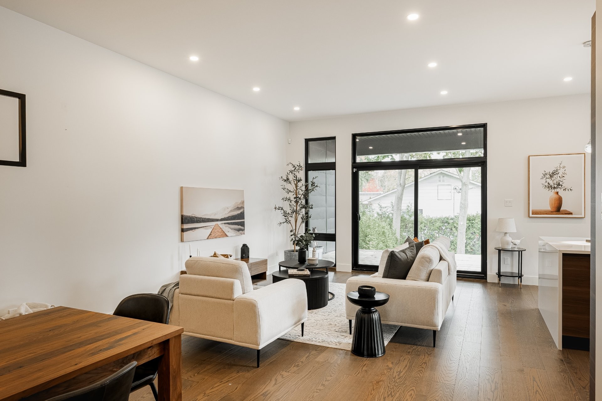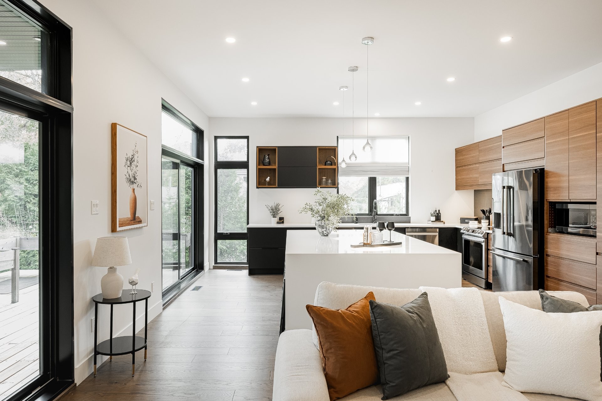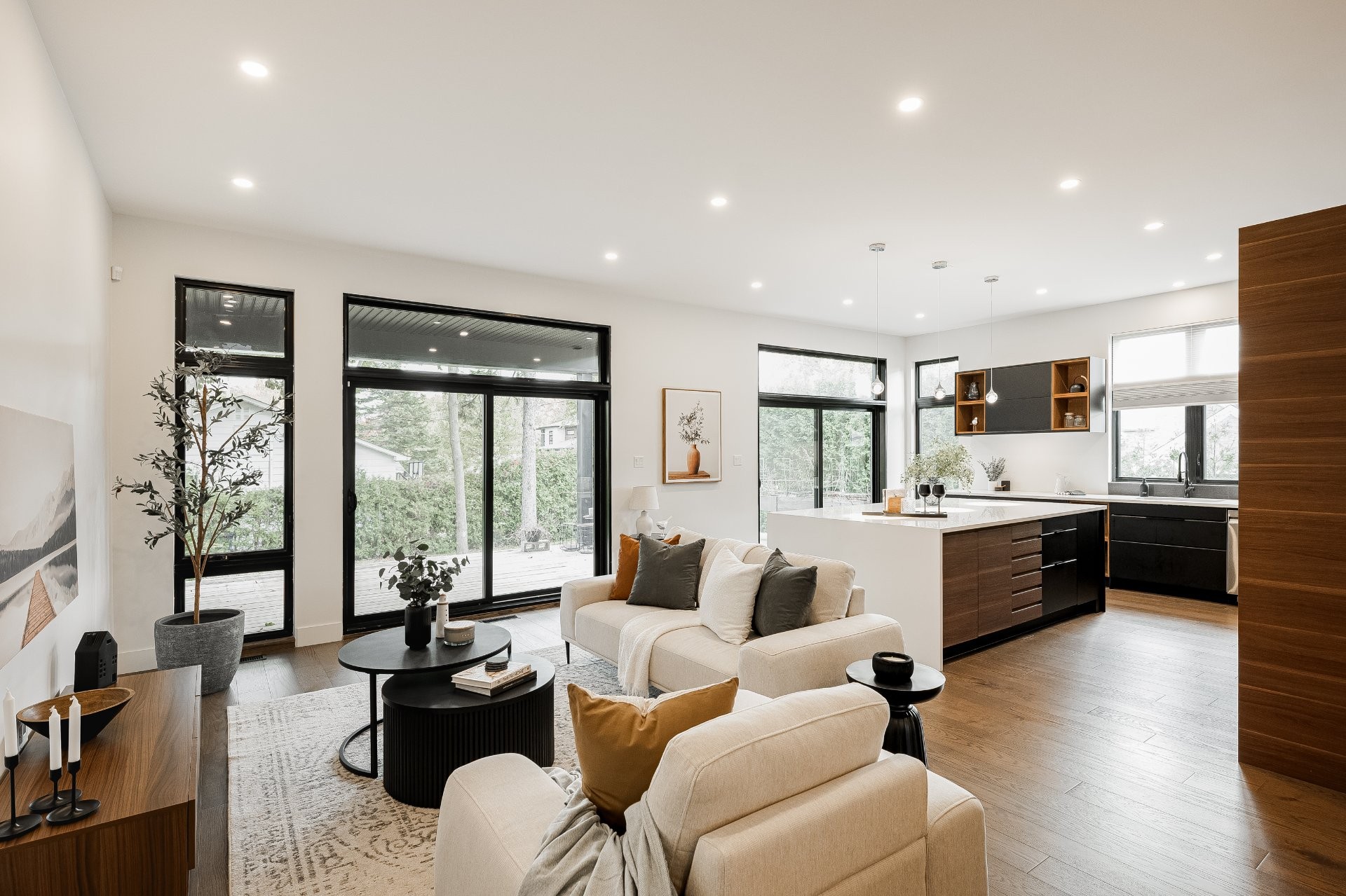 À l'intérieur, des plafonds de 9 à 12 pieds, des planchers de bois franc, un escalier flottant et d'immenses fenêtres pleine hauteur inondent les espaces de lumière naturelle. La cuisine gastronomique se distingue, idéale pour les amateurs de cuisine et pour recevoir. La suite principale est un véritable refuge, avec sa terrasse privée, sa salle de bain de type spa et son grand walk-in. Chaque chambre additionnelle possède également sa propre salle de bain et un walk-in, assurant confort et intimité.