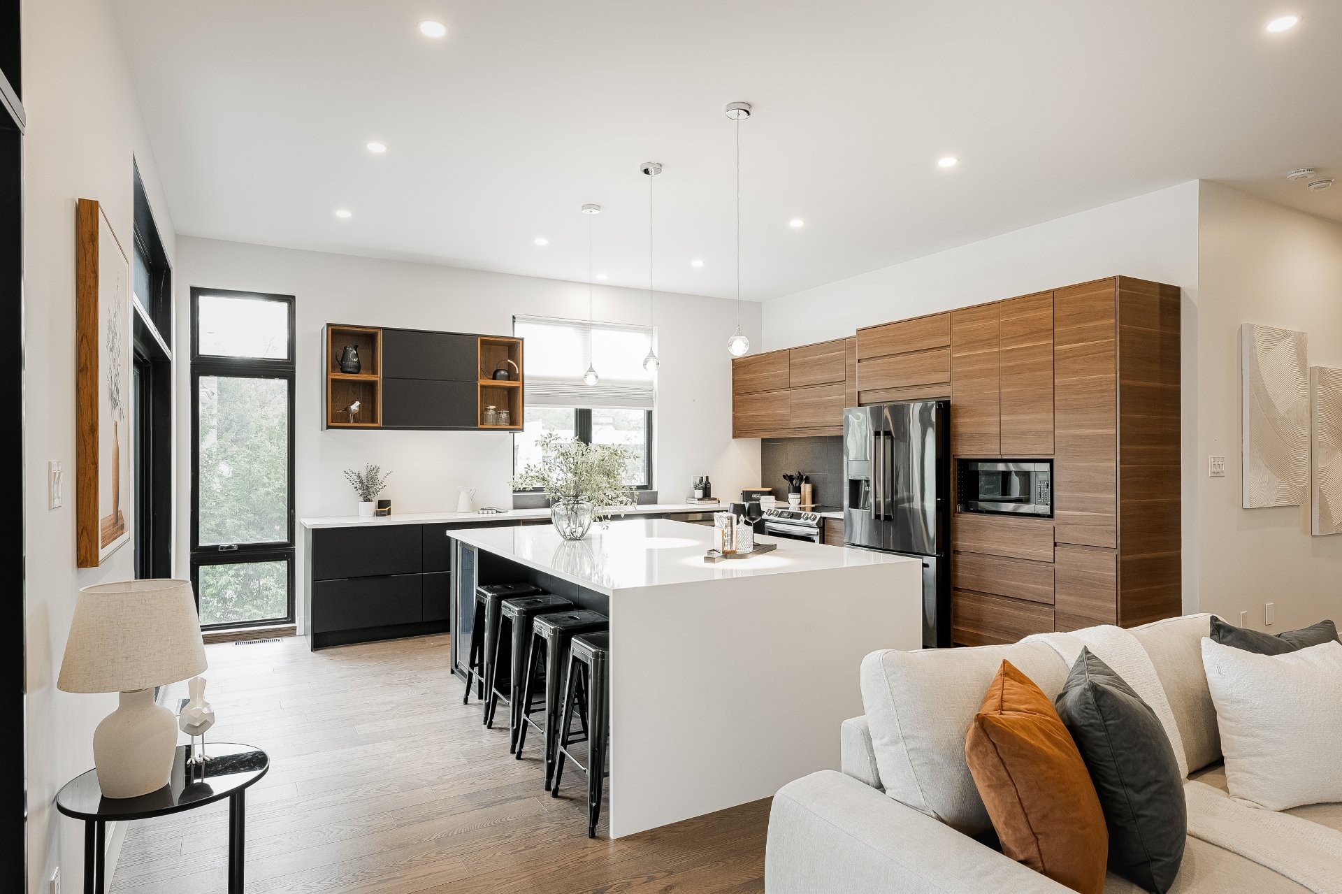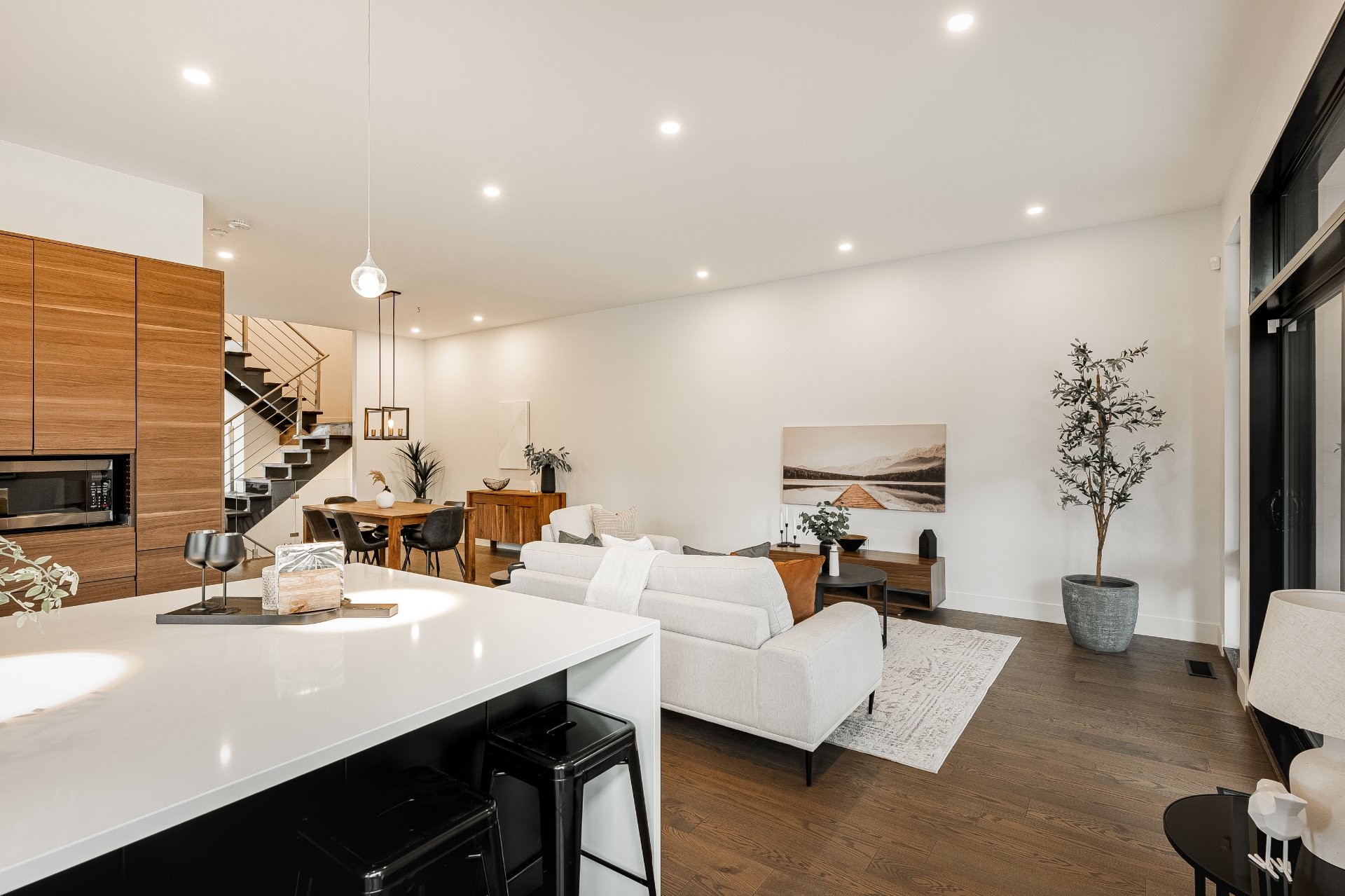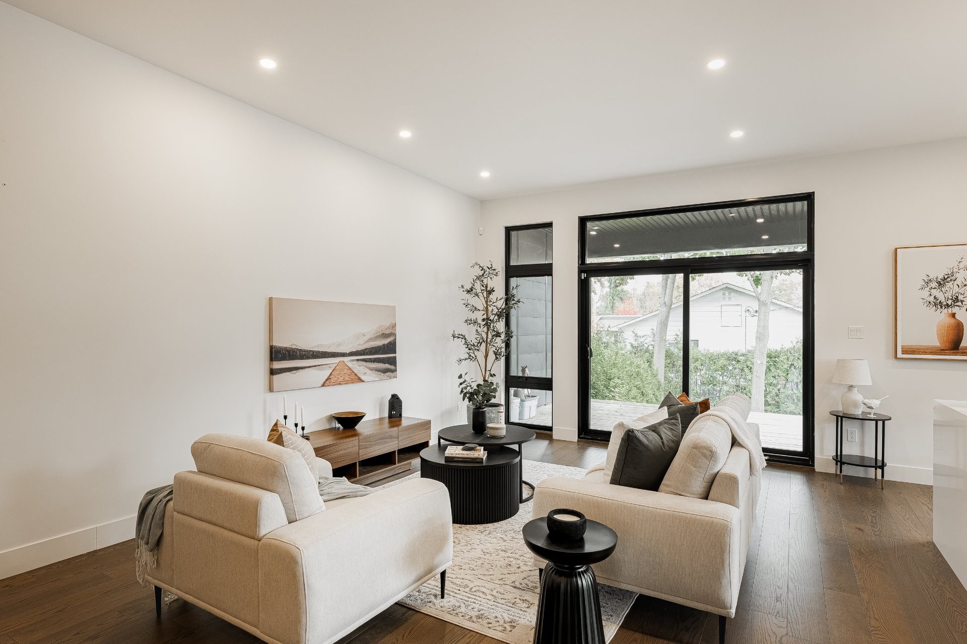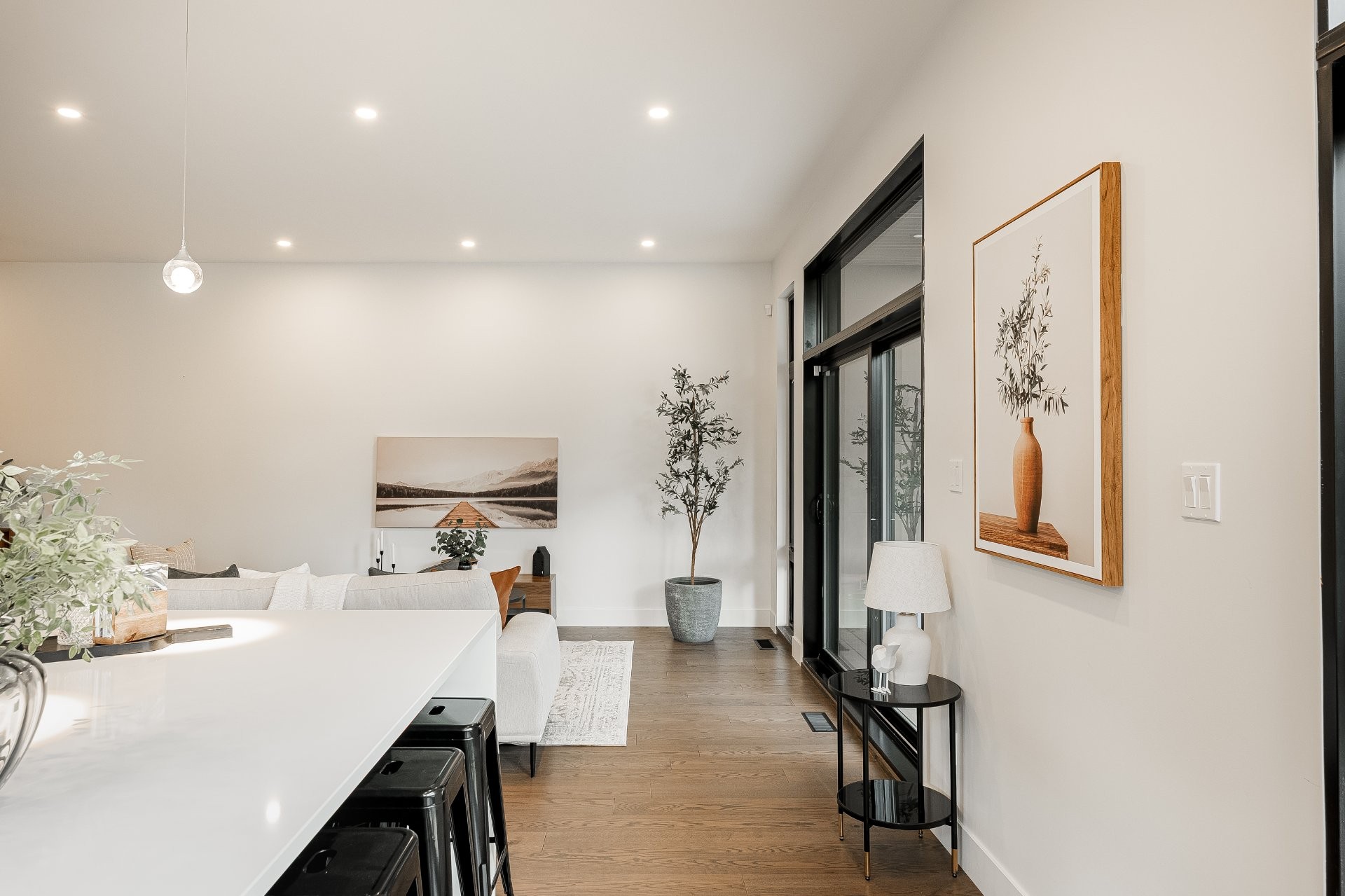 À l'intérieur, des plafonds de 9 à 12 pieds, des planchers de bois franc, un escalier flottant et d'immenses fenêtres pleine hauteur inondent les espaces de lumière naturelle. La cuisine gastronomique se distingue, idéale pour les amateurs de cuisine et pour recevoir. La suite principale est un véritable refuge, avec sa terrasse privée, sa salle de bain de type spa et son grand walk-in. Chaque chambre additionnelle possède également sa propre salle de bain et un walk-in, assurant confort et intimité.
