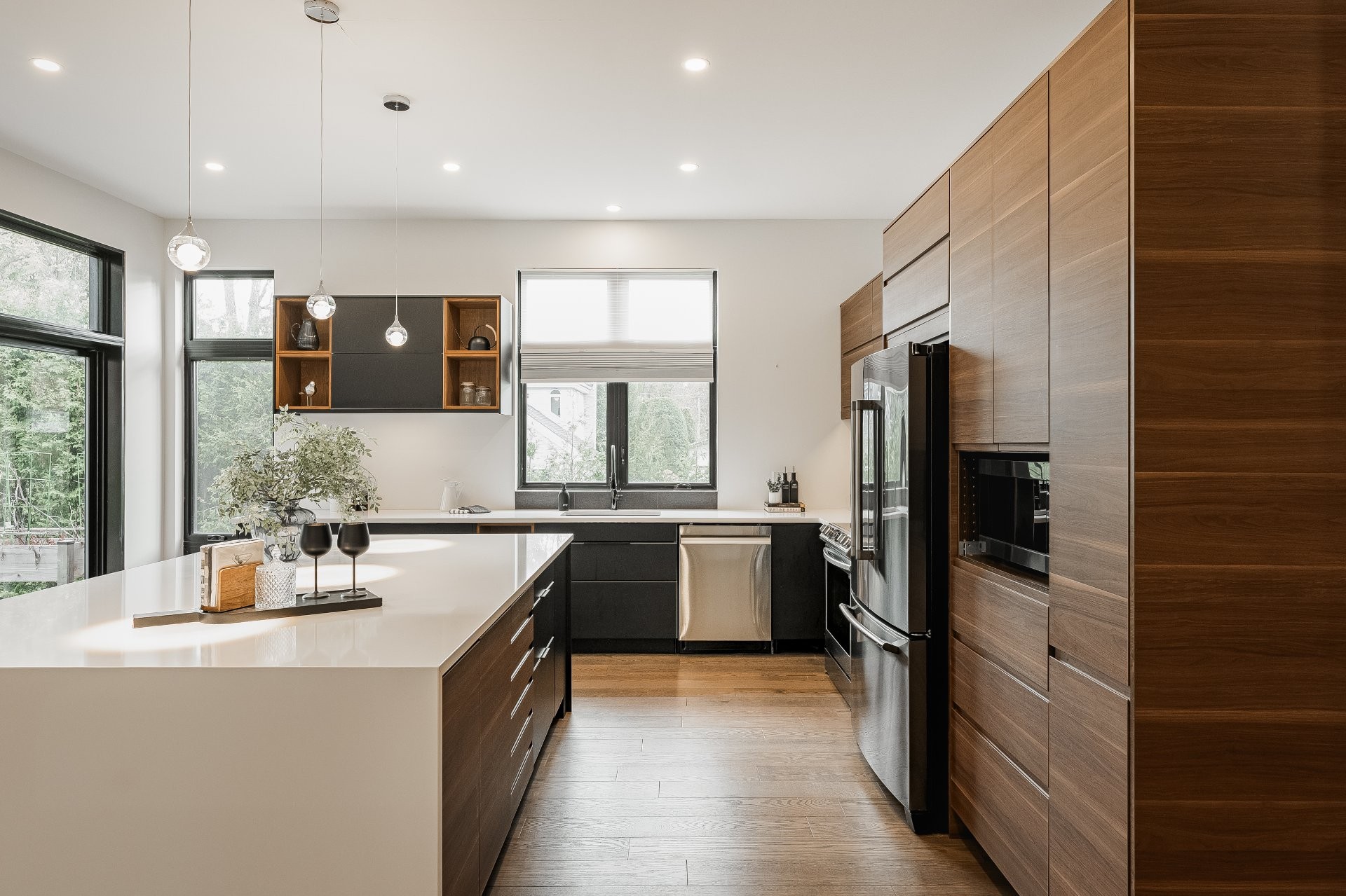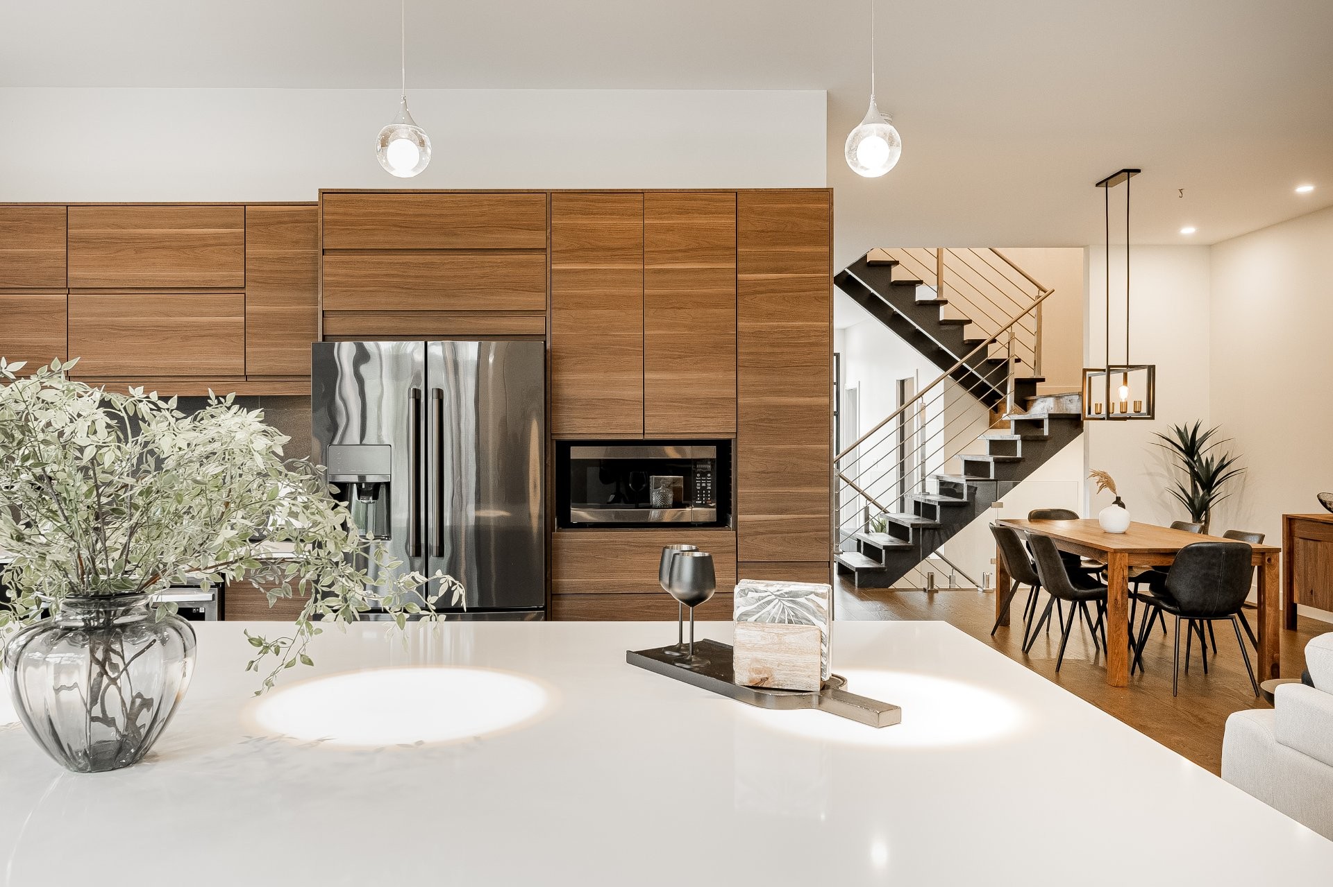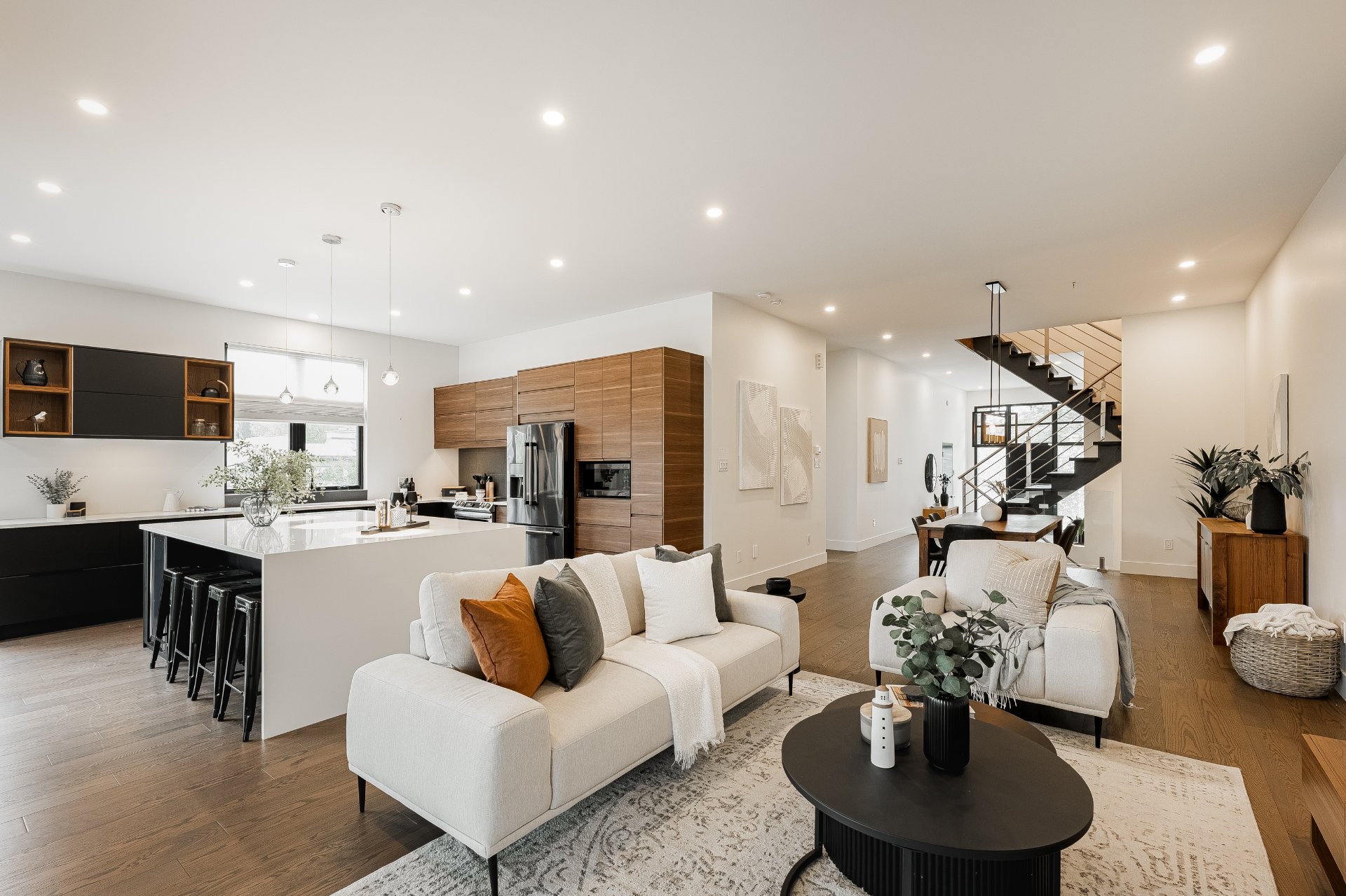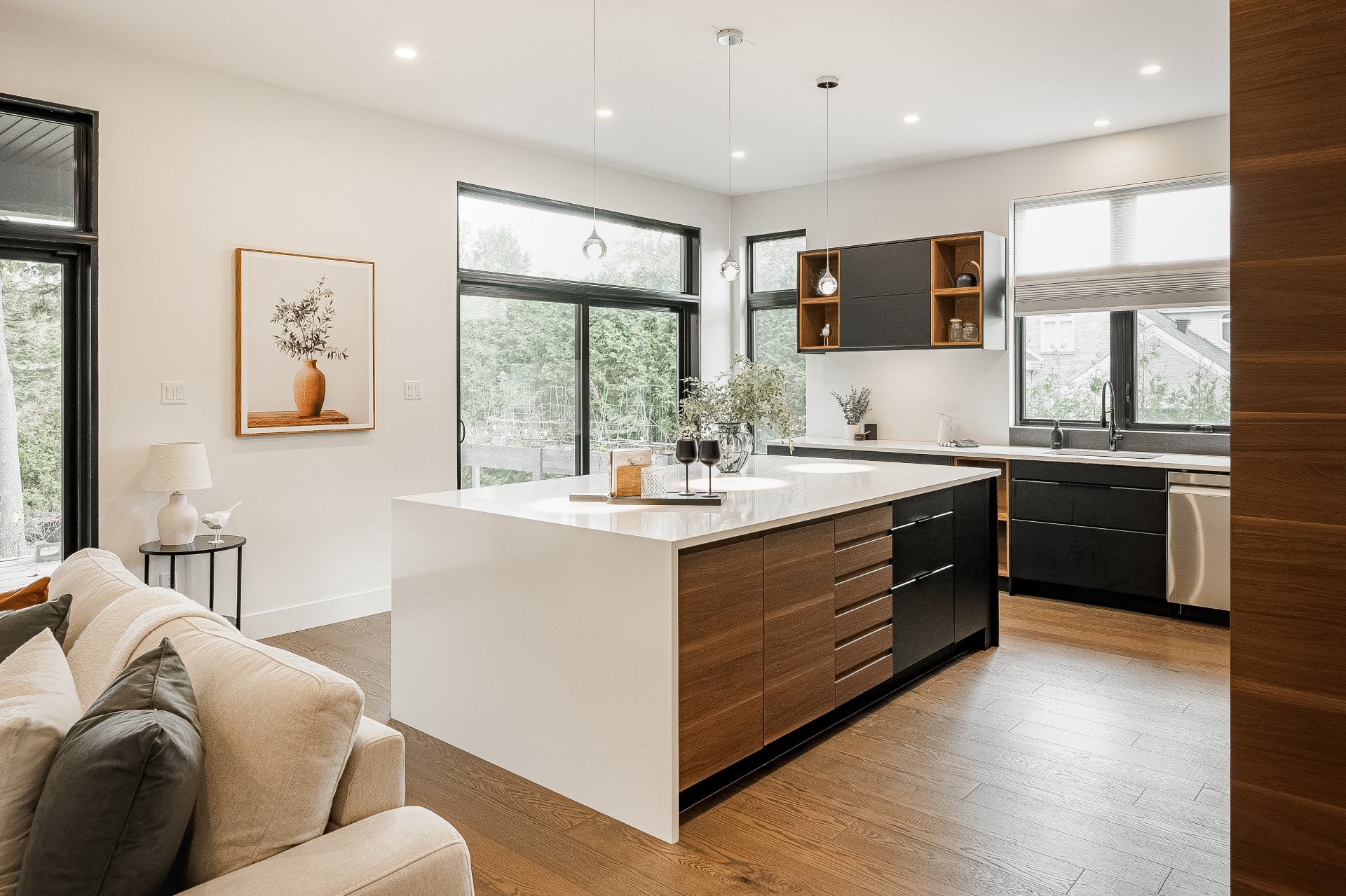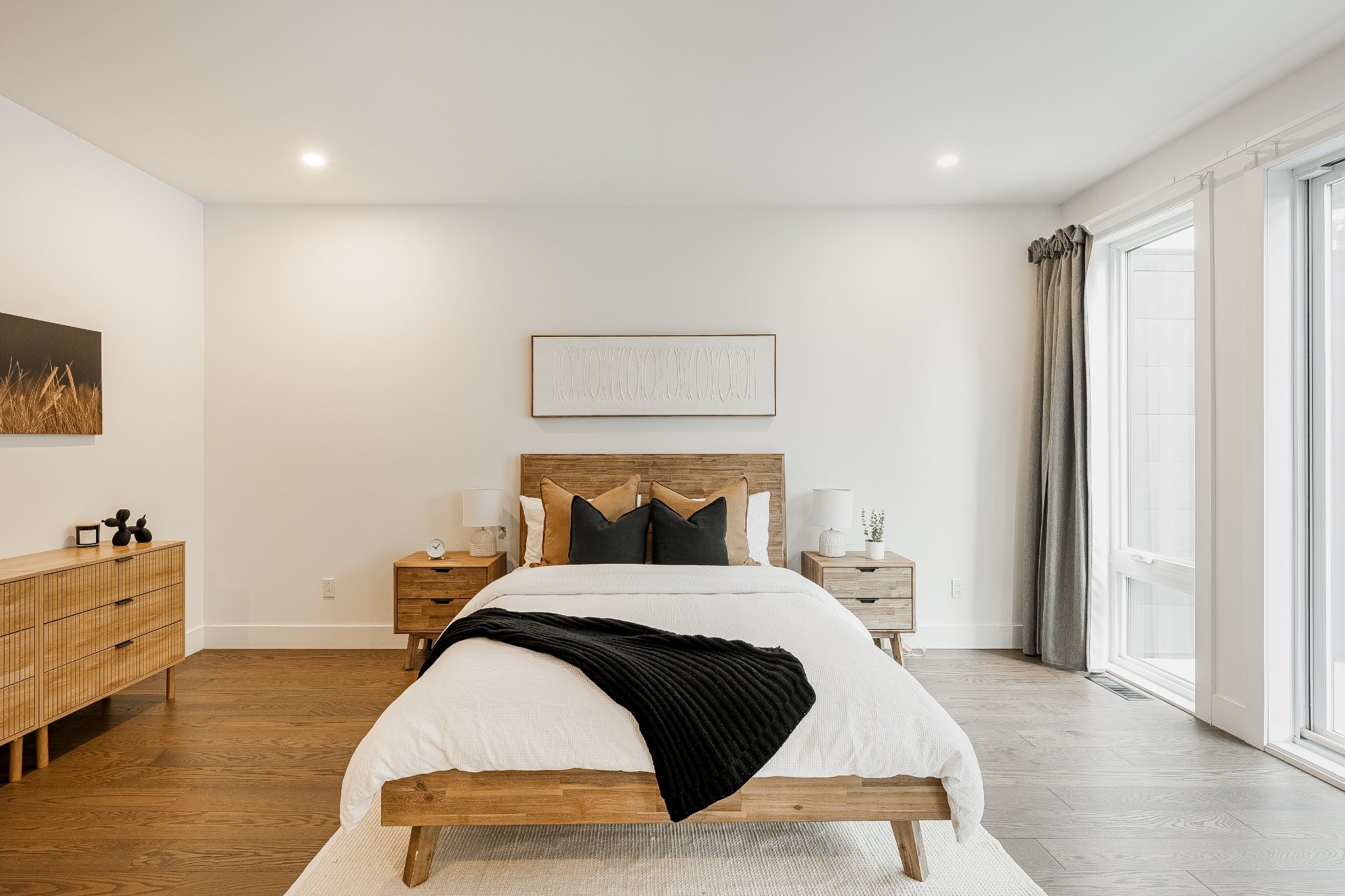 À l'intérieur, des plafonds de 9 à 12 pieds, des planchers de bois franc, un escalier flottant et d'immenses fenêtres pleine hauteur inondent les espaces de lumière naturelle. La cuisine gastronomique se distingue, idéale pour les amateurs de cuisine et pour recevoir. La suite principale est un véritable refuge, avec sa terrasse privée, sa salle de bain de type spa et son grand walk-in. Chaque chambre additionnelle possède également sa propre salle de bain et un walk-in, assurant confort et intimité.