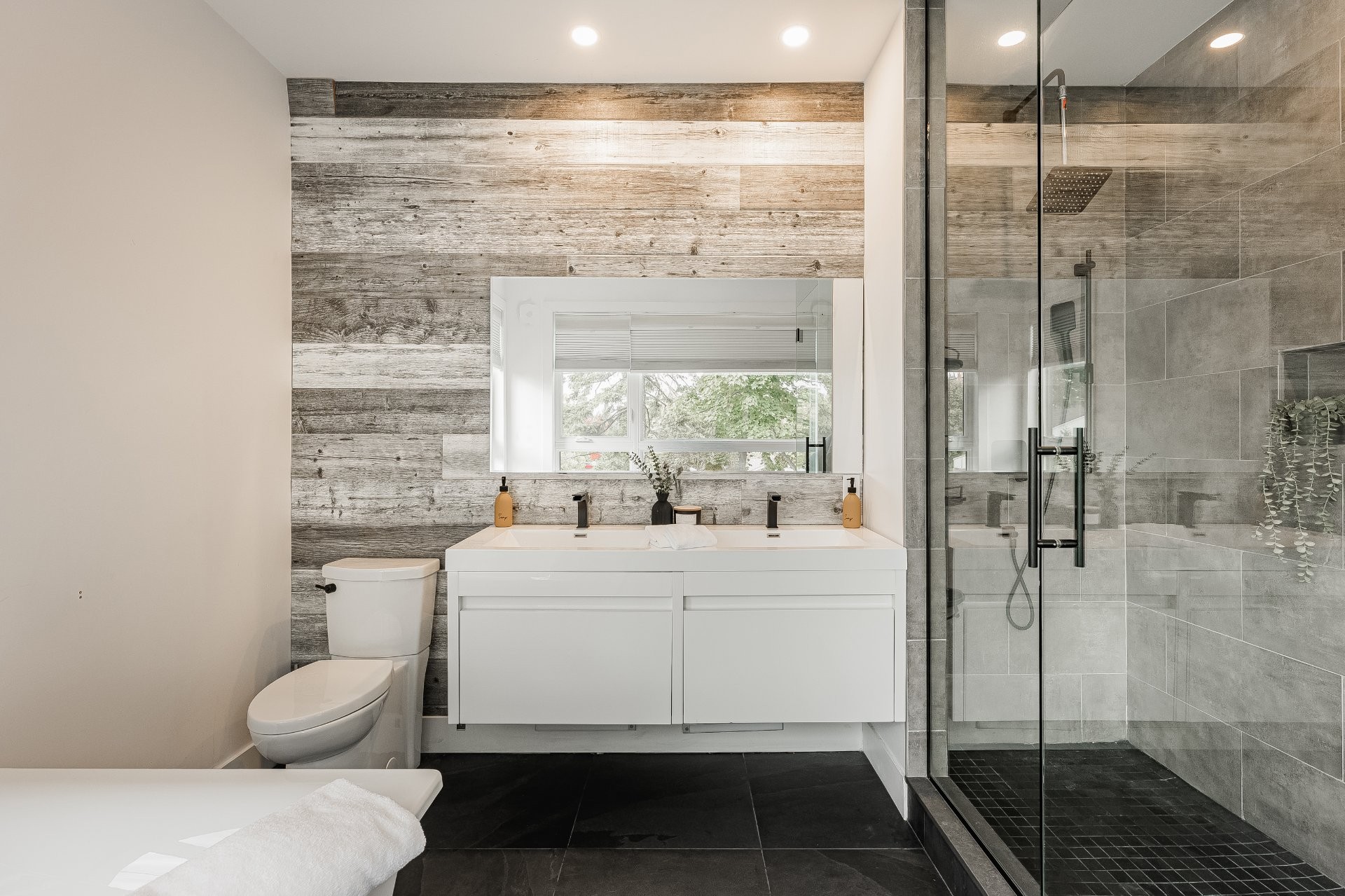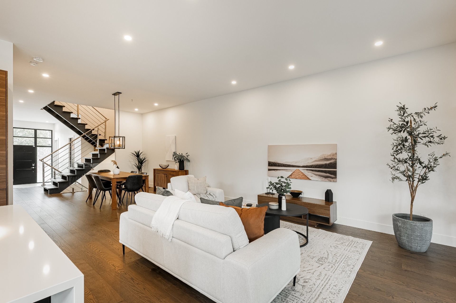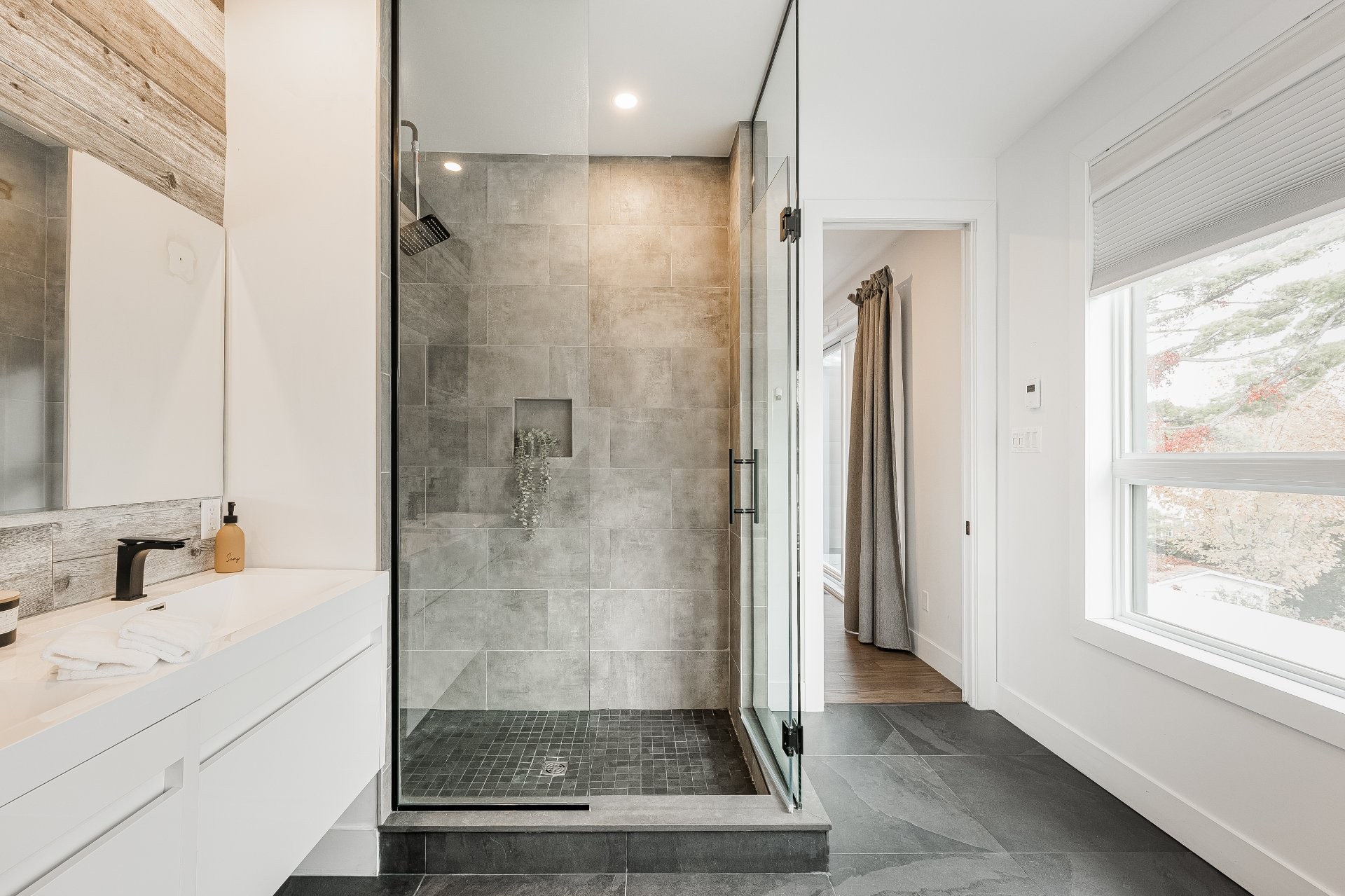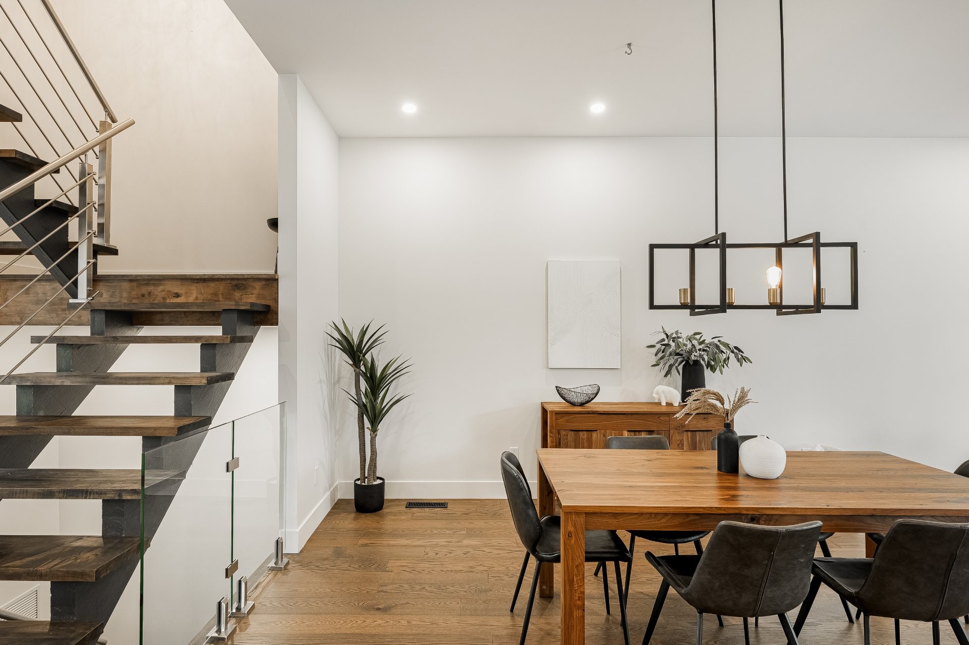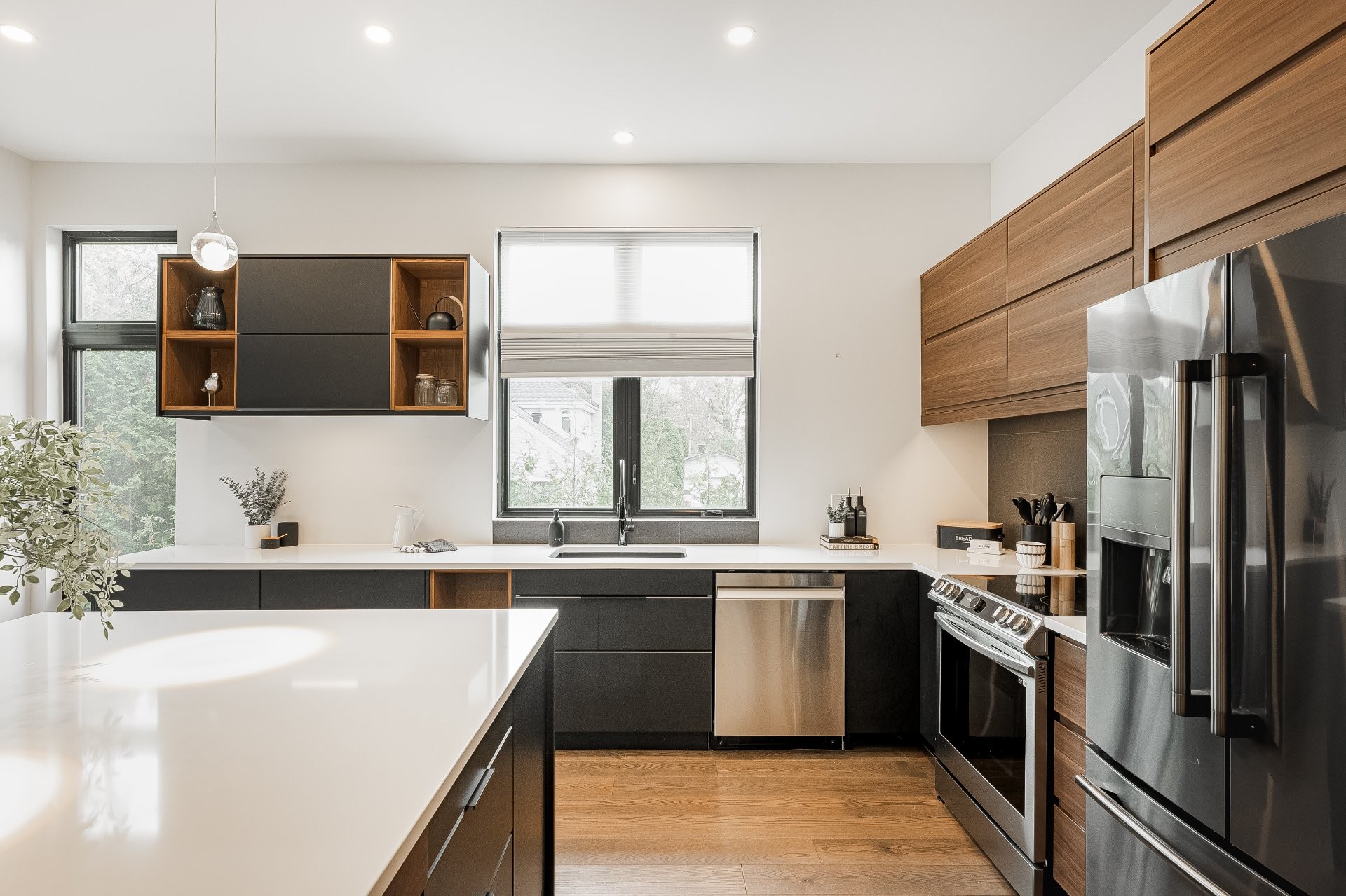 À l'intérieur, des plafonds de 9 à 12 pieds, des planchers de bois franc, un escalier flottant et d'immenses fenêtres pleine hauteur inondent les espaces de lumière naturelle. La cuisine gastronomique se distingue, idéale pour les amateurs de cuisine et pour recevoir. La suite principale est un véritable refuge, avec sa terrasse privée, sa salle de bain de type spa et son grand walk-in. Chaque chambre additionnelle possède également sa propre salle de bain et un walk-in, assurant confort et intimité.