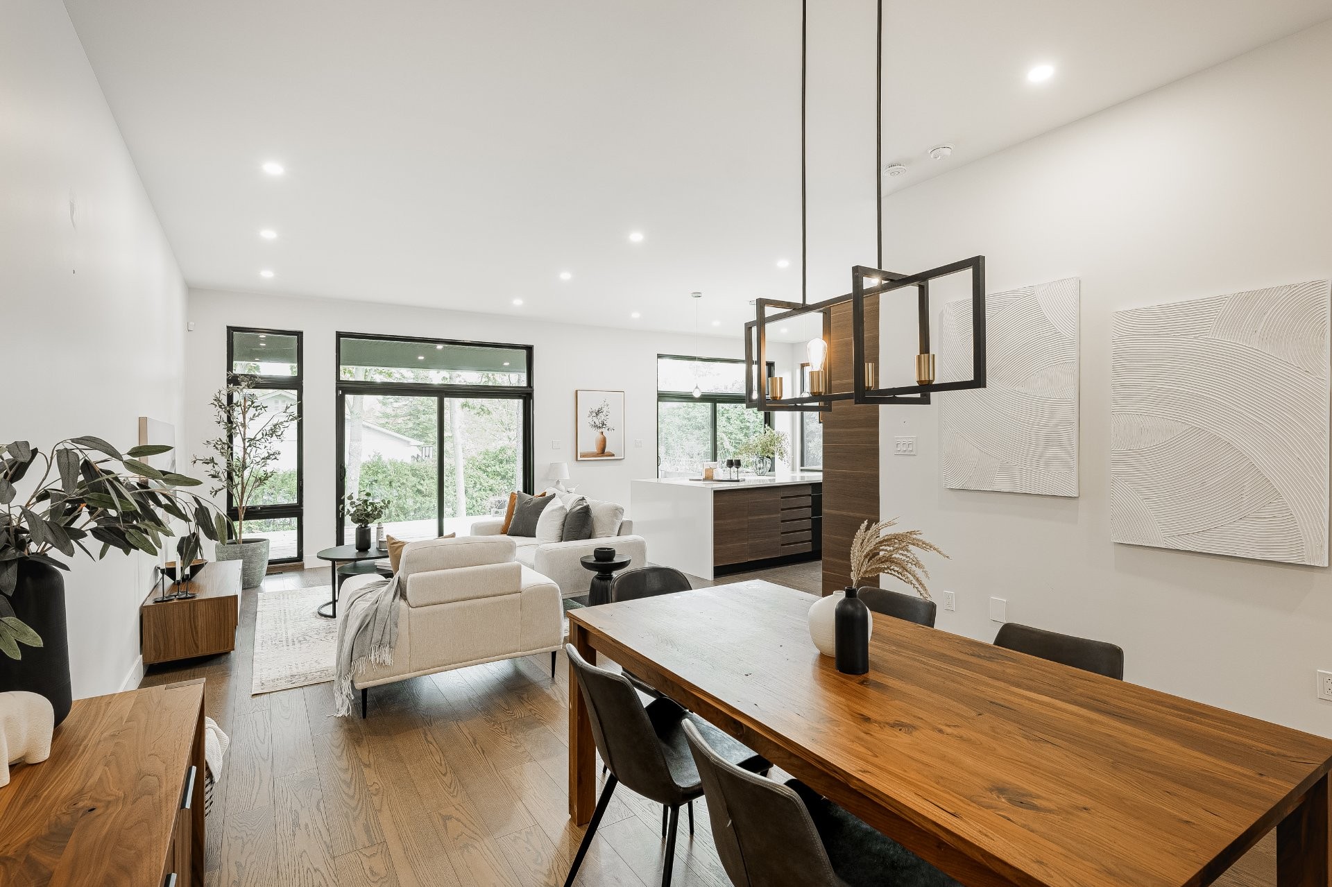Maison moderne et bien conçue de 5+2 chambres, aux finitions haut de gamme et à la qualité de construction exceptionnelle. Cette demeure offre un style de vie luxueux dans un emplacement privilégié, à proximité des parcs, de la future station REM et des sentiers pittoresques en bord de lac.