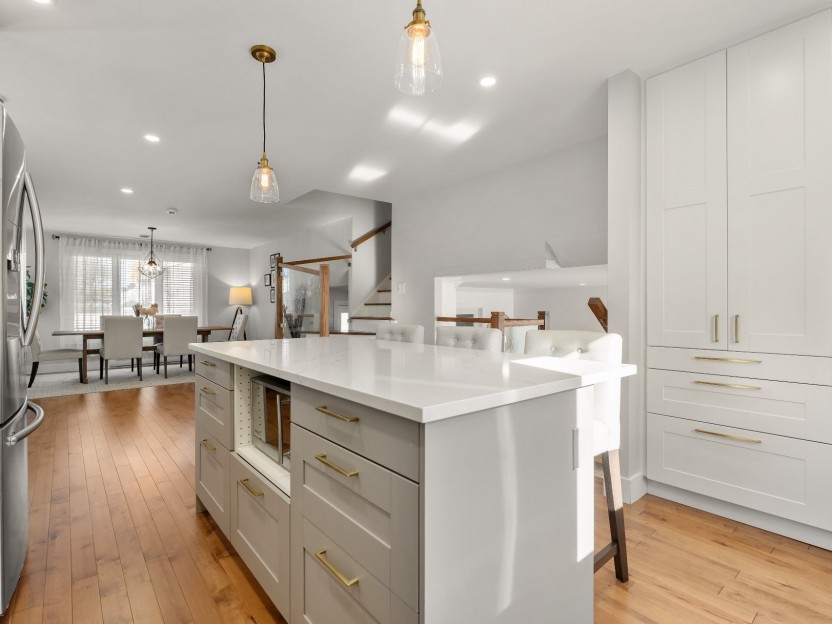 | Cuisine | Rez-de-chaussée | 17.6x14.8 P | Bois | Îlot de cuisine |