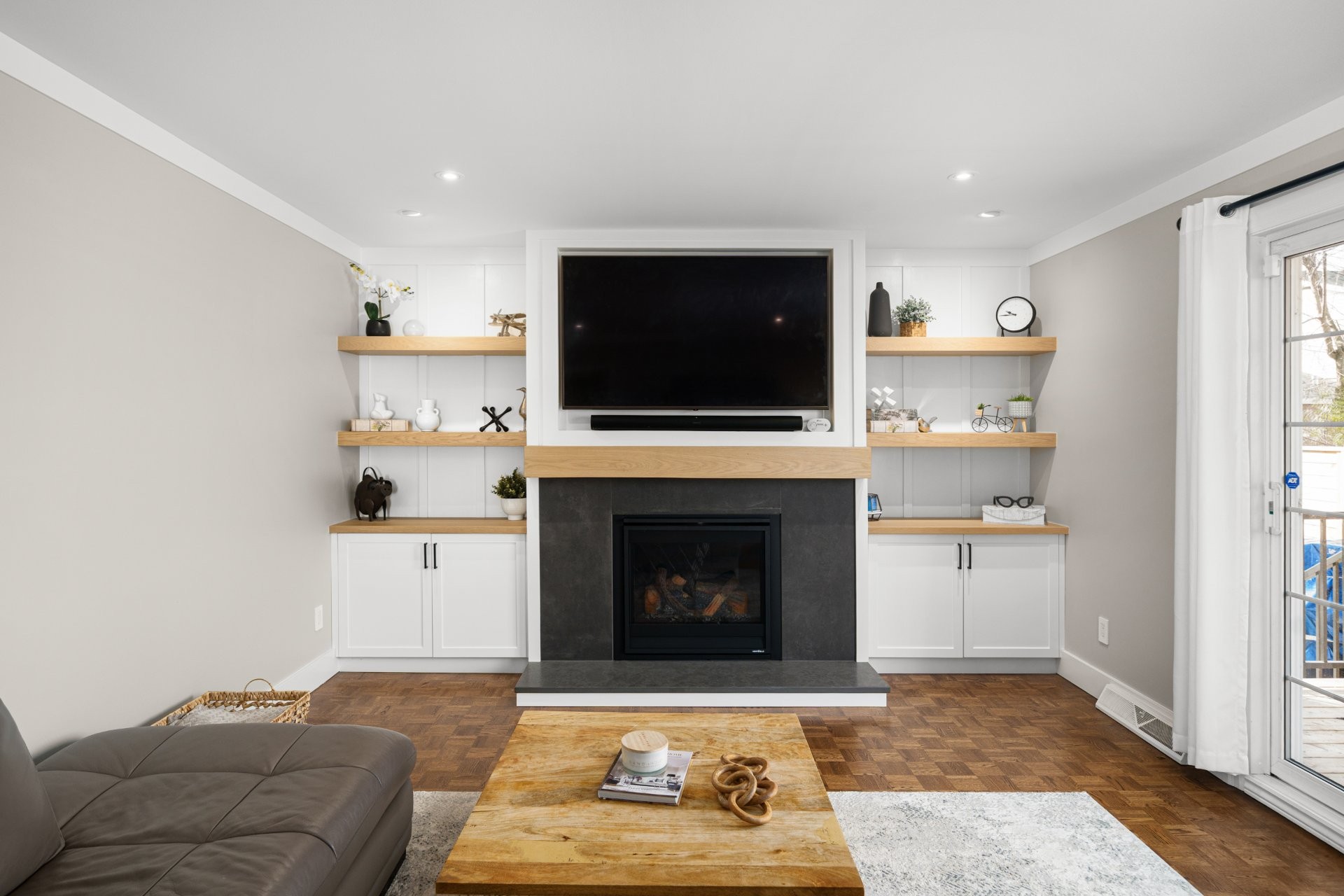 Dès l'entrée, le vestibule moderne et invitant agit comme un accueil à la fois élégant et pratique. Il s'ouvre harmonieusement sur une aire de vie fluide où le salon formel s'enchaîne naturellement vers la salle à manger et la cuisine. La salle familiale propose un espace chaleureux et se distingue par son foyer au gaz et ses rangements intégrées sur mesure.