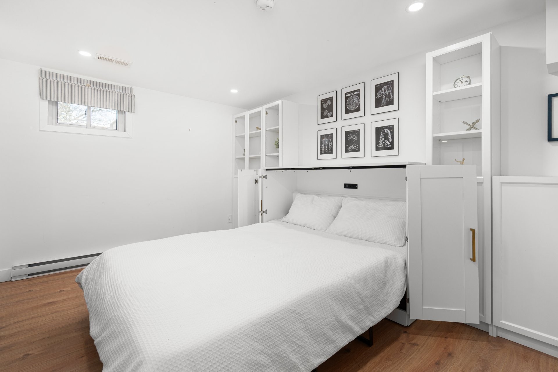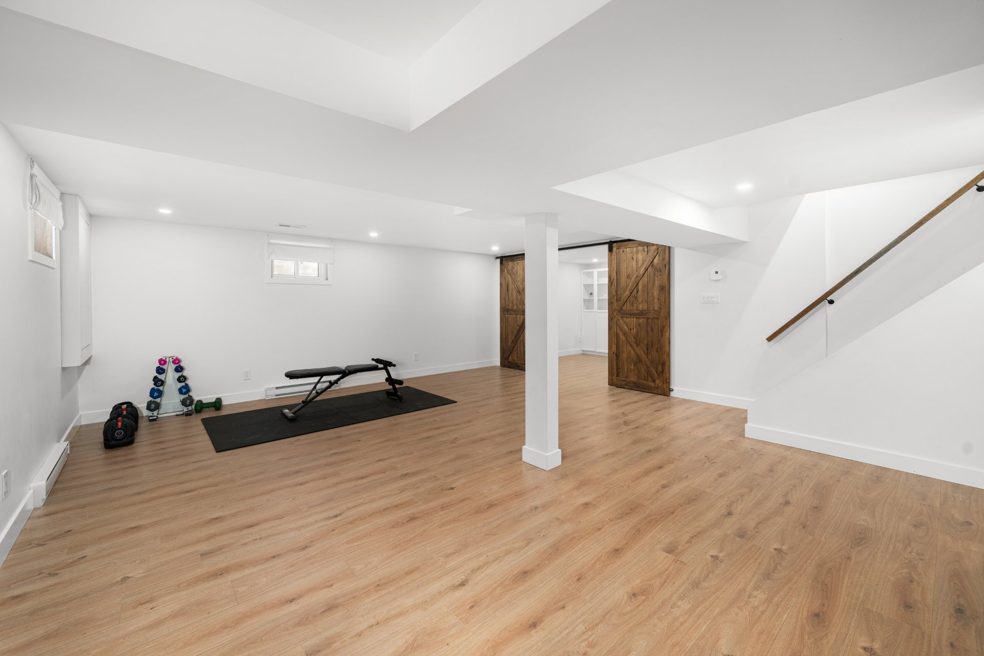 Le sous-sol entièrement rénové ajoute un espace de vie précieux, comprenant une grande salle de jeux, une cinquième chambre (ou bureau) dotée d'un lit escamotable, ainsi qu'une salle de bain moderne avec planchers chauffants.