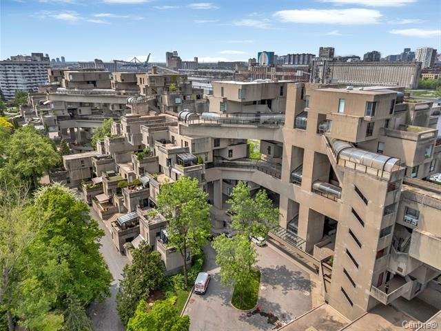 Les terrasses deviennent des extensions de votre espace de vie, parfaites pour prendre vos repas en plein air, jardiner ou simplement vous imprégner des sons apaisants de l'eau et du brouhaha lointain de la ville depuis les intérieurs ouverts et les formes sculpturales en béton qui définissent l'élégance brutaliste. Au-delà de l'esthétique, Habitat offre une véritable exclusivité : un modèle de propriété en société en commandite limitée depuis 1985 garantit la gouvernance communautaire, tandis que les équipements communs comprennent un parking sécurisé, des espaces de stockage, des passerelles piétonnes à différents niveaux et un accès par ascenseur. À quelques minutes seulement du centre-ville de Montréal, du Vieux-Port, des pistes cyclables et des centres culturels, etc.