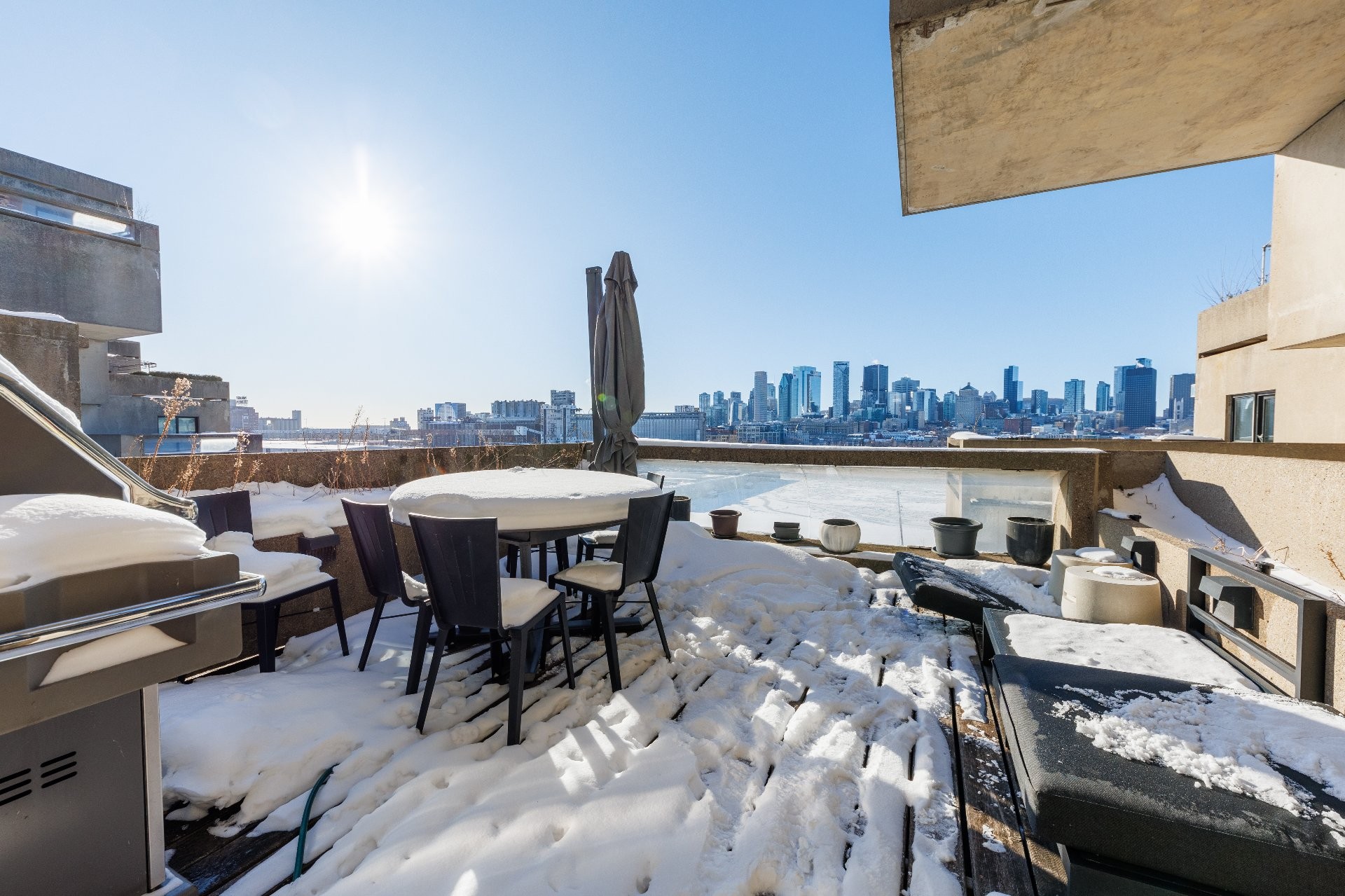 Chaque unité dispose d'au moins une terrasse privée (souvent plusieurs), d'une vue panoramique sur plusieurs côtés et d'une impression de flotter au-dessus du fleuve Saint-Laurent. Imaginez-vous en train de vous réveiller au lever du soleil sur le fleuve, de regarder les bateaux de croisière glisser devant le Vieux-Port ou de siroter un café en admirant la silhouette de Montréal et le mont Royal.