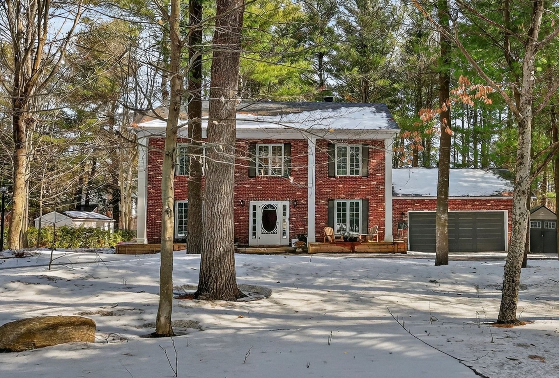 Nichée sur un vaste terrain d'angle dans un cul-de-sac paisible, cette résidence de style géorgien offre un charme intemporel et des espaces de vie exceptionnels.