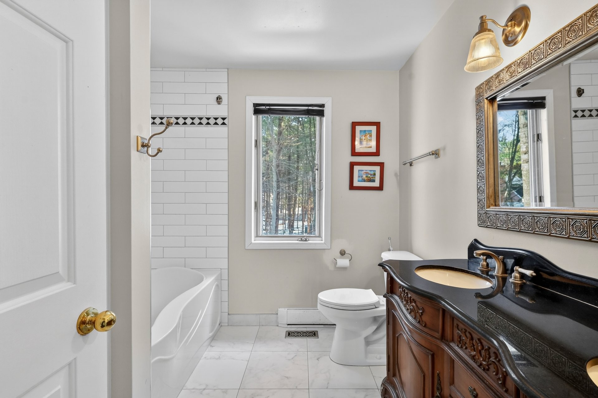 Superbe propriété de style géorgien située sur un croissant paisible. Plan classique à hall central, cuisine rénovée avec comptoirs en quartz ouverte sur la dinette et la salle familiale. Salle familiale chaleureuse avec mur de brique apparente et foyer. La dinette mène à une cour intime avec terrasse et espace treillis apaisant. À l'étage, vaste suite principale avec walk-in et salle de bains attenante avec baignoire jacuzzi et douche séparée, plus deux chambres et une salle de bains complète. Sous-sol non aménagé avec accès direct au garage double. Toiture refaite en 2024, fournaise et thermopompe 2019.