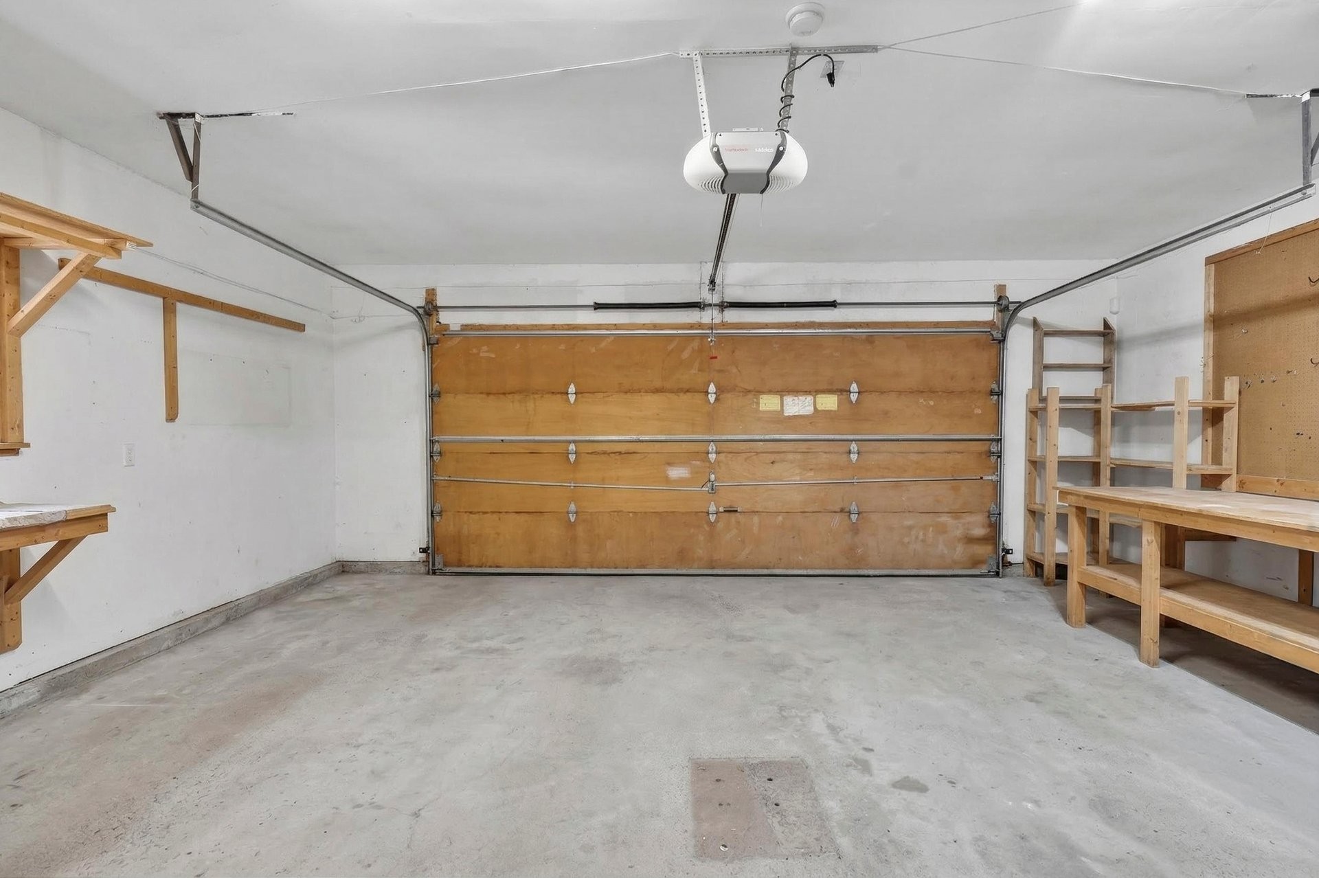 Un garage double avec un large escalier et une entrée indépendante vers le sous-sol offre flexibilité et potentiel.