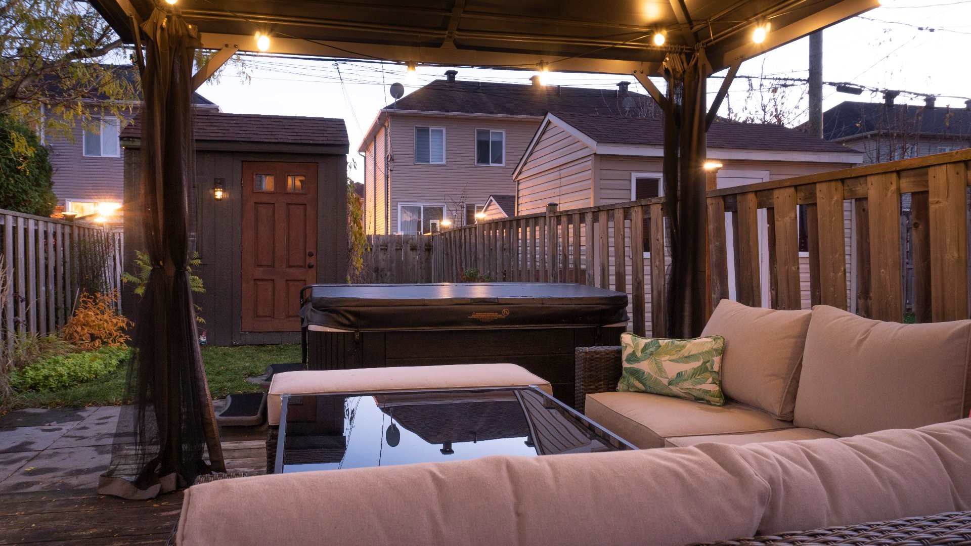 Tous les thermostats Hilo ainsi que le module passerelle, Ensemble des moustiquaires de fenêtre, Sonnette intelligente, Spa (Acheté neuf en 2021 chez Trévi par anciens proprios), Gazebo, Barrière enfant Chambre principale: Luminaire, Support rideau, Rideaux, Tablettes /supports dans garde-robe Chambre secondaire: Luminaire, Store cellulaire fenêtre Salle de bain: Luminaire, Support à serviette (mural), Bidet Salle à manger + cuisine + salon: Tablette de bois - Garde-robe entrée, Porte coulis