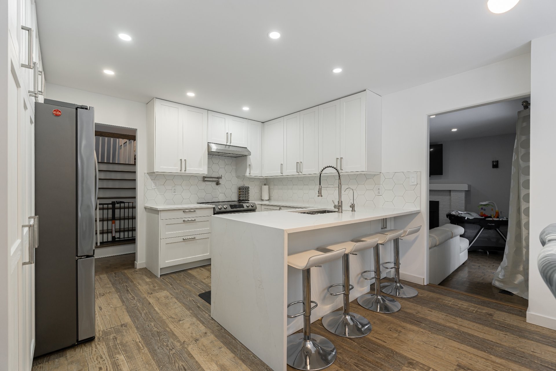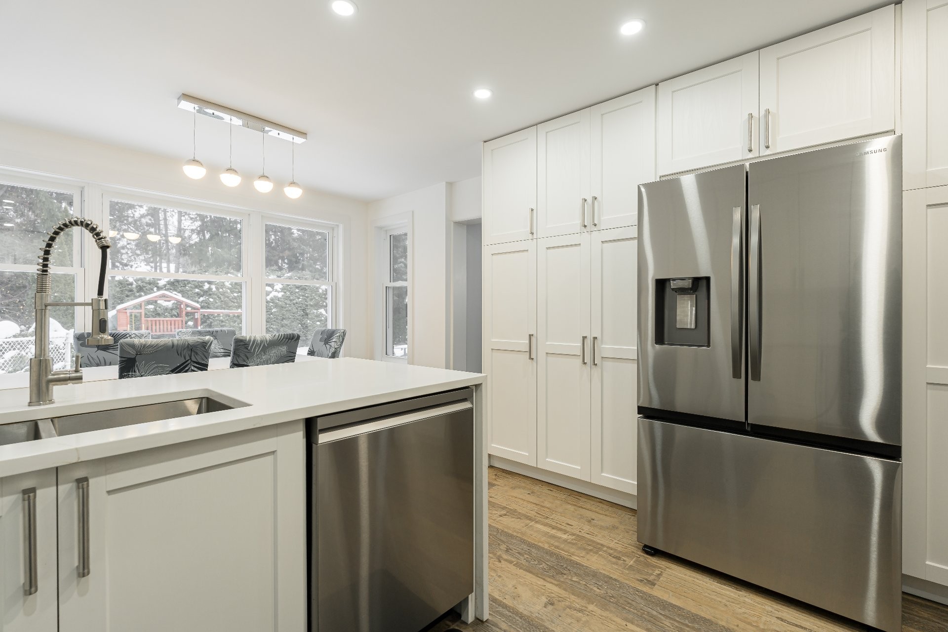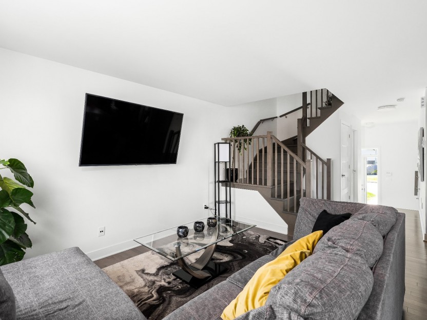 Lave-vaisselle, hotte de cuisinière, système d'alarme (surveillance 23 $/mois), tous les luminaires fixes, interrupteurs intelligents, sonnette intelligente, serrure intelligente de porte d'entrée, aspirateur central, cabano, 1 télécommande de porte de garage.