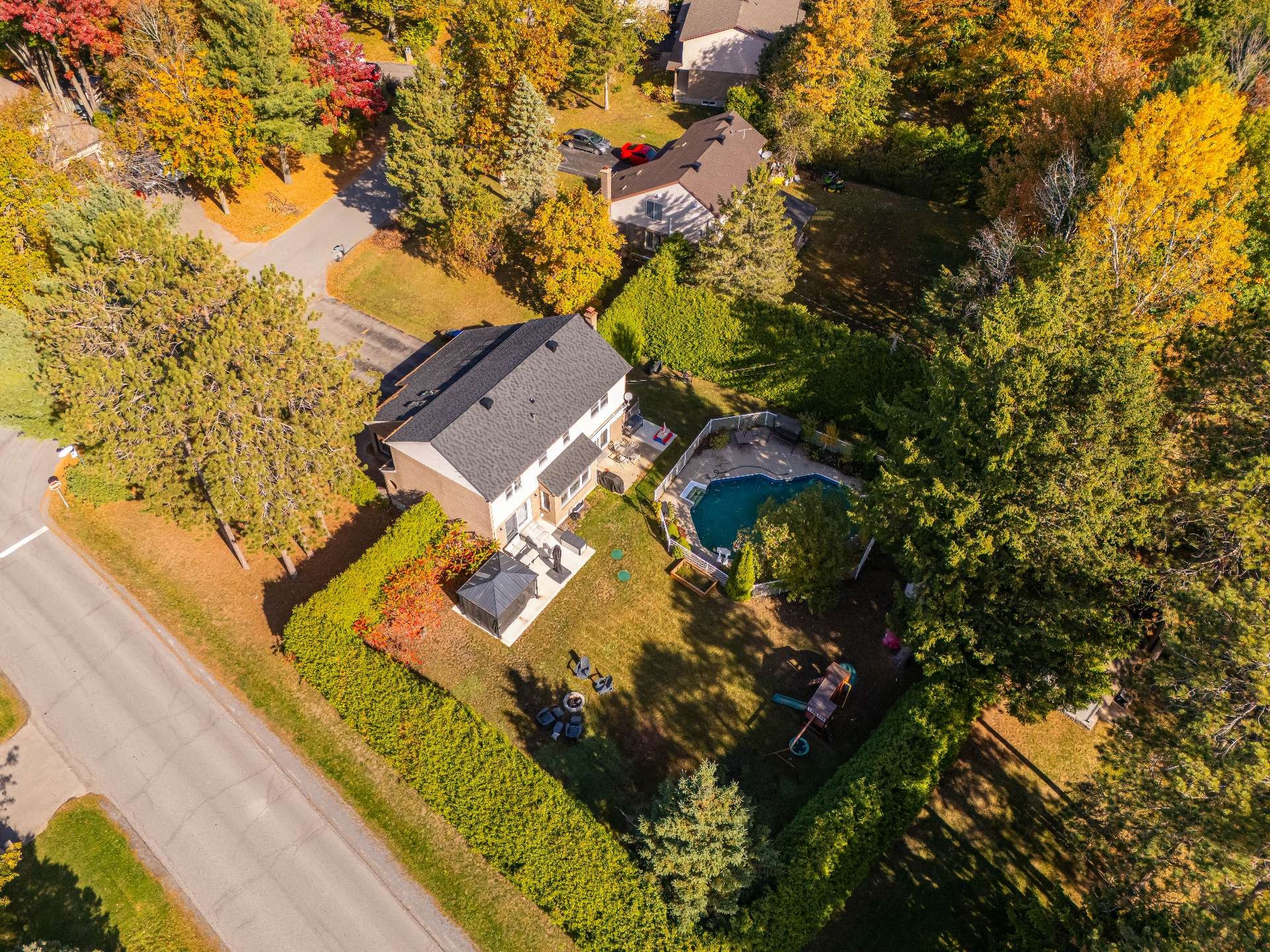 Grande maison familiale impeccablement entretenue dans le secteur très recherché de Saddlebrook ! Salon en contrebas avec plafond cathédrale, salle familiale chaleureuse avec foyer à combustion lente et chambres de très bonnes dimensions. La chambre principale offre une salle de bains attenante privée et des garde-robes doubles. Cuisine et salle d'eau rénovées, fenêtres plus récentes, toiture neuf (2025) et sous-sol récemment aménagé avec deux chambres et une salle de bains complète. Cour intime avec haies matures, piscine creusée chauffée, patio et grande pelouse idéale pour les enfants et pour recevoir. Bienvenue chez vous !