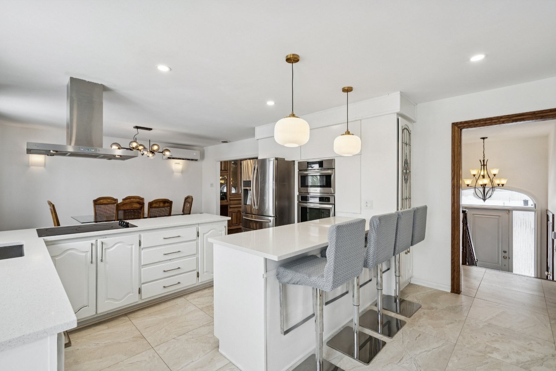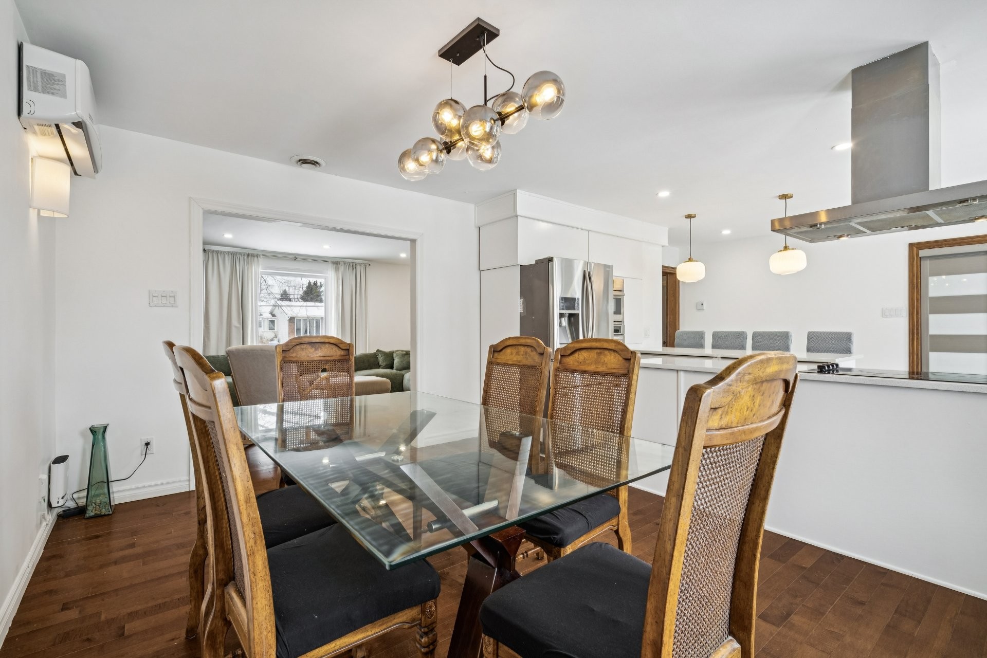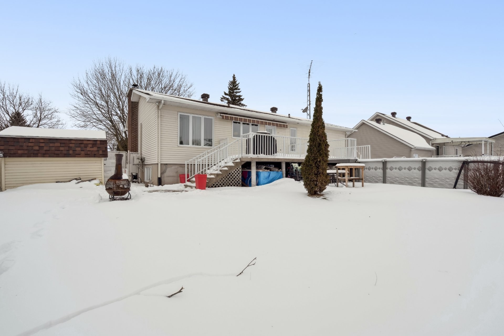 Lave-vaisselle, four et micro-ondes encastrés, plaque de cuisson à induction, les deux thermopompes, rangement IKEA dans la chambre du sous-sol, piscine hors terre et son chauffe-eau (tous deux fonctionnels, sans garantie; la toile de fond de la piscine nécessite un remplacement), ainsi que les stores de la chambre principale et de la salle de bain du rez-de-chaussée.