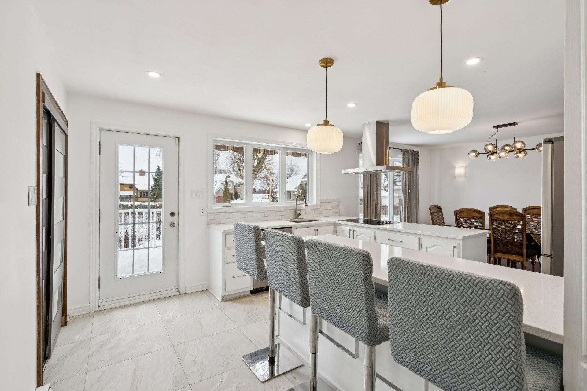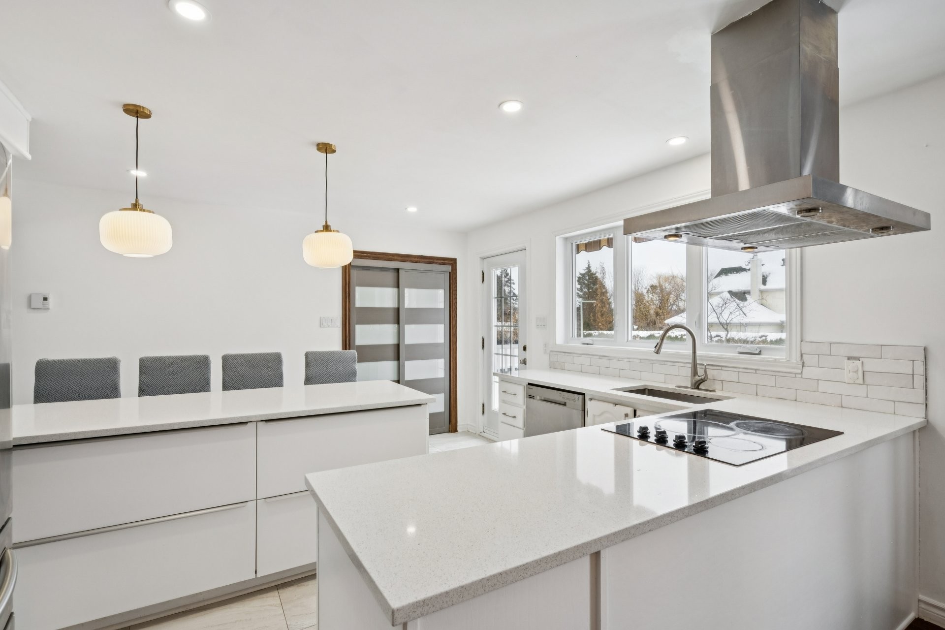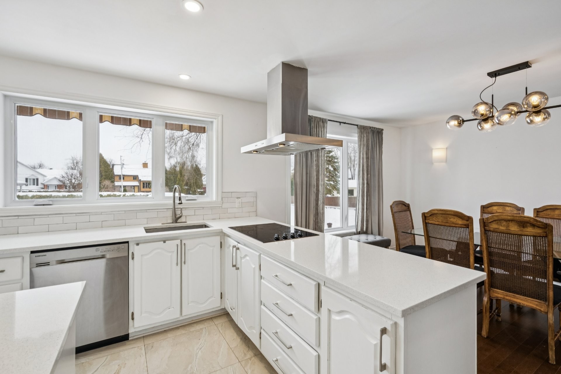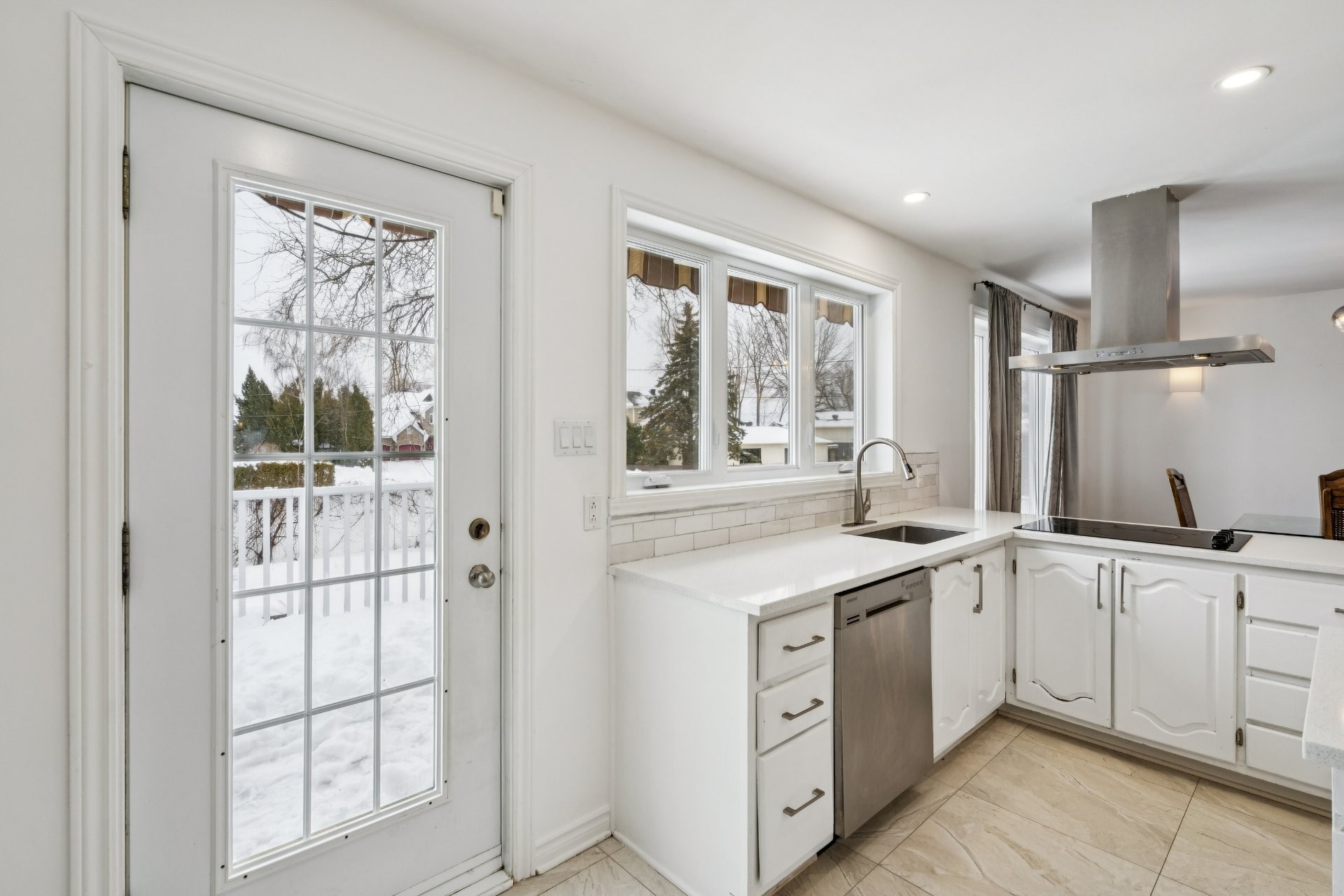Lave-vaisselle, four et micro-ondes encastrés, plaque de cuisson à induction, les deux thermopompes, rangement IKEA dans la chambre du sous-sol, piscine hors terre et son chauffe-eau (tous deux fonctionnels, sans garantie; la toile de fond de la piscine nécessite un remplacement), ainsi que les stores de la chambre principale et de la salle de bain du rez-de-chaussée.