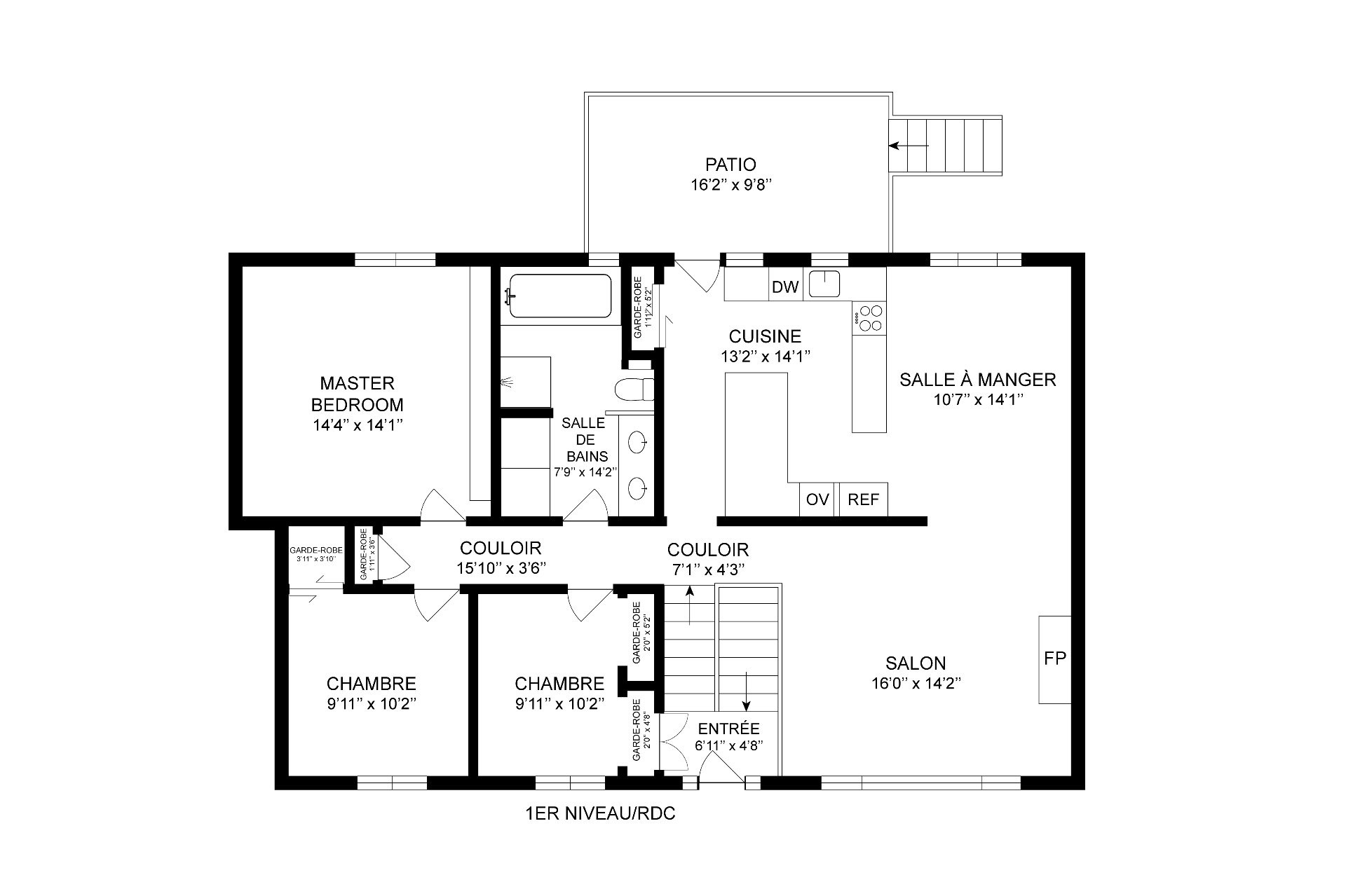 | Chambre à coucher principale | Rez-de-chaussée | 14.4x14.1 P | Bois | |