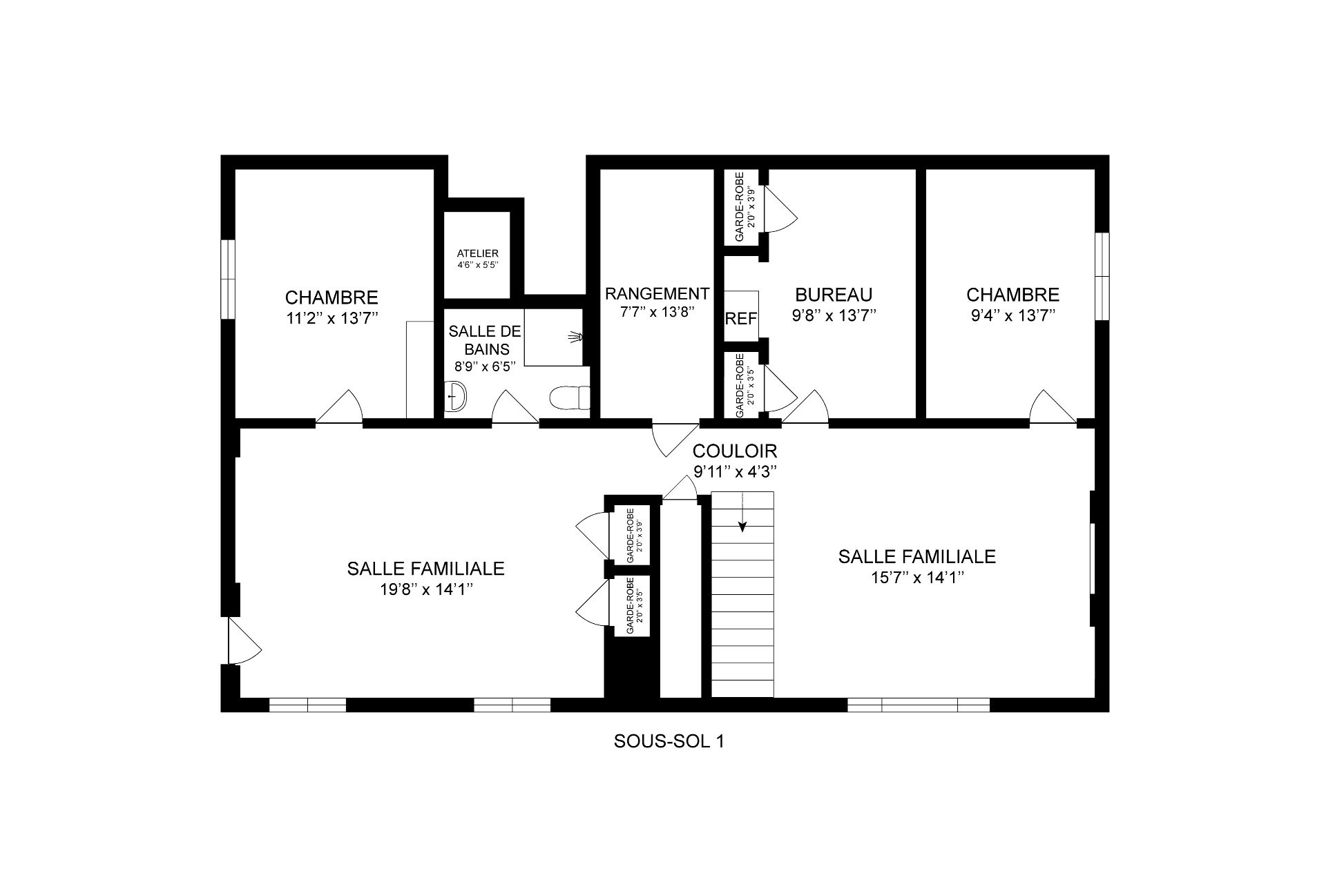 | Rangement | Sous-sol | 7.7x13.8 P | Béton |