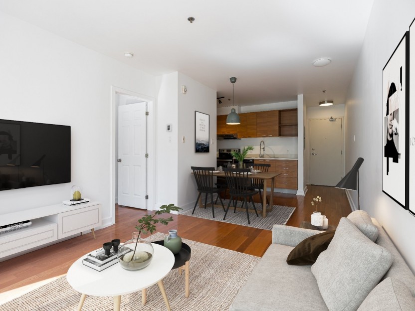 Condo de coin au rez-de-chaussée bien aménagé, comprenant une chambre fermée et un espace de vie lumineux et à aire ouverte. Profitez d'une...