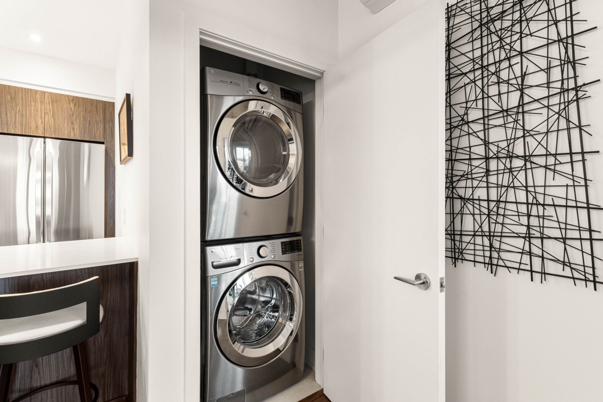 Unité lumineuse et bien pensée au 2e étage à Espace MV3, avec aire salon-salle à manger ouverte, chambre confortable avec walk-in et salle d...