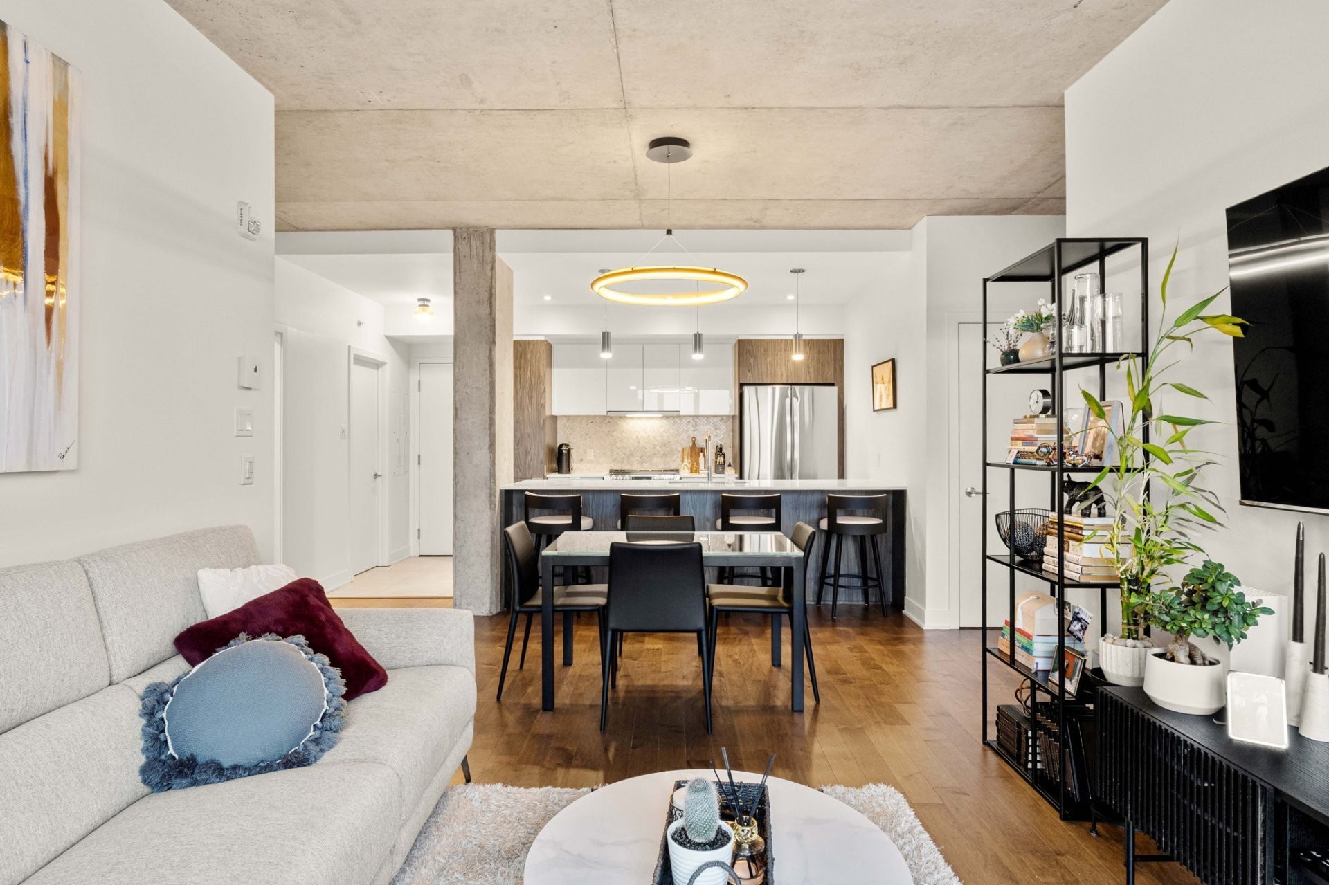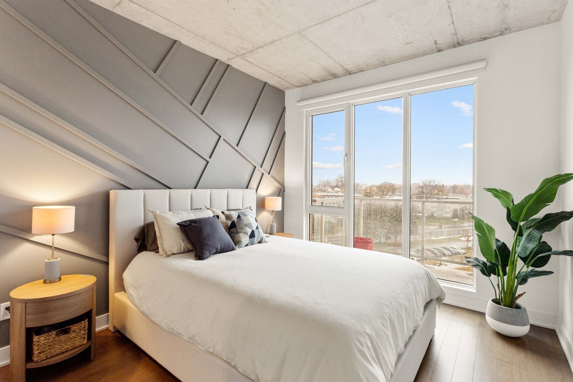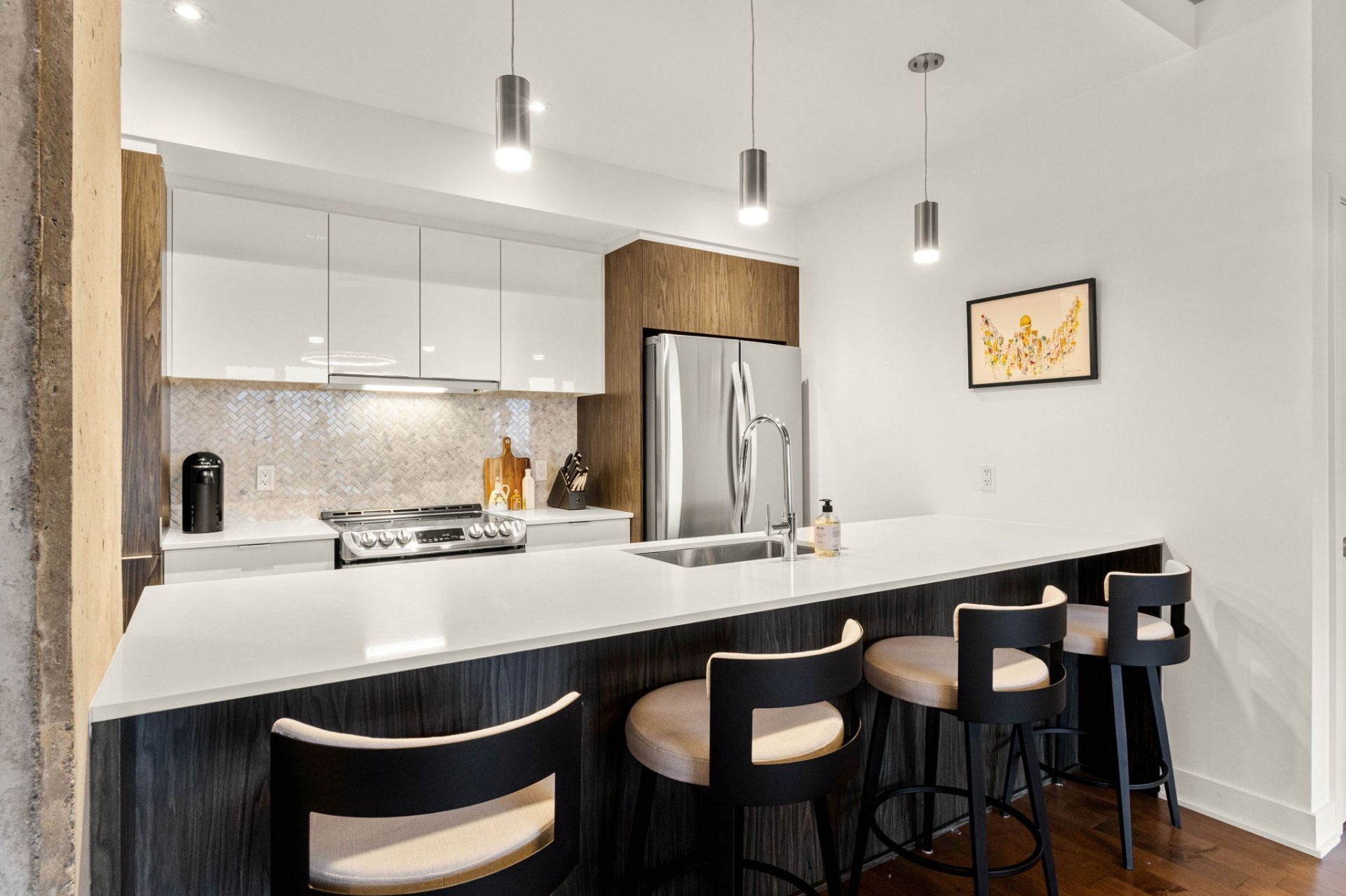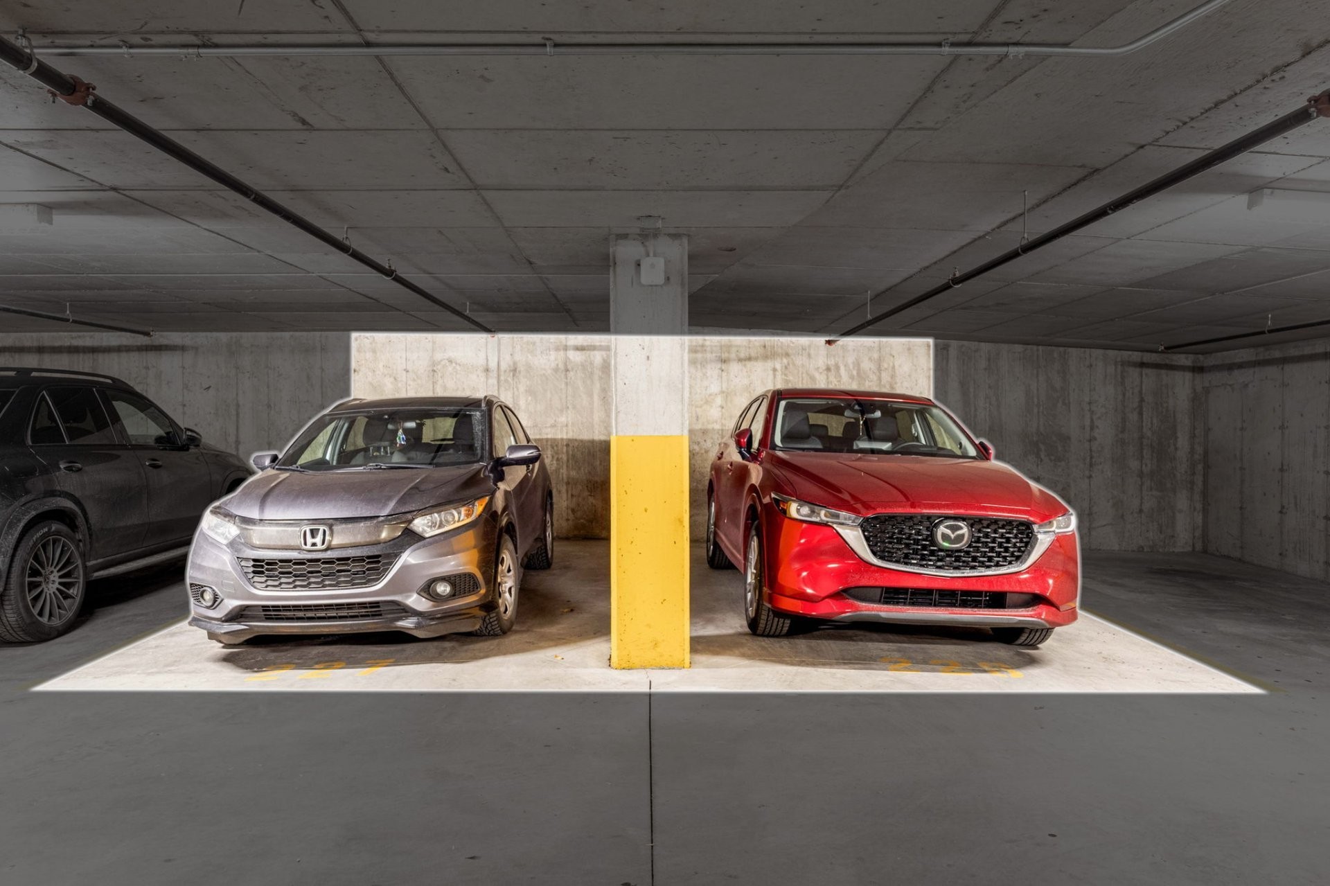 Profitez d'une abondante lumière naturelle grâce aux fenêtres pleine hauteur dans cet espace de vie remarquable. Les caractéristiques incluent : 2 chambres spacieuses, dont une chambre principale avec un grand walk-in et une salle de bain attenante, une cuisine généreuse avec comptoirs en quartz et grand îlot, des plafonds de 9', un espace de vie à aire ouverte, un grand balcon, 2 stationnements intérieurs chauffés, un vaste espace de rangement, et bien plus. Vous apprécierez également plusieurs améliorations : céramique dans l'entrée et la cuisine, plafond suspendu avec éclairage encastré additionnel dans la cuisine, dosseret en marbre, ainsi qu'un mur d'accent en bois dans la chambre principale.