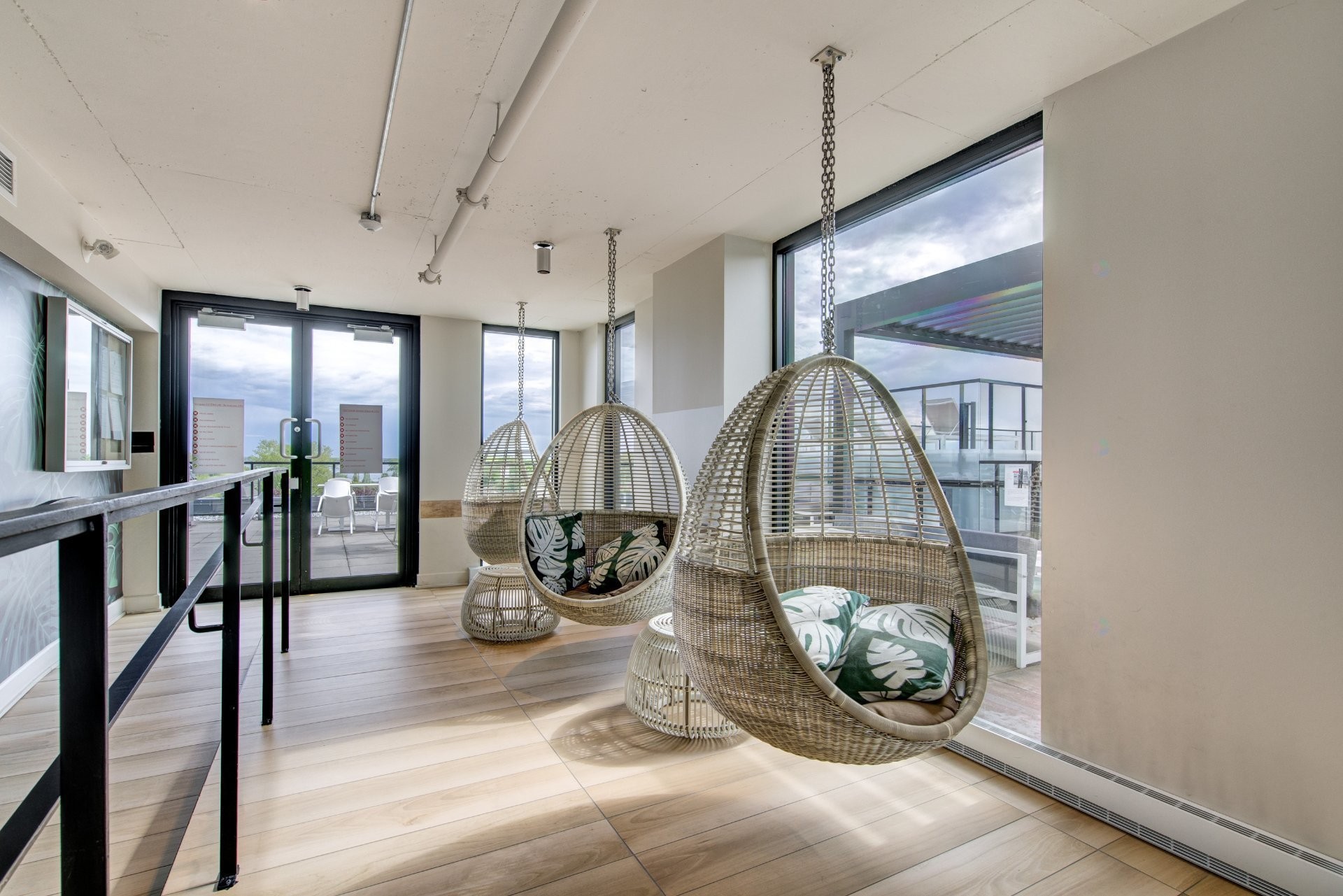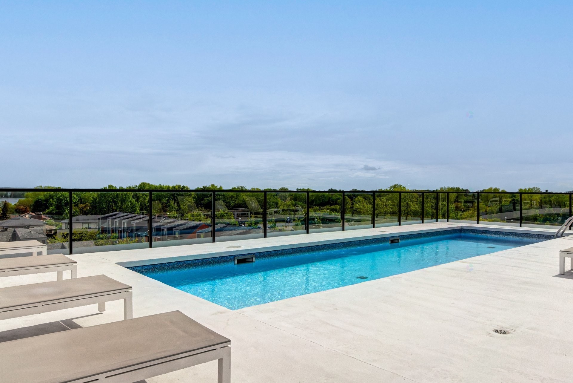 Les commodités de l'immeuble comprennent une salle d'entraînement ultramoderne, un chalet urbain et une terrasse sur le toit dotée d'une piscine d'eau salée chauffée offrant une vue imprenable sur le Lac Saint-Louis.