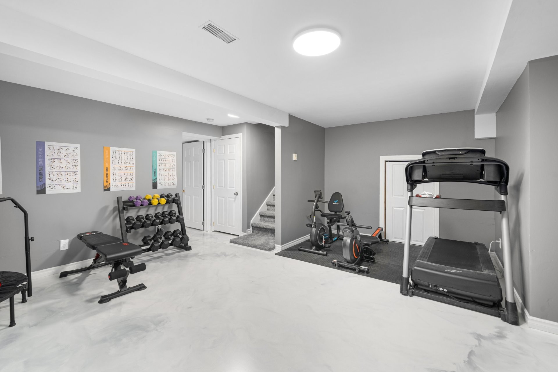 Réfrigérateur, cuisinière, 2 congélateurs, mini-réfrigérateur, unité de rangement dans la chambre du sous-sol, rideaux et tringles, établi avec unité de rangement dans le garage.