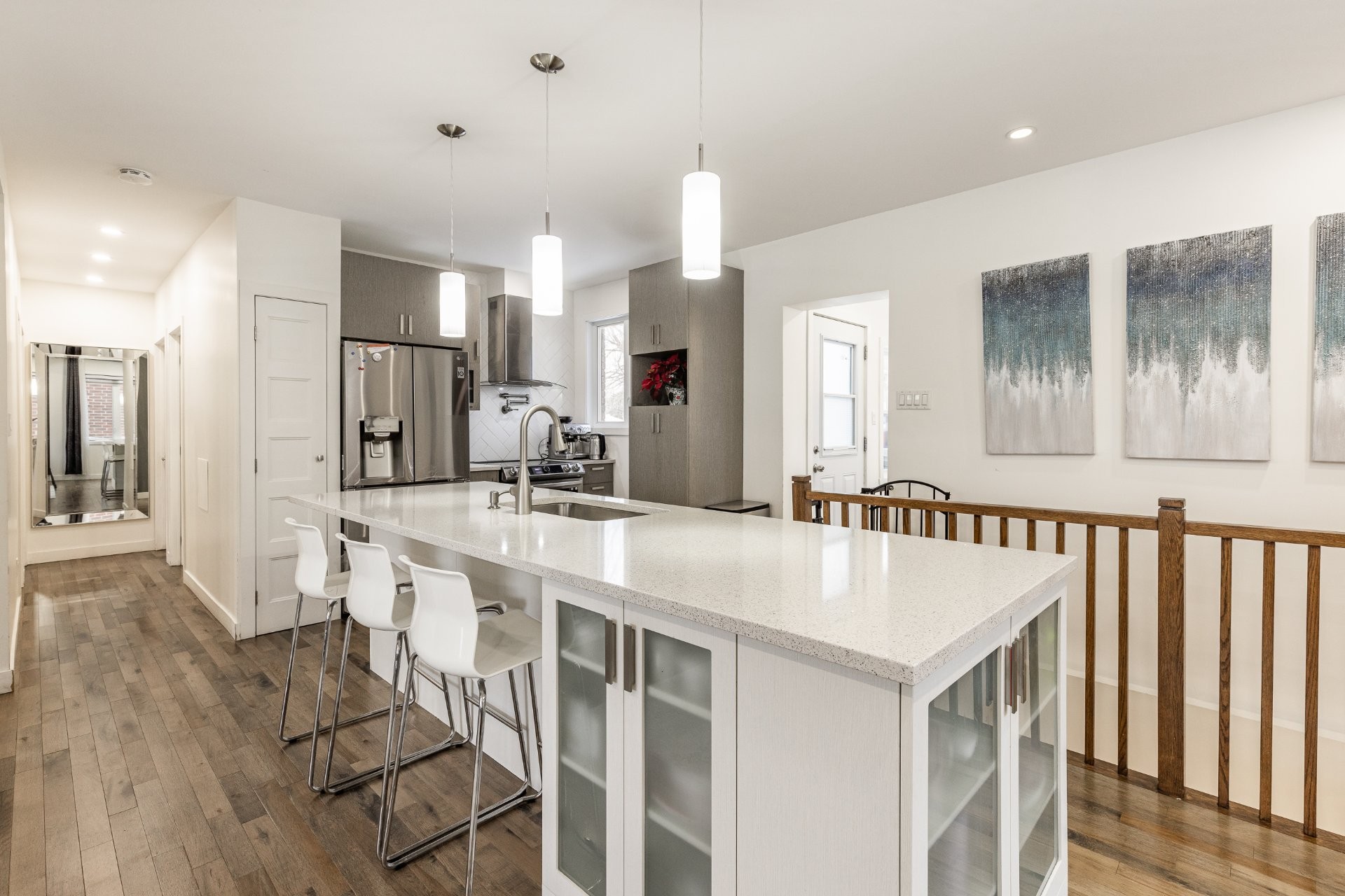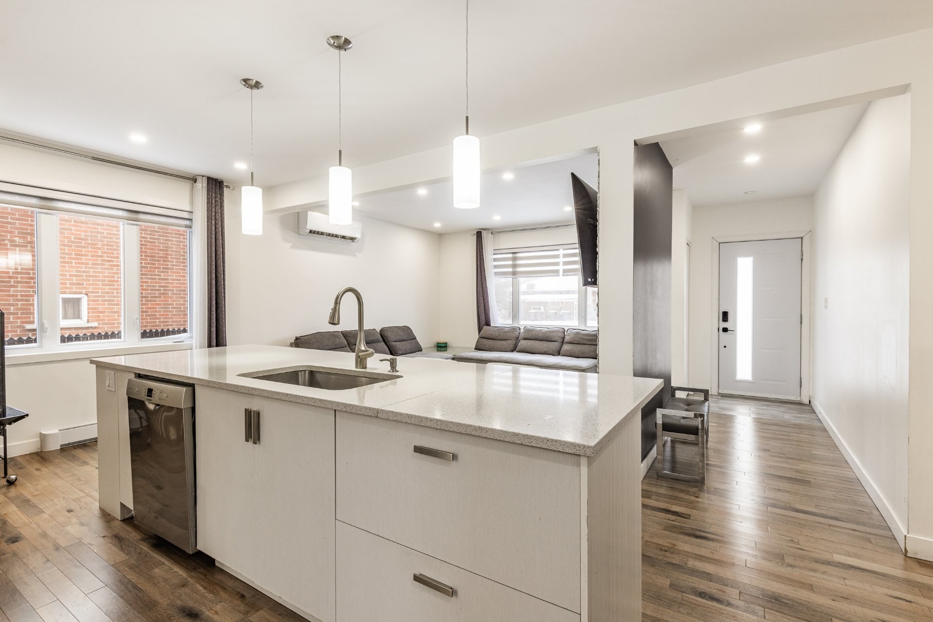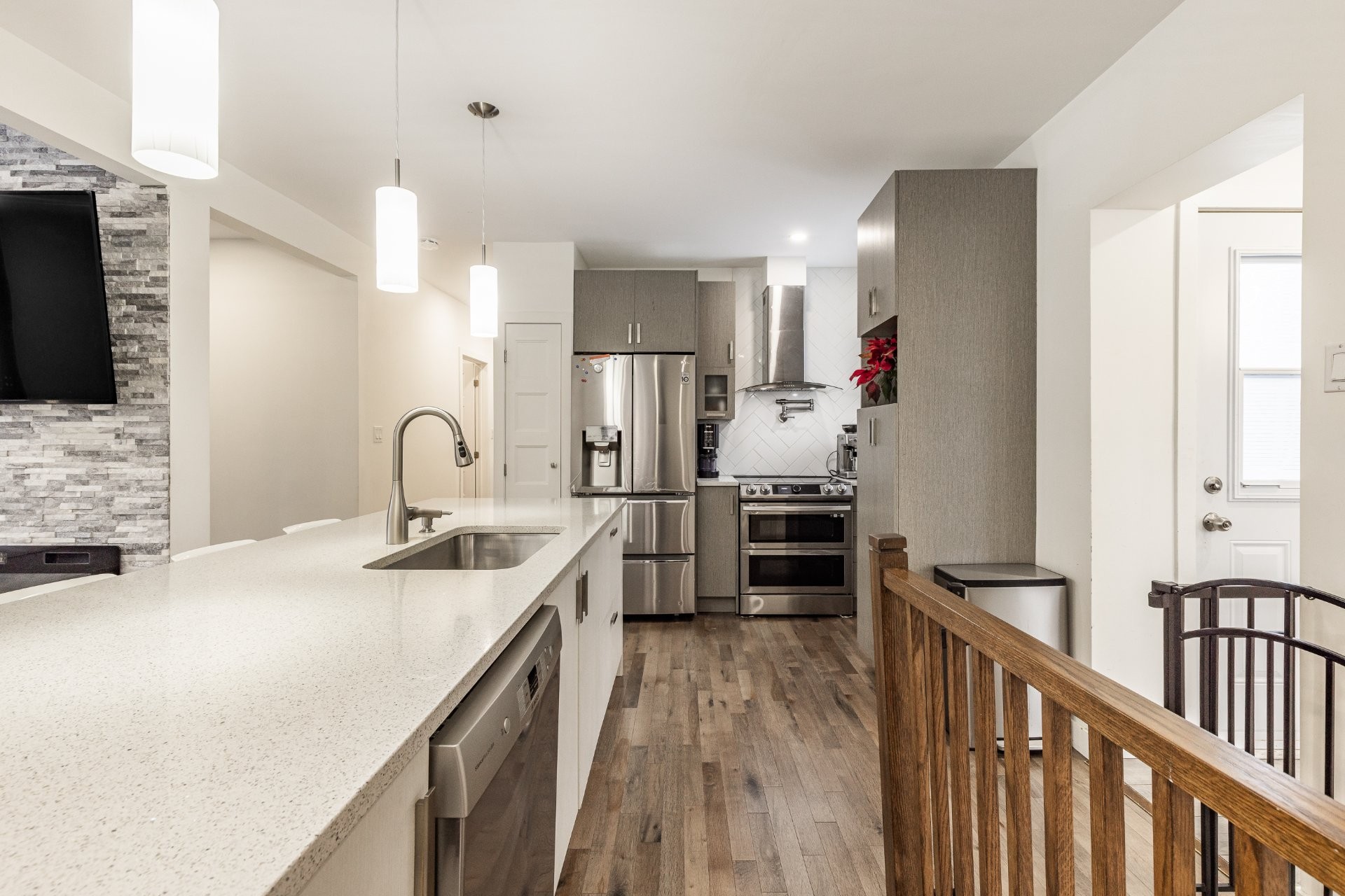- Cuisine rénovée avec comptoir en quartz.