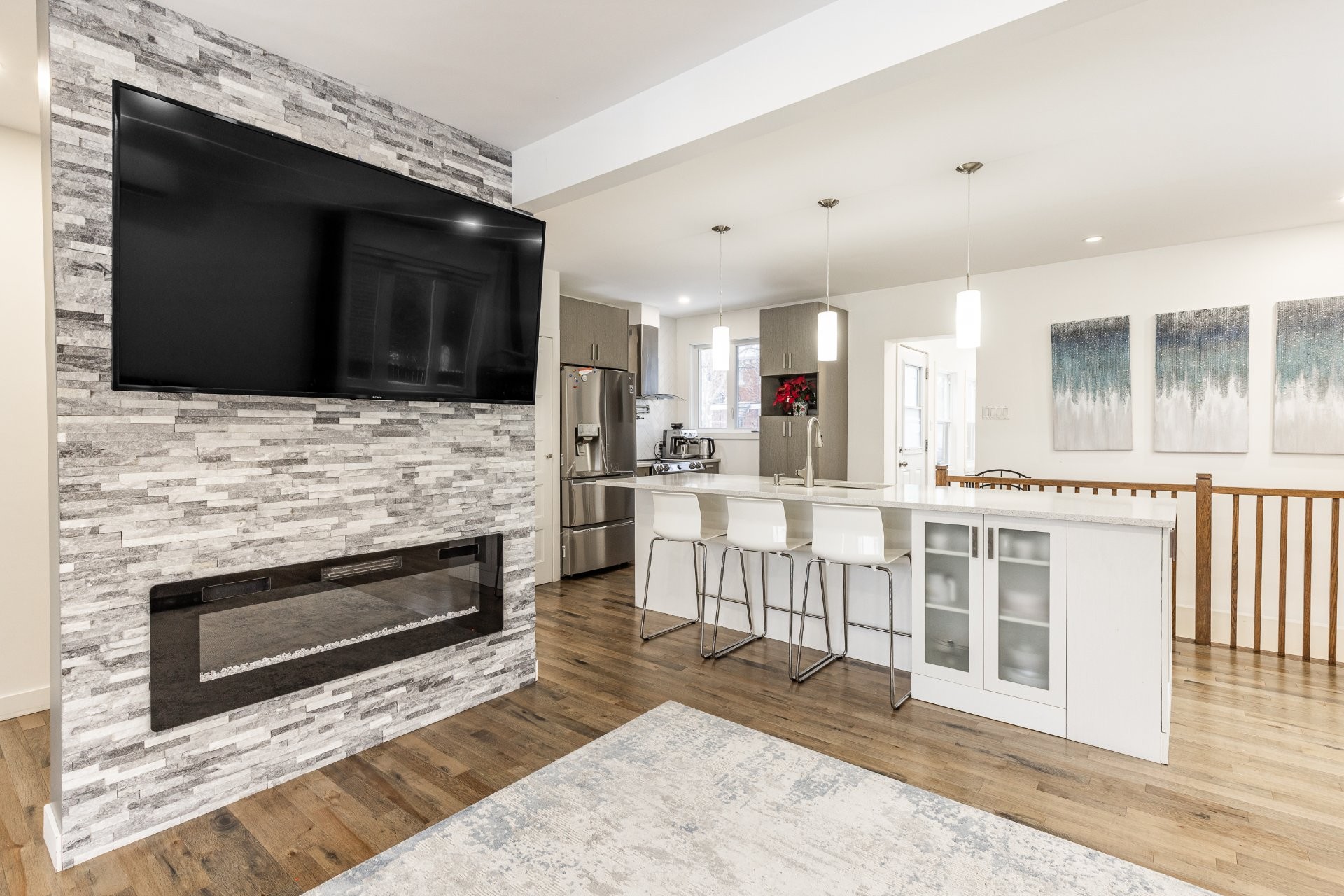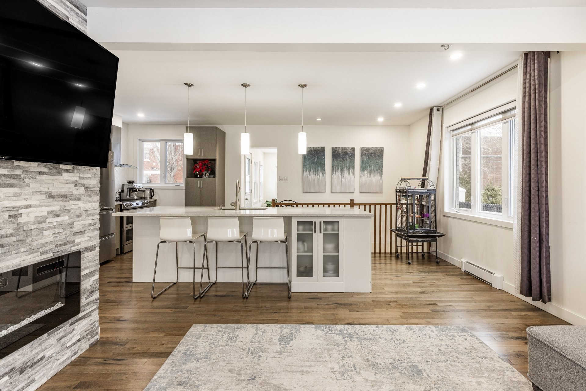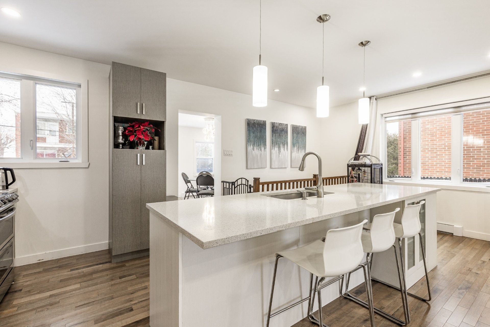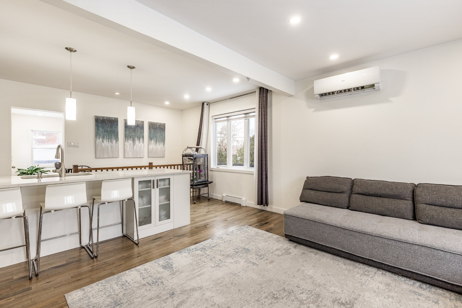- Cuisine rénovée avec comptoir en quartz.