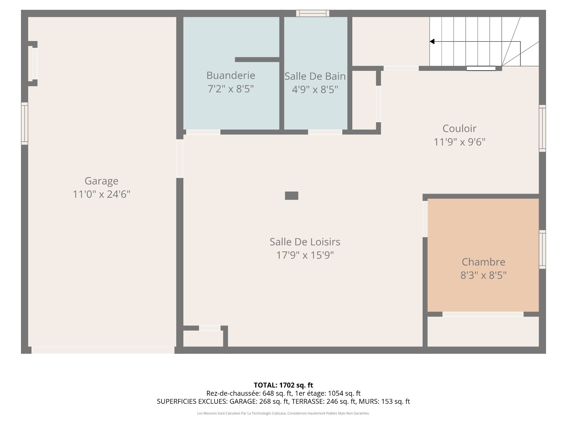 | Salle familiale | Sous-sol | 17.4x15.3 P | Plancher flottant | |