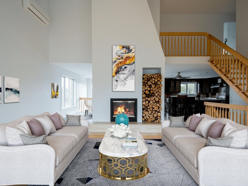 Dès l'entrée, le ton est donné : des espaces de vie à aire ouverte, des plafonds d'une hauteur impressionnante et des matériaux de qualité supérieure créent une atmosphère à la fois chaleureuse et distinguée. Le salon, baigné de lumière naturelle, s'ouvre sur une terrasse invitant à la détente et à la contemplation du paysage environnant. La cuisine, véritable coeur de la maison, séduira les plus exigeants par son design épuré, son vaste îlot central et ses équipements haut de gamme -- un espace idéal pour recevoir avec élégance.