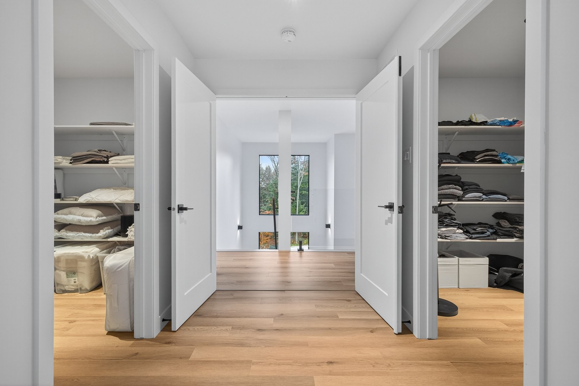 À l'étage, la résidence propose quatre chambres spacieuses, dont une somptueuse chambre principale digne d'une suite hôtelière. Celle-ci offre une salle de bains attenante luxueuse, avec baignoire autoportante et douche vitrée, ainsi que deux penderies walk-in aménagées avec soin. Les autres chambres, lumineuses et bien proportionnées, offrent un confort absolu pour la famille ou les invités. Une seconde salle de bains complète et une salle de lavage ajoutent à la fonctionnalité de l'étage.