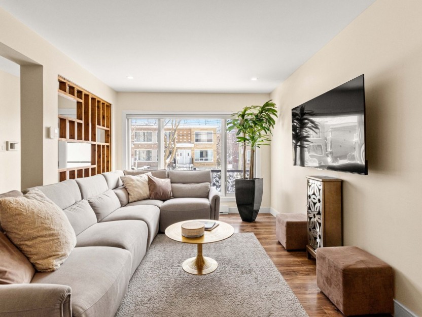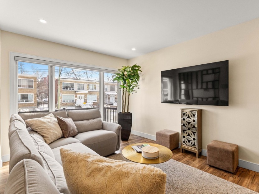 Unité de coin 5½ entièrement meublée dans un triplex, à quelques pas du REM à Saint-Laurent! Ce logement au milieu de l'immeuble est entière...
