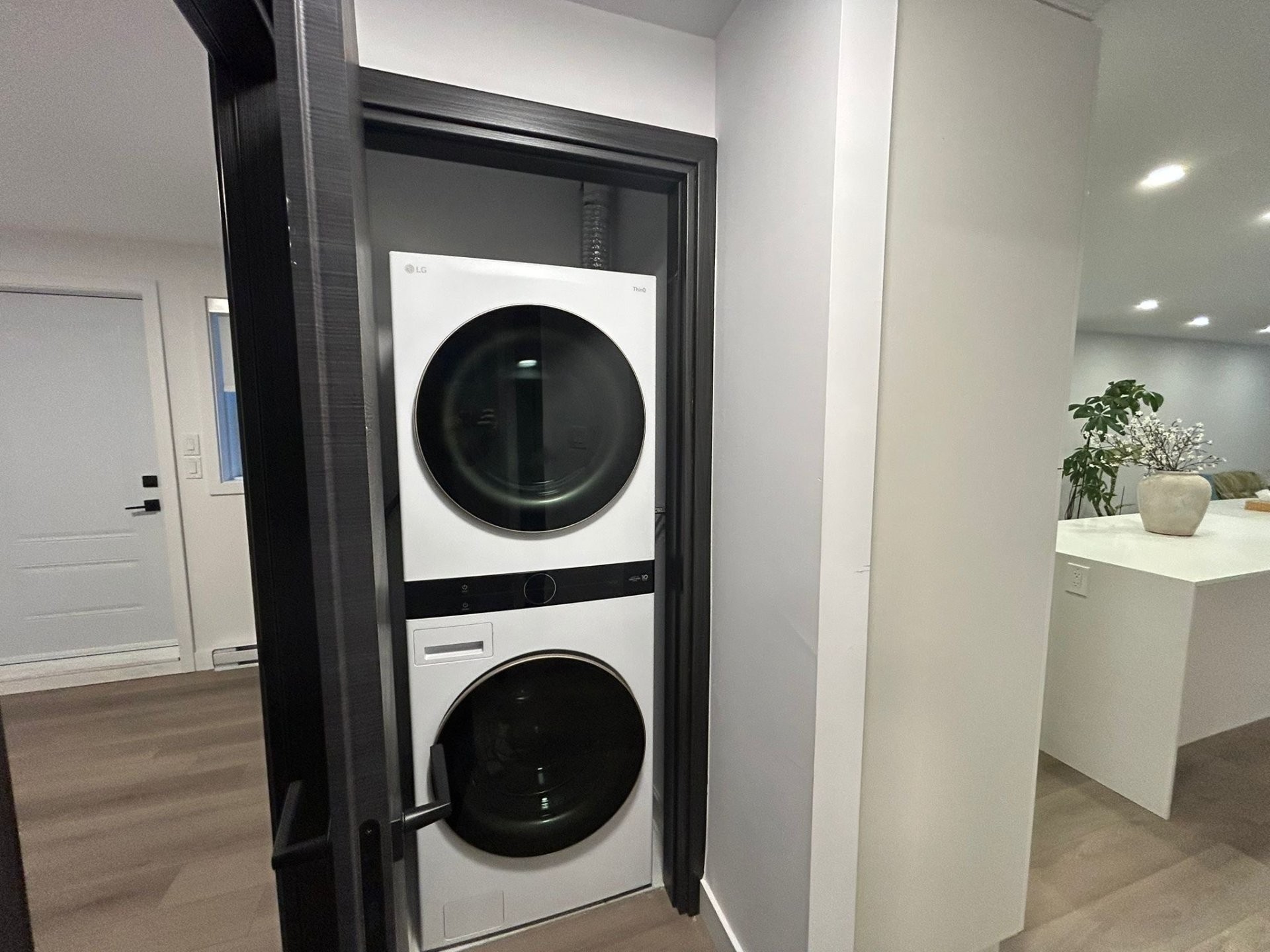 Construit en 2024, ce superbe logement au sous-sol offre 3 chambres, 1 salle de bain et une cuisine à aire ouverte avec comptoirs en quartz, un salon et une salle à manger combinés, ainsi qu'un climatiseur mural. Idéalement situé à quelques minutes des commerces, parcs, transports en commun, train et avec un accès rapide aux autoroutes 13 et 40.
