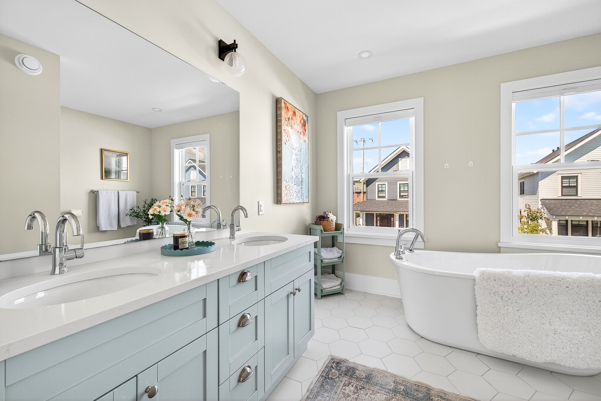 - La salle de bains attenante à la chambre principale est munie de stores d'intimité « top-down/bottom-up ».