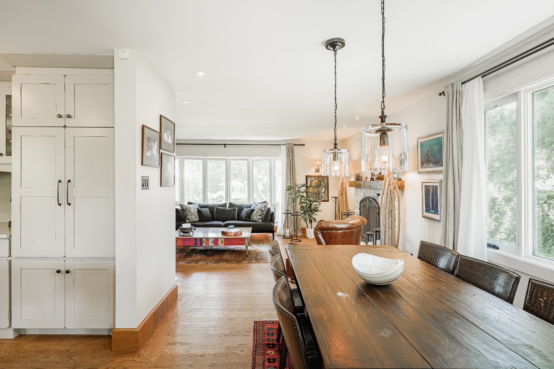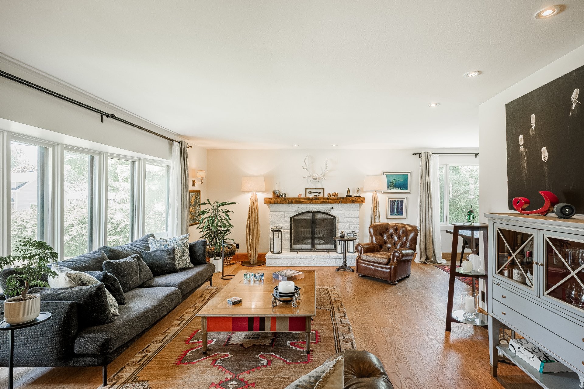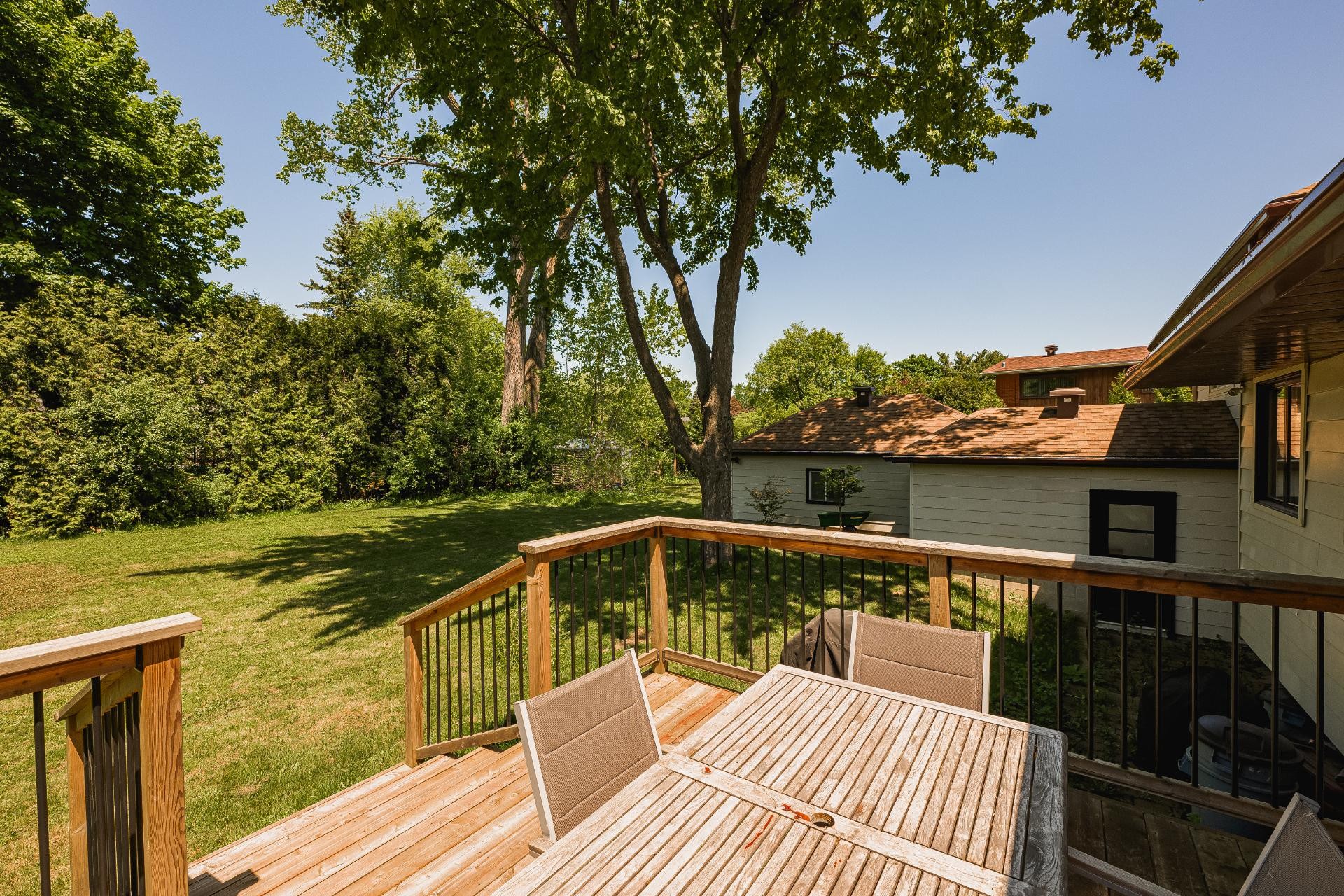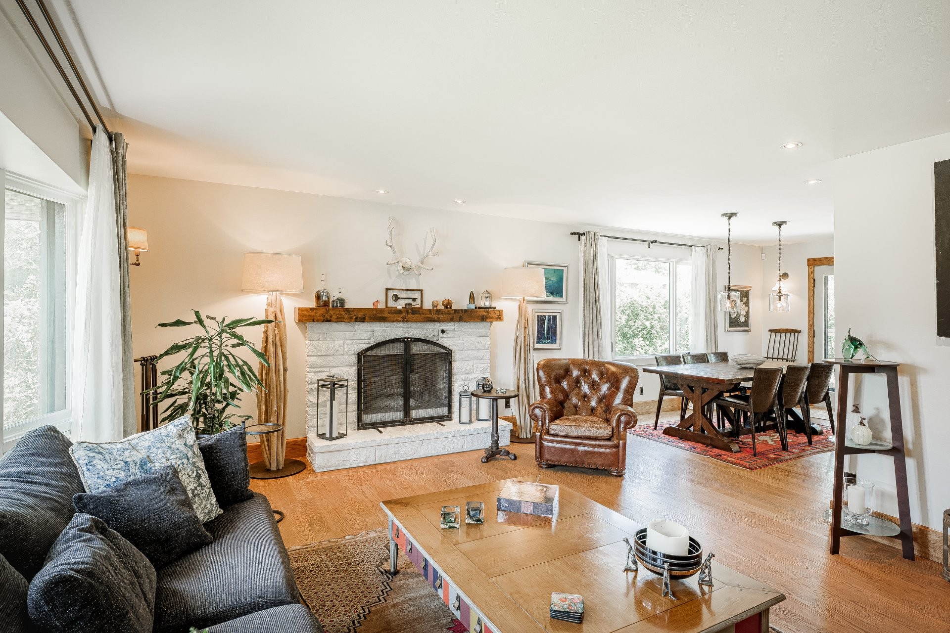 Dès l'entrée, un hall ouvert et accueillant vous mène à un salon baigné de lumière, agrémenté d'un charmant foyer en pierre au bois avec manteau en bois antique. La grande salle à manger s'ouvre, par des portes françaises, sur une vaste terrasse en bois -- idéale pour recevoir à l'extérieur et profiter de la cour arrière privée et spacieuse.