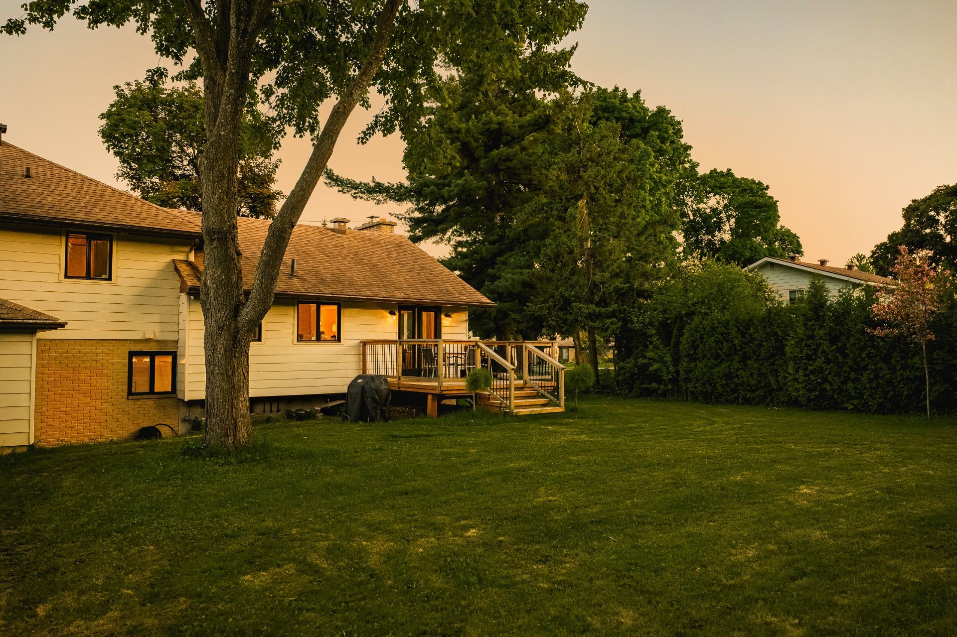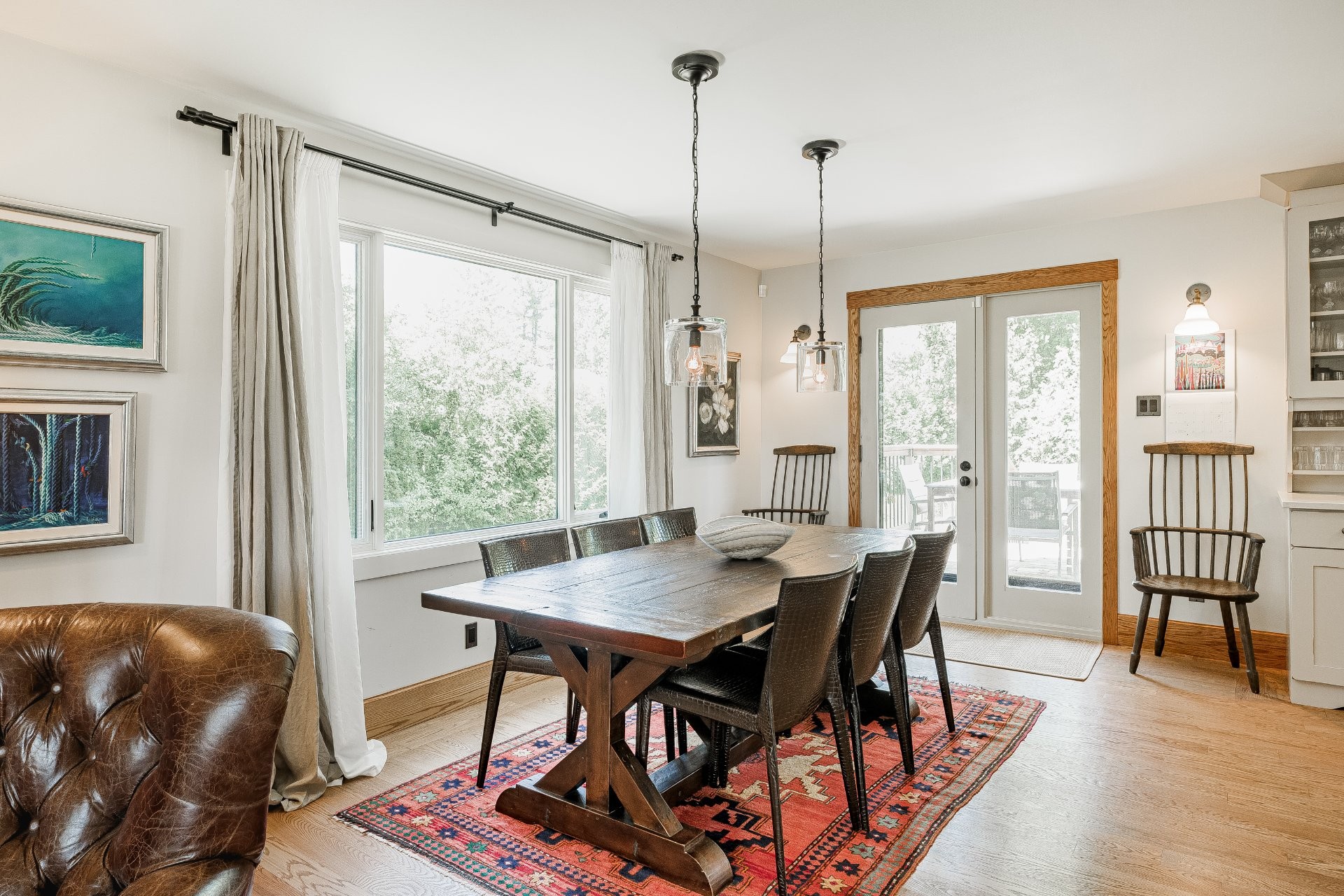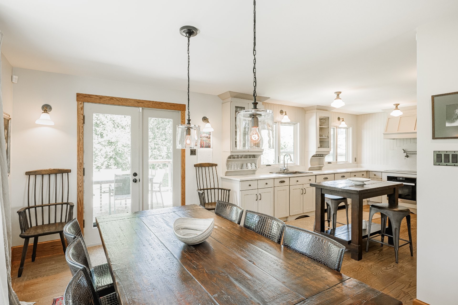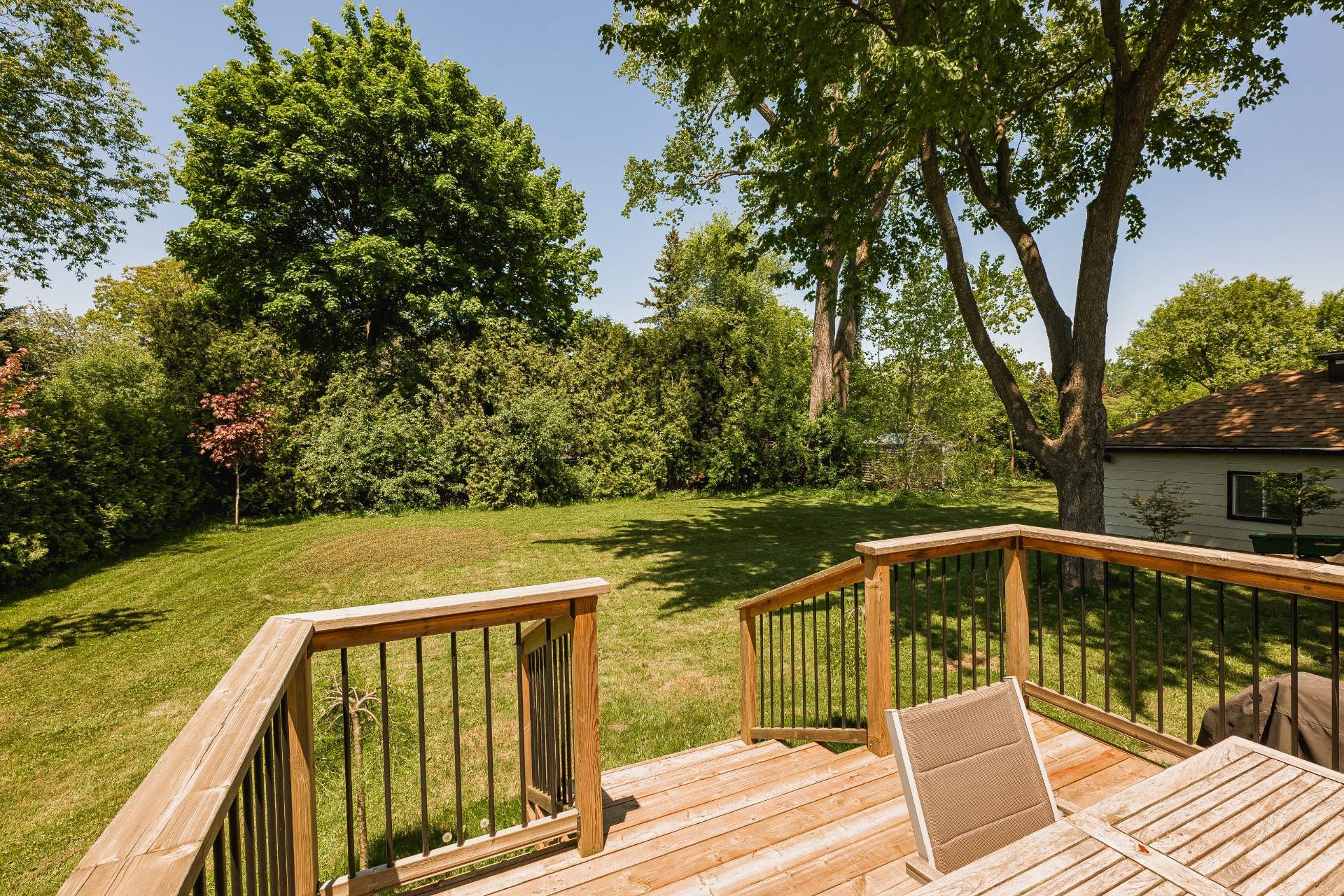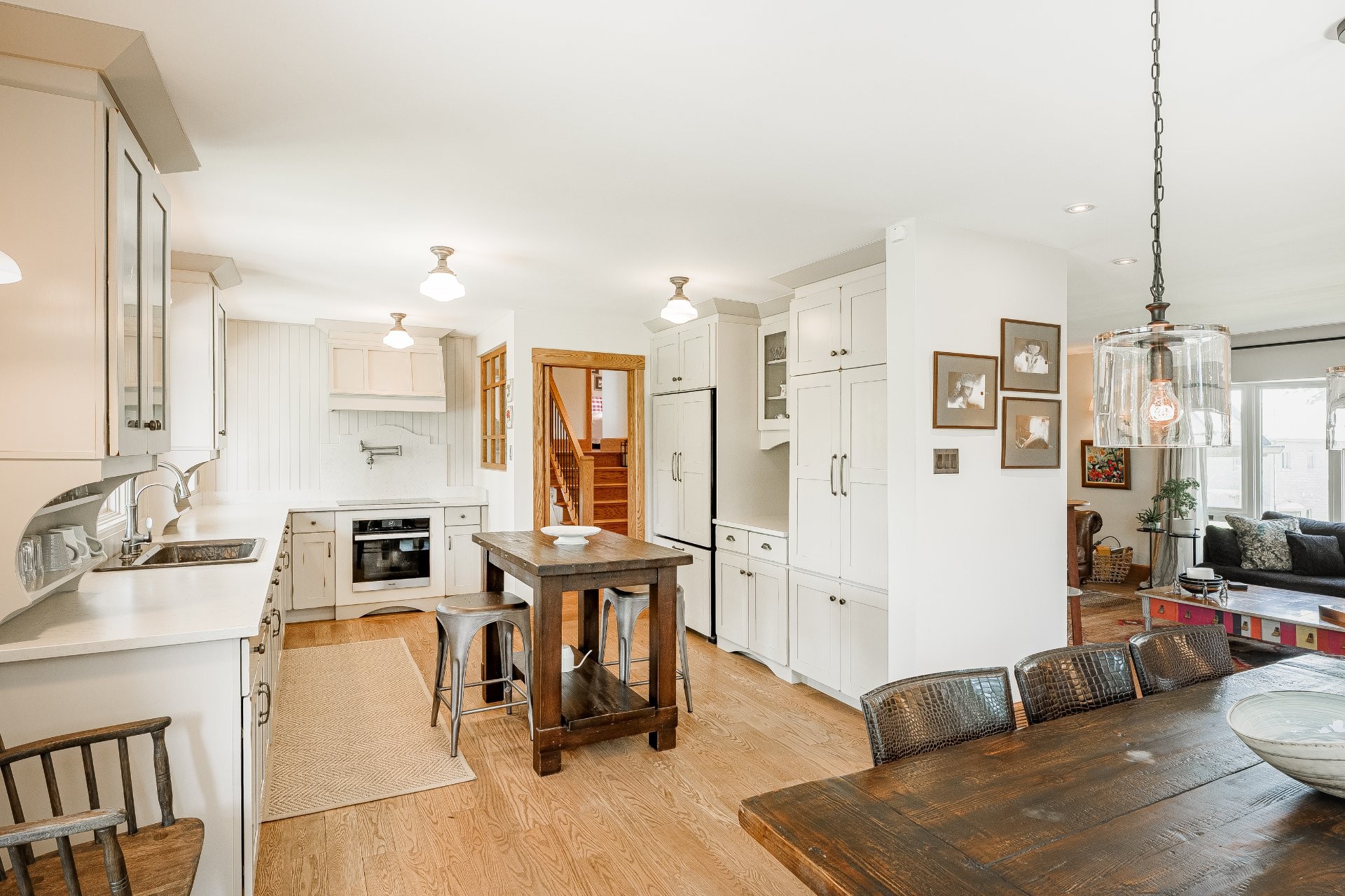 Dès l'entrée, un hall ouvert et accueillant vous mène à un salon baigné de lumière, agrémenté d'un charmant foyer en pierre au bois avec manteau en bois antique. La grande salle à manger s'ouvre, par des portes françaises, sur une vaste terrasse en bois -- idéale pour recevoir à l'extérieur et profiter de la cour arrière privée et spacieuse.