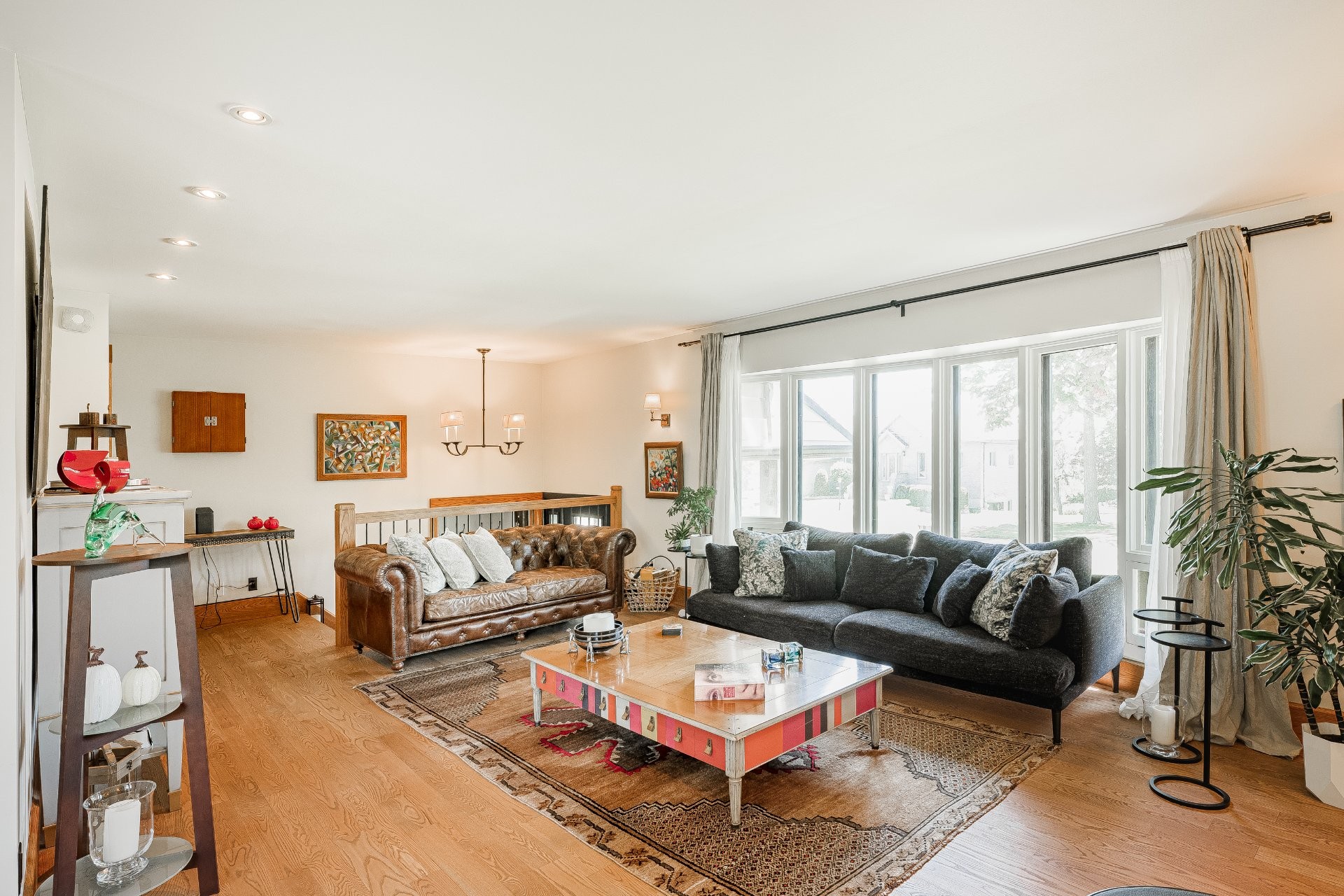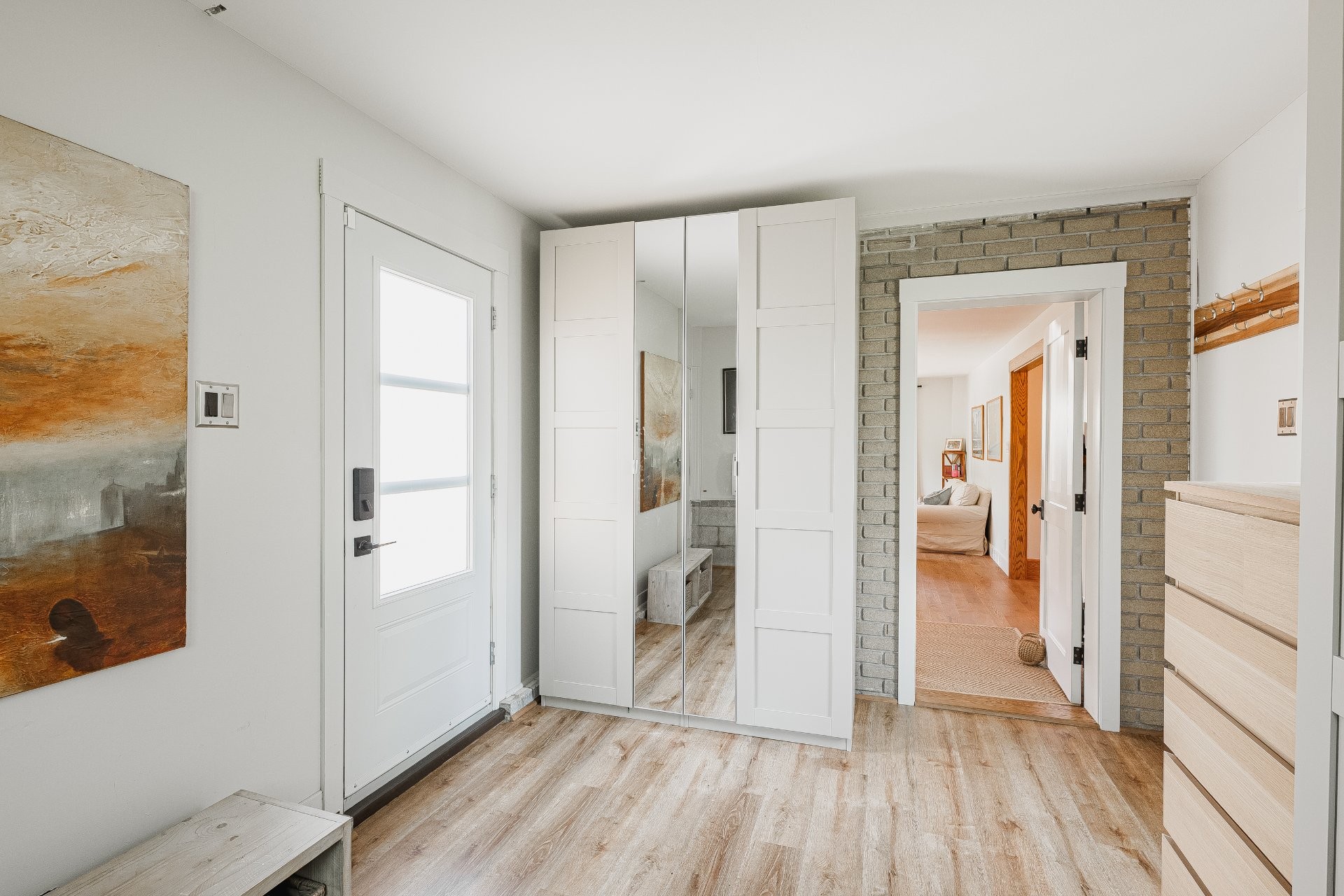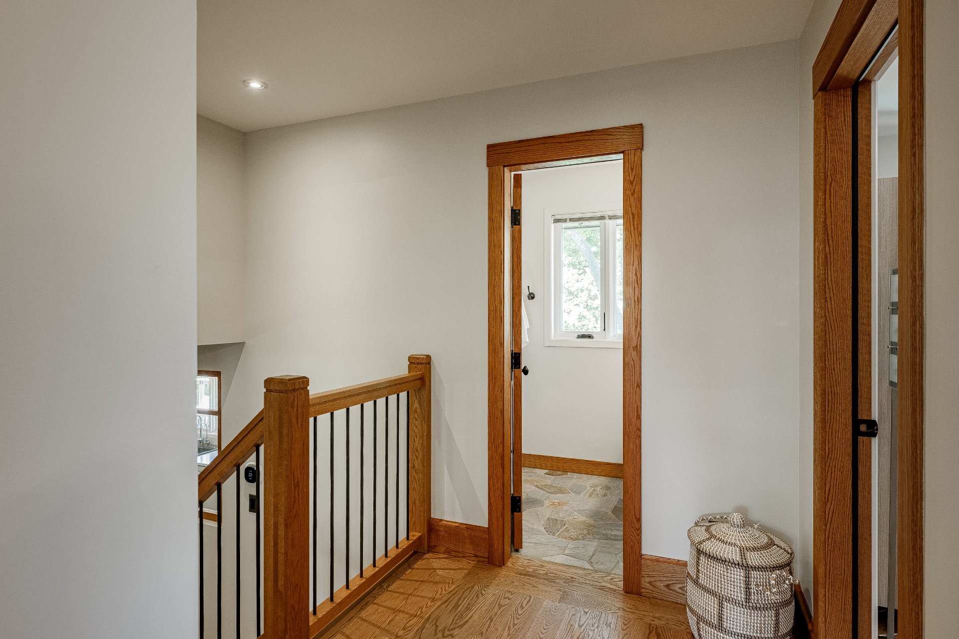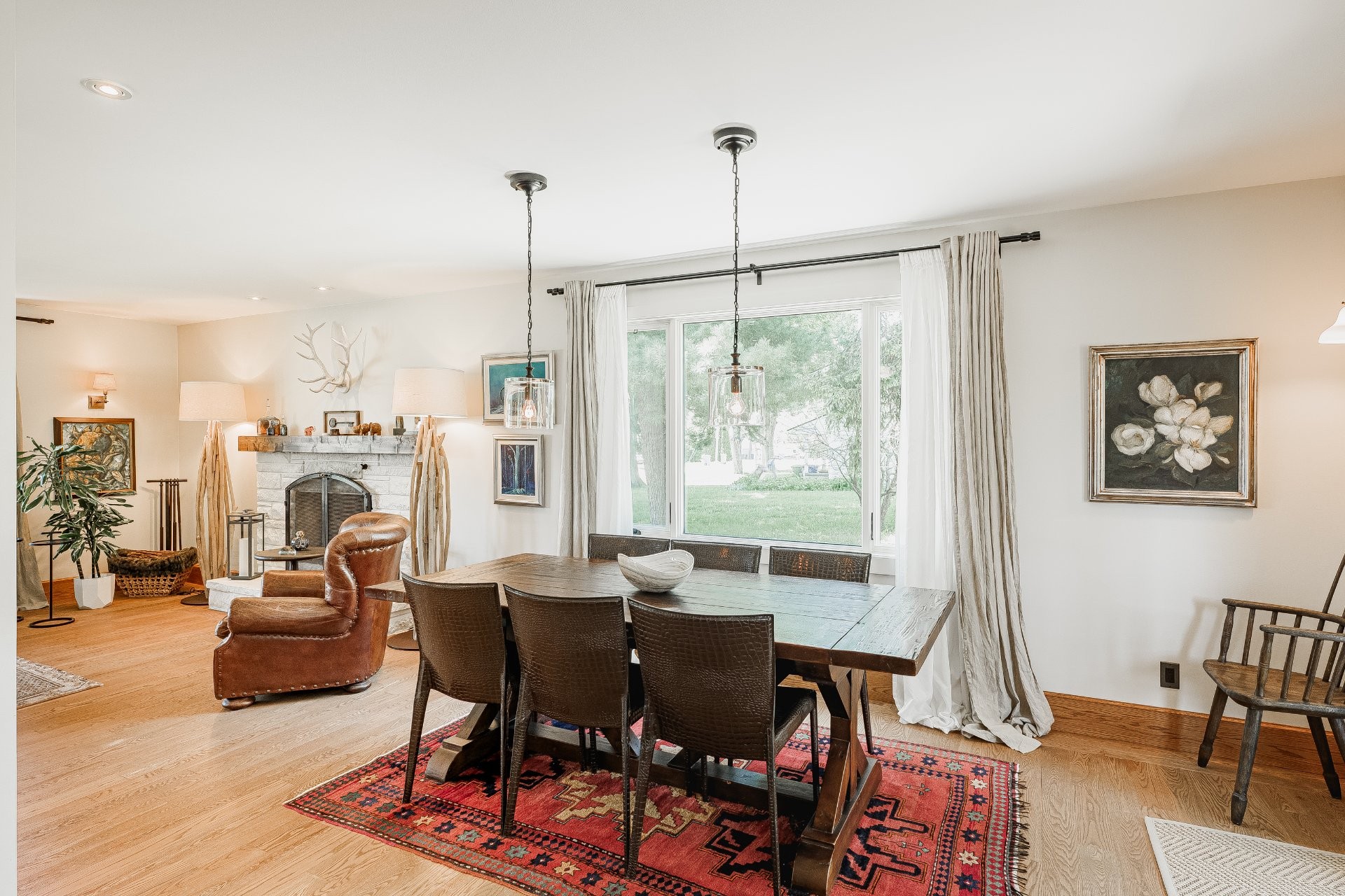 Dès l'entrée, un hall ouvert et accueillant vous mène à un salon baigné de lumière, agrémenté d'un charmant foyer en pierre au bois avec manteau en bois antique. La grande salle à manger s'ouvre, par des portes françaises, sur une vaste terrasse en bois -- idéale pour recevoir à l'extérieur et profiter de la cour arrière privée et spacieuse.
