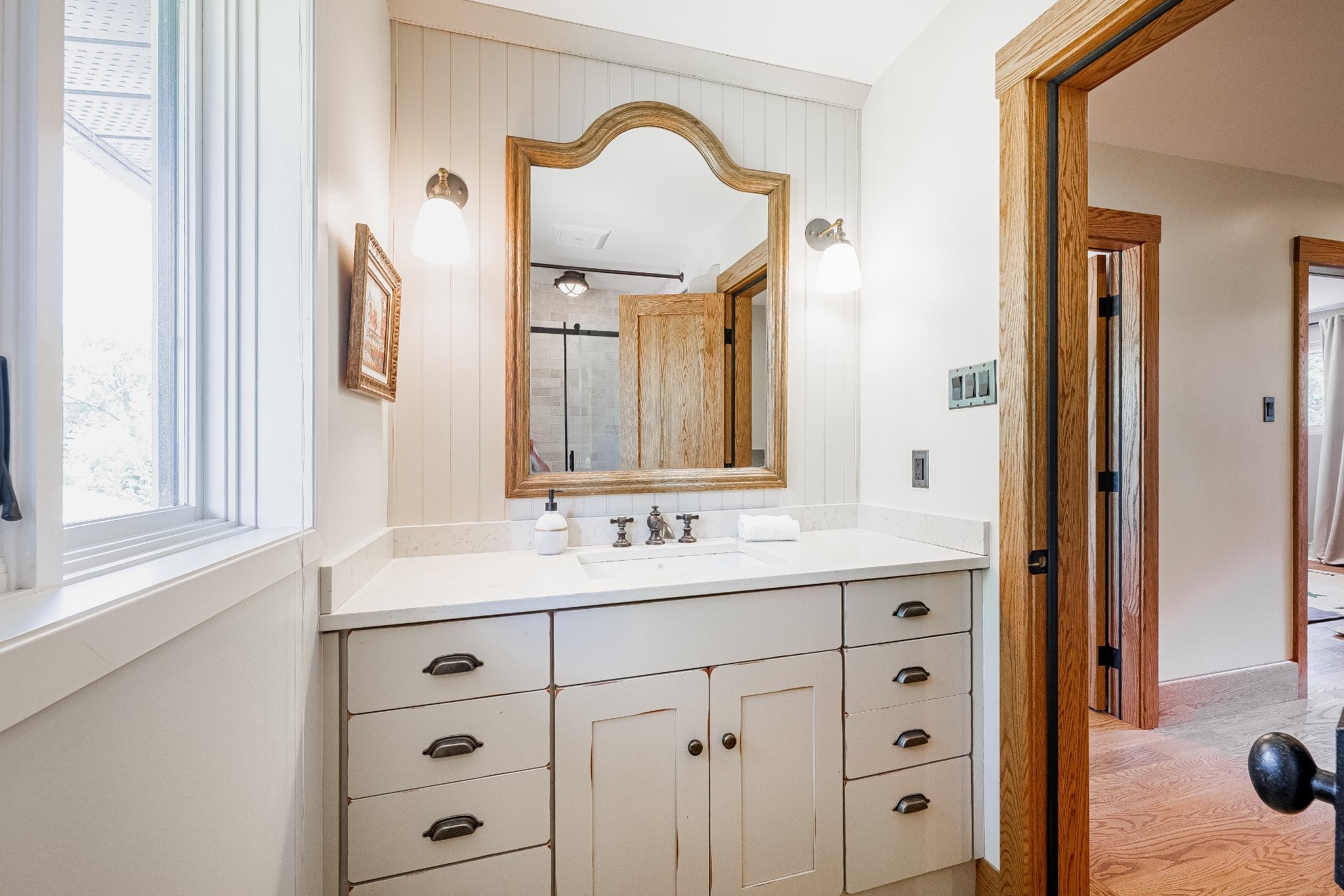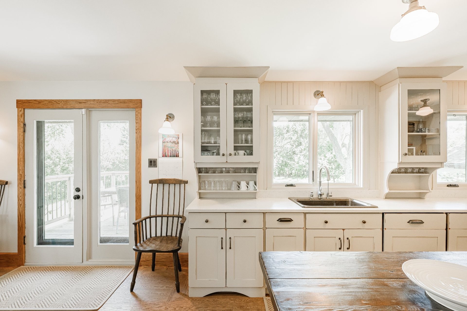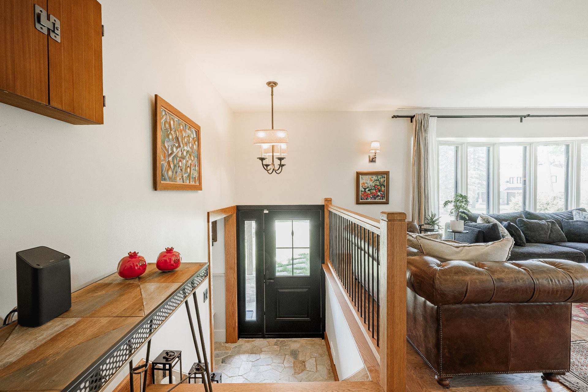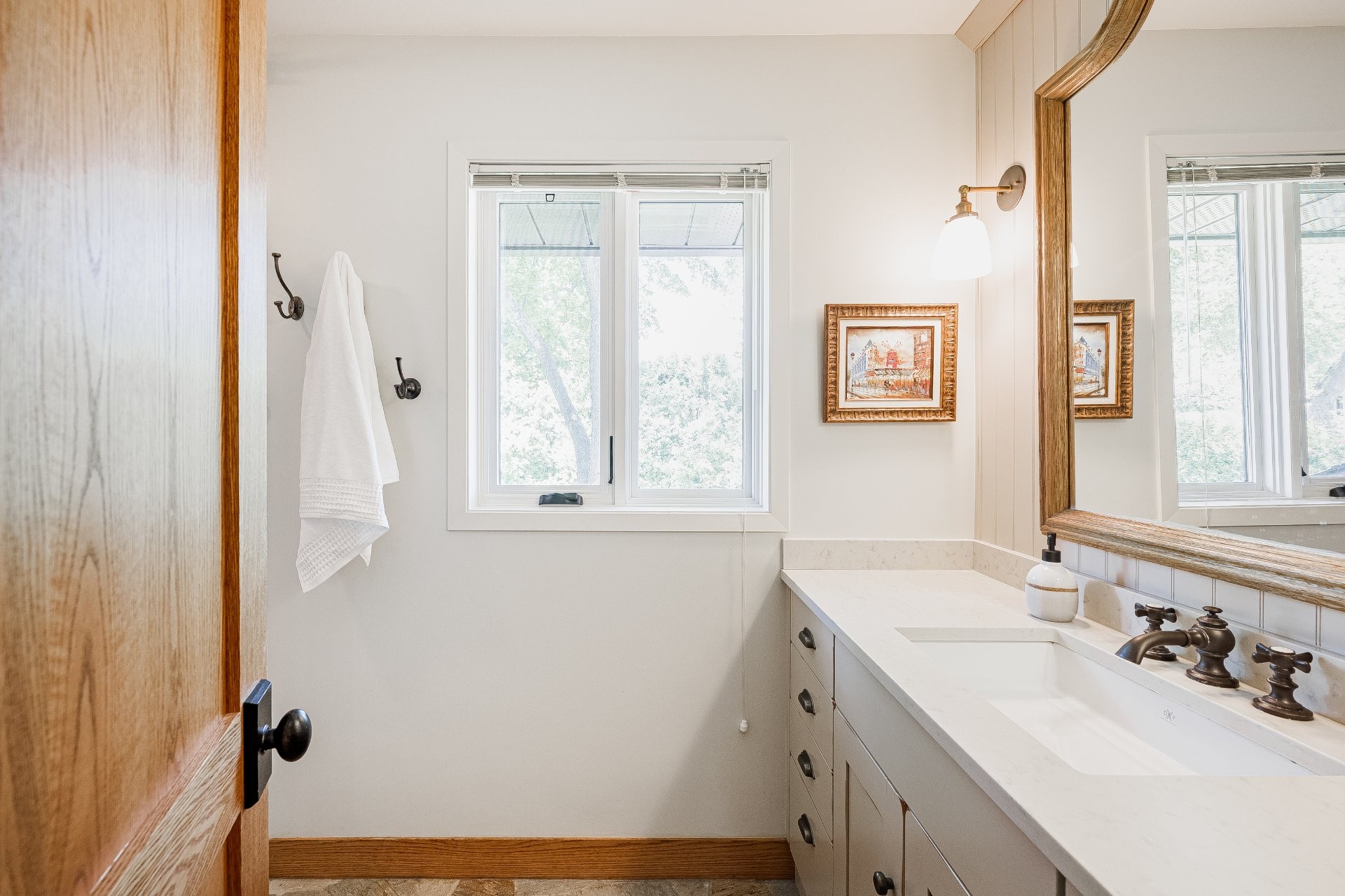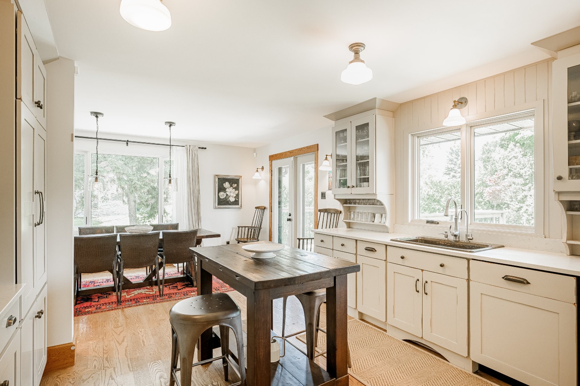 Dès l'entrée, un hall ouvert et accueillant vous mène à un salon baigné de lumière, agrémenté d'un charmant foyer en pierre au bois avec manteau en bois antique. La grande salle à manger s'ouvre, par des portes françaises, sur une vaste terrasse en bois -- idéale pour recevoir à l'extérieur et profiter de la cour arrière privée et spacieuse.