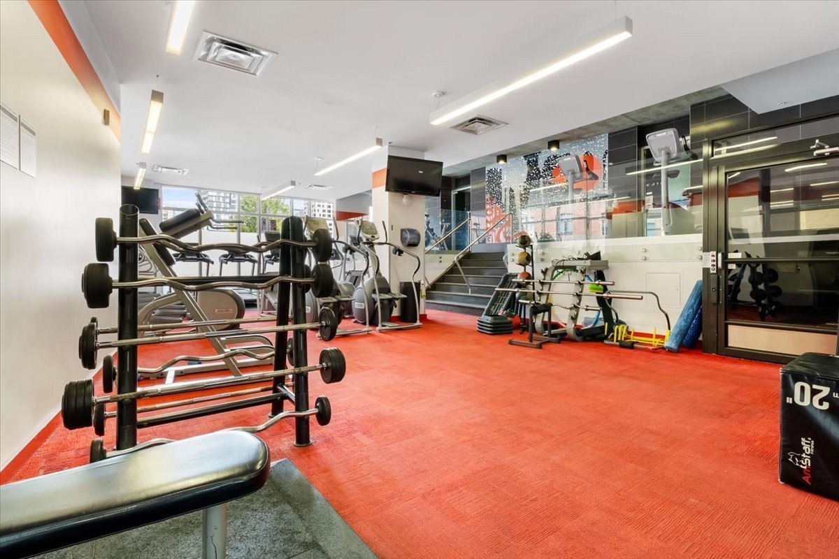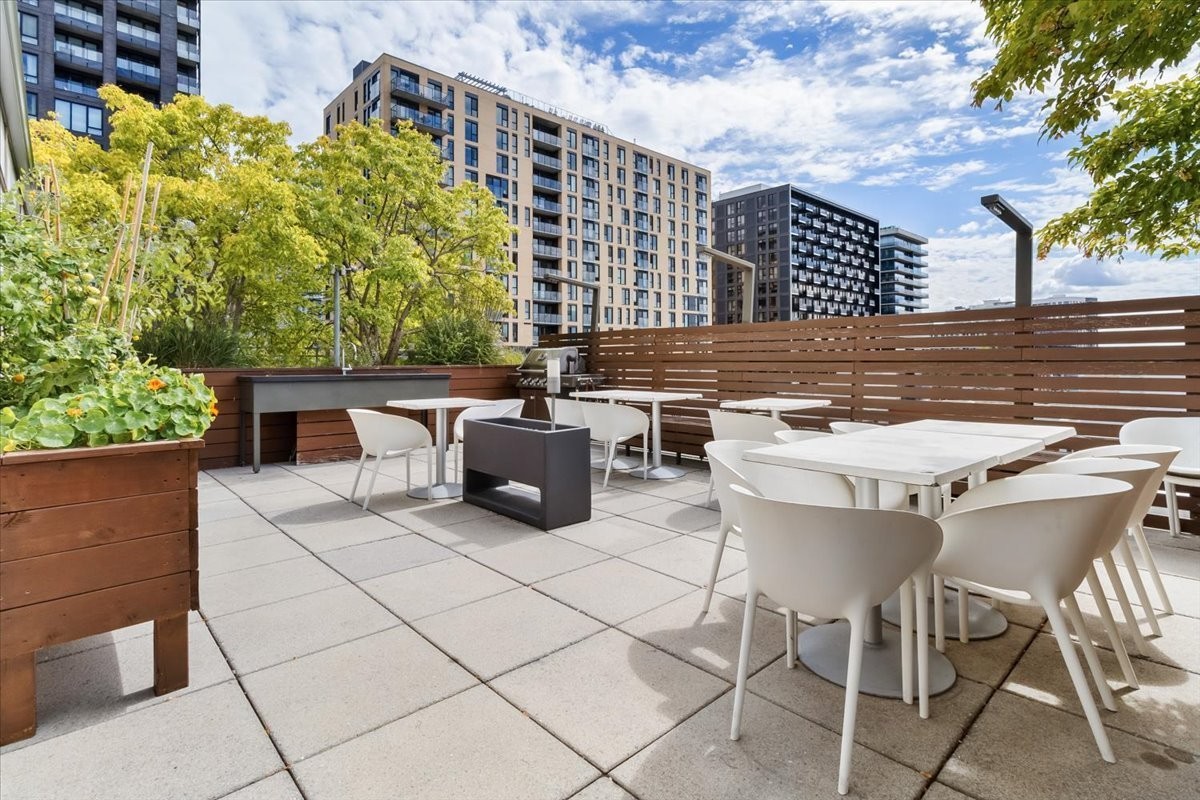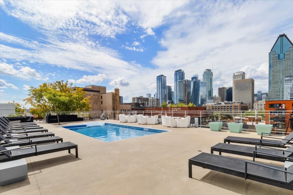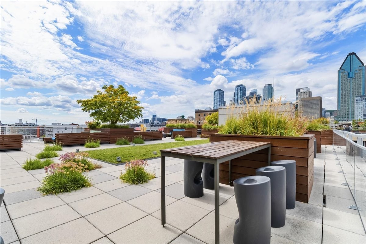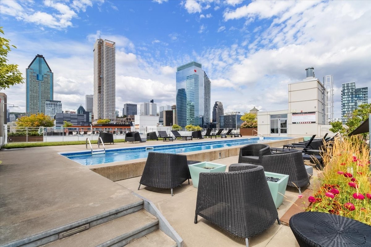E) Grands espaces communs (Table de billard, cheminée et plus à découvrir)2 piscines sur le toitJardin sur le toit avec un coin salonChalet Urbain pour les mois froidsBelles terrasses vertes sur le toit avec des barbecuesSalle d'exercice avec appareilsPiscine intérieur, sauna et hammam Bain à remous et bain froid***Eau chaude incluse dans les frais de condo, puisqu'il y a un système direct d'eau chaude
