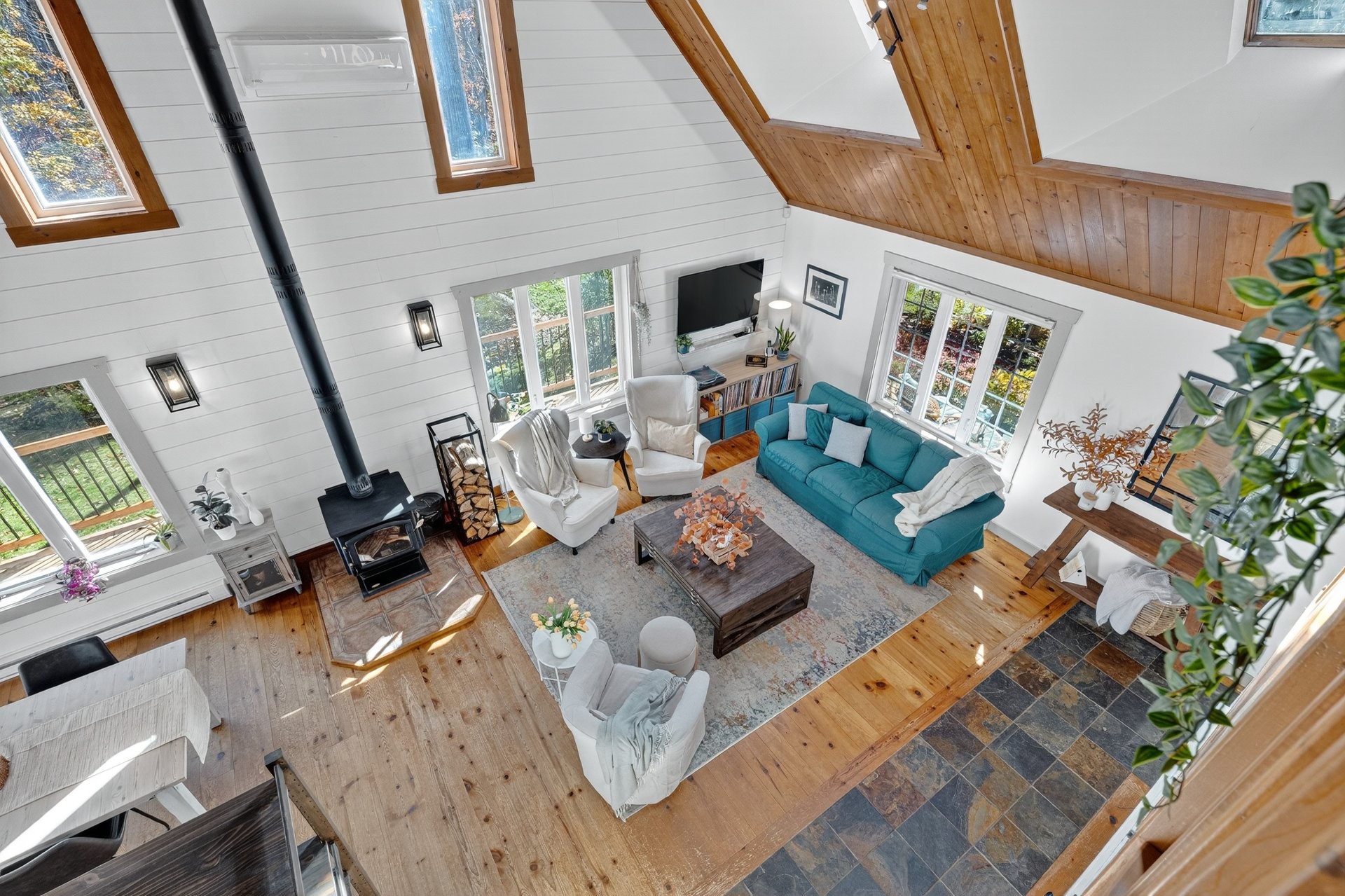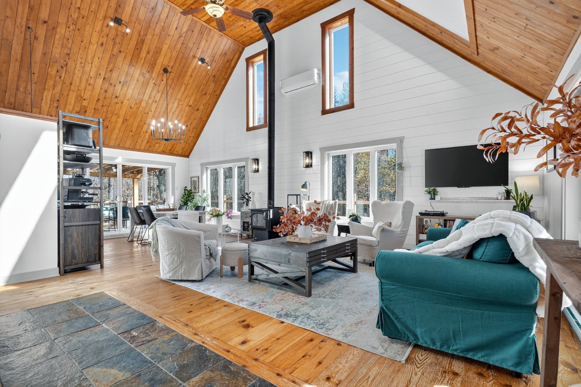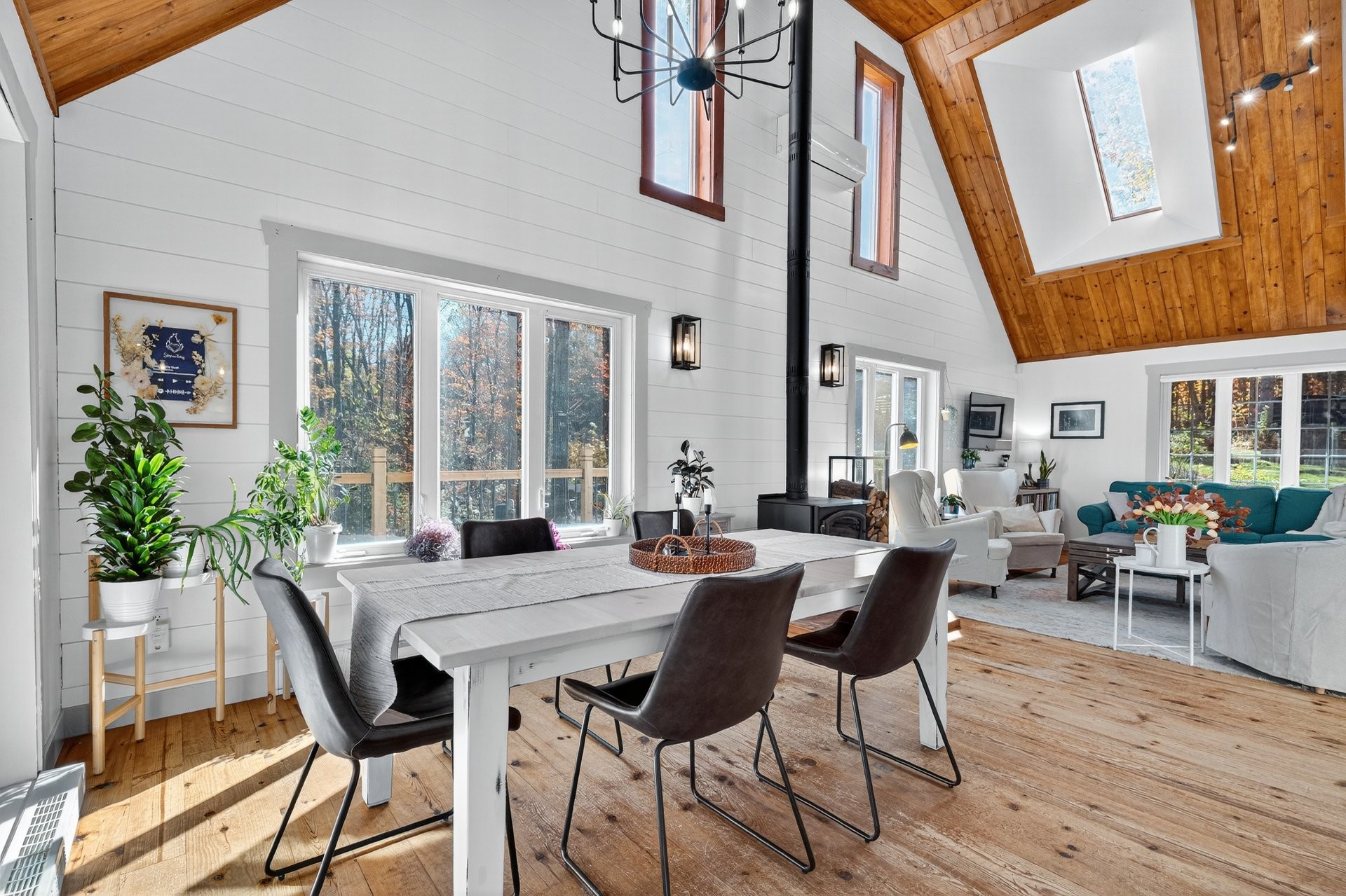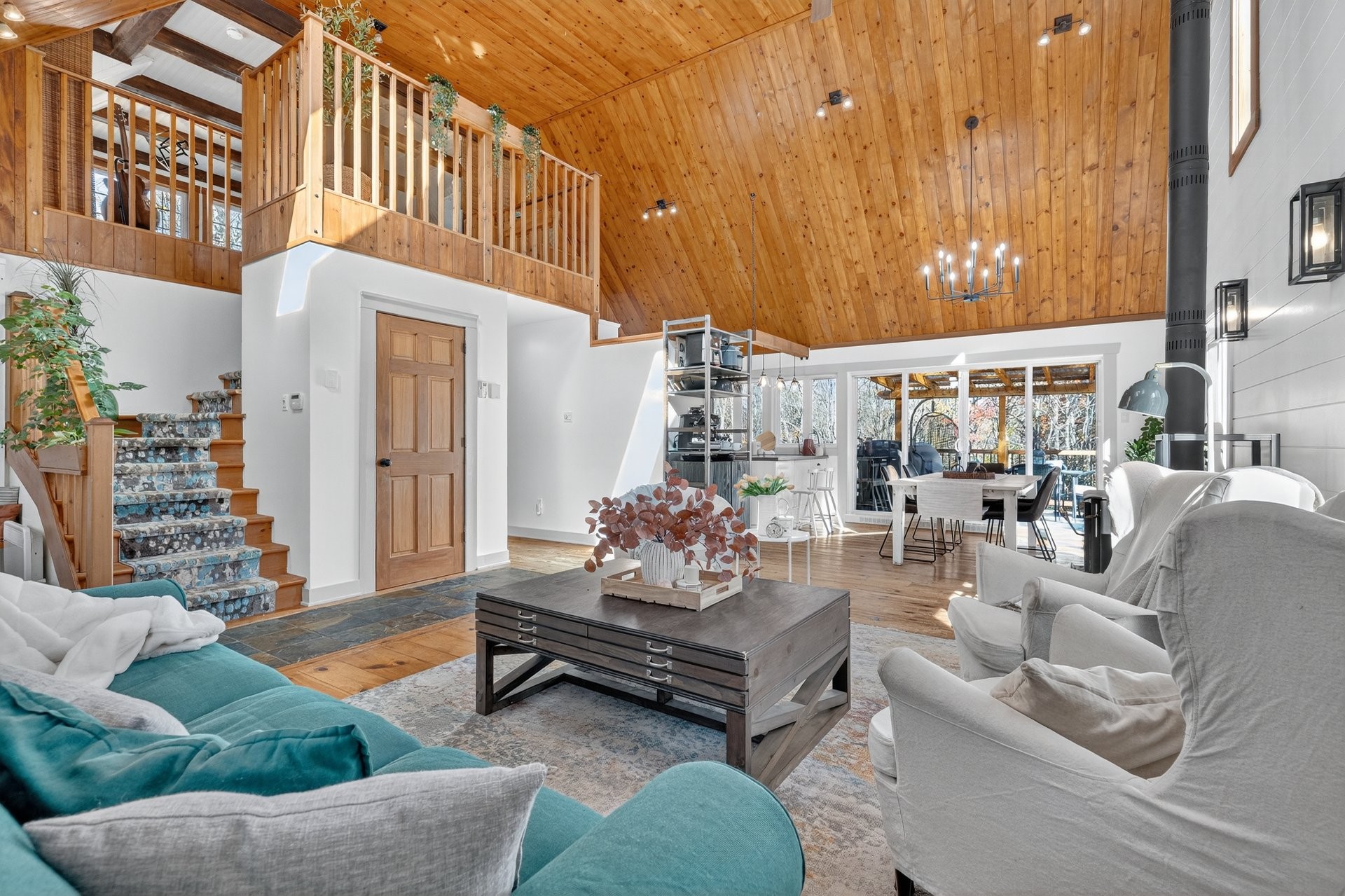 Dès l'entrée, la chaleur et la luminosité du lieu se font sentir. Les plafonds cathédrale, les poutres apparentes et les planchers de bois franc ajoutent un cachet indéniable à cette demeure accueillante. Les aires de vie à aire ouverte favorisent la convivialité et la fluidité entre les espaces, idéales pour la vie de famille comme pour recevoir. À l'étage, on retrouve trois grandes chambres, dont une superbe mezzanine privée de 24' x 14', parfaite comme chambre principale, espace d'invités ou atelier créatif. Deux salles de bain complètes desservent la propriété, dont une entièrement rénovée en 2023 avec des finitions modernes et soignées.