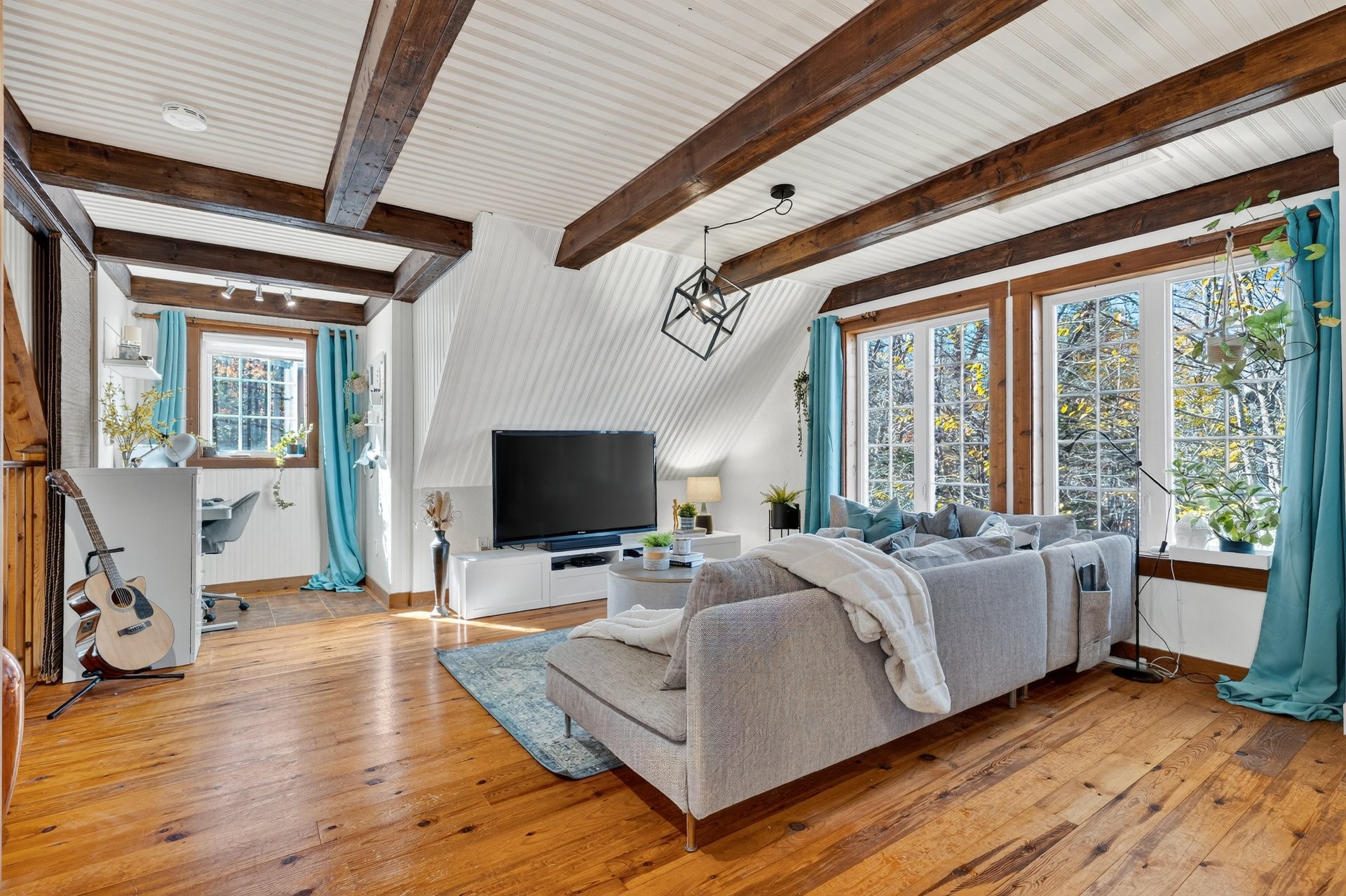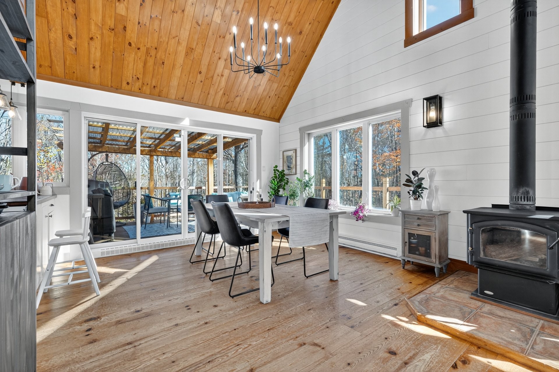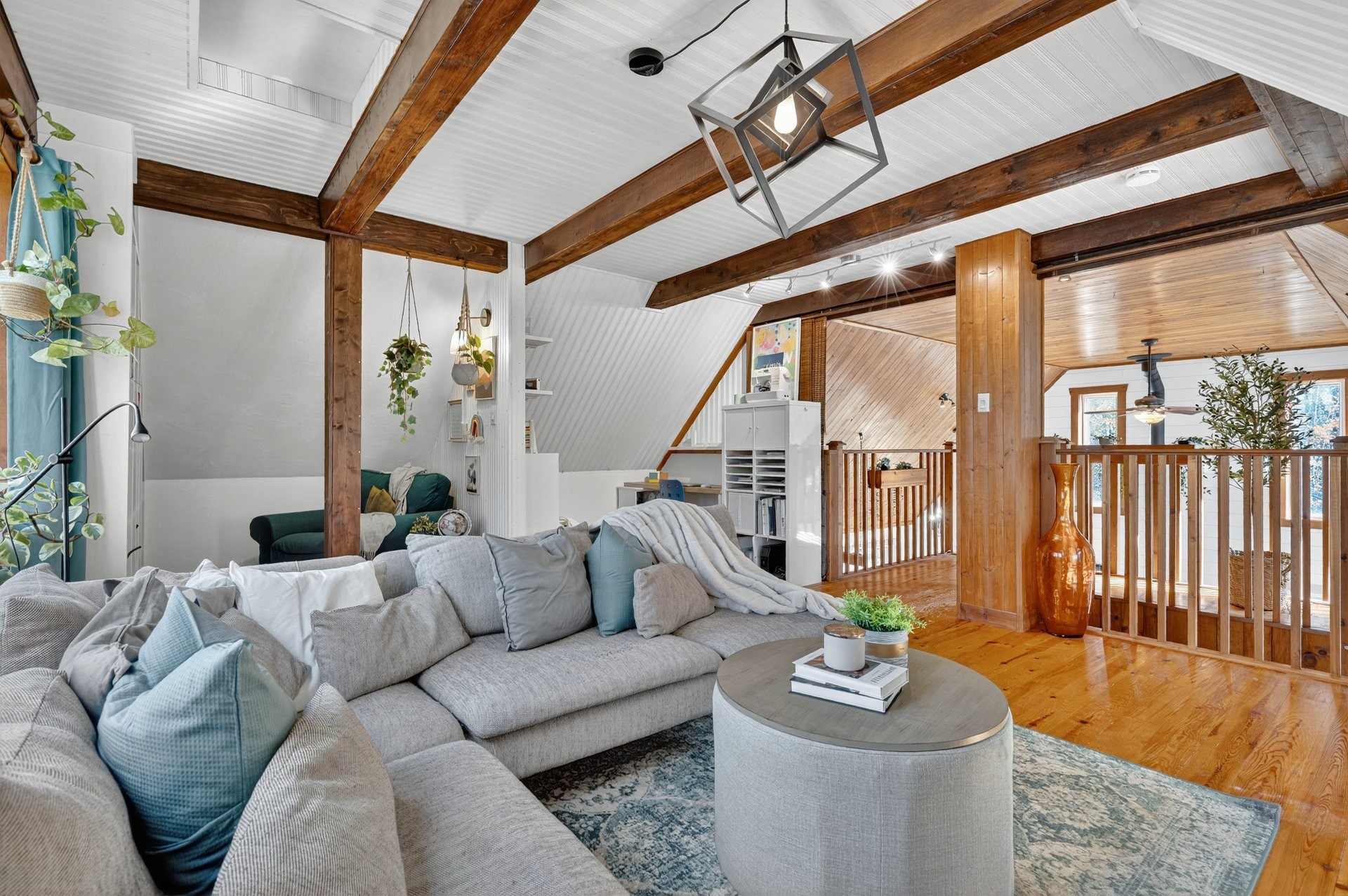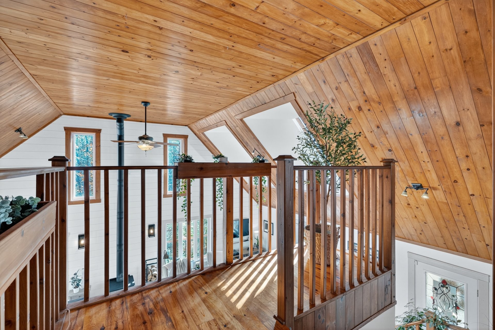 Dès l'entrée, la chaleur et la luminosité du lieu se font sentir. Les plafonds cathédrale, les poutres apparentes et les planchers de bois franc ajoutent un cachet indéniable à cette demeure accueillante. Les aires de vie à aire ouverte favorisent la convivialité et la fluidité entre les espaces, idéales pour la vie de famille comme pour recevoir. À l'étage, on retrouve trois grandes chambres, dont une superbe mezzanine privée de 24' x 14', parfaite comme chambre principale, espace d'invités ou atelier créatif. Deux salles de bain complètes desservent la propriété, dont une entièrement rénovée en 2023 avec des finitions modernes et soignées.