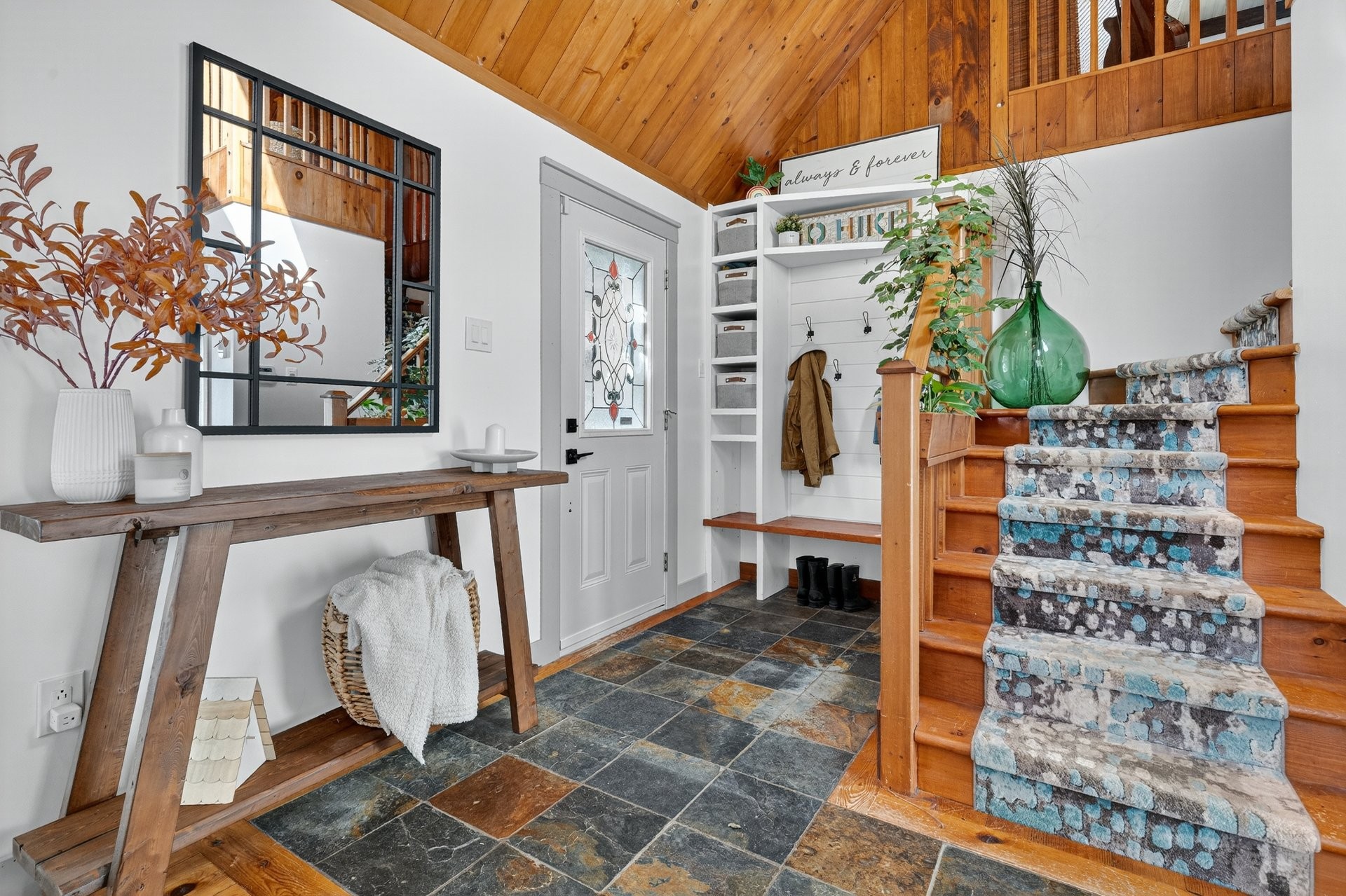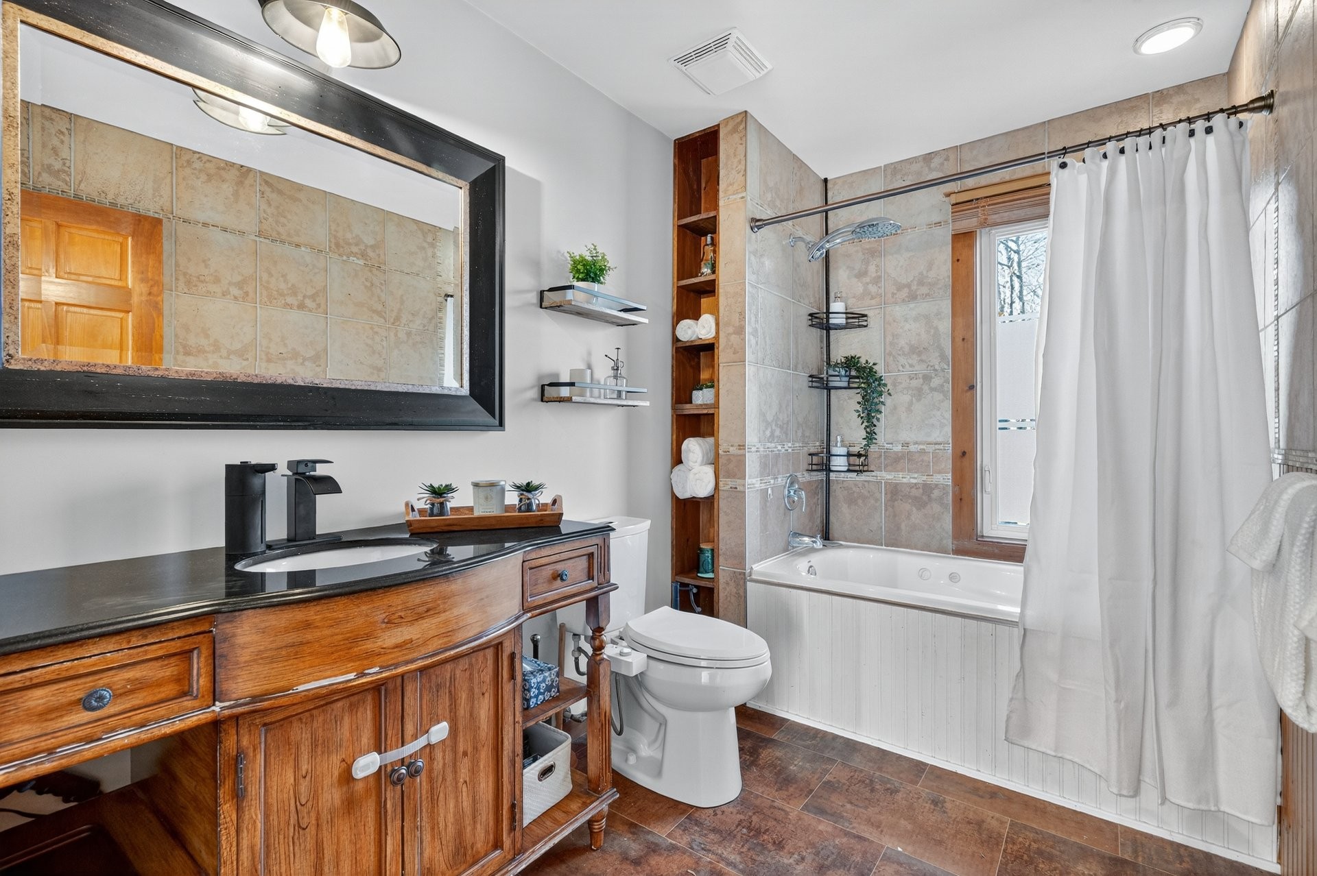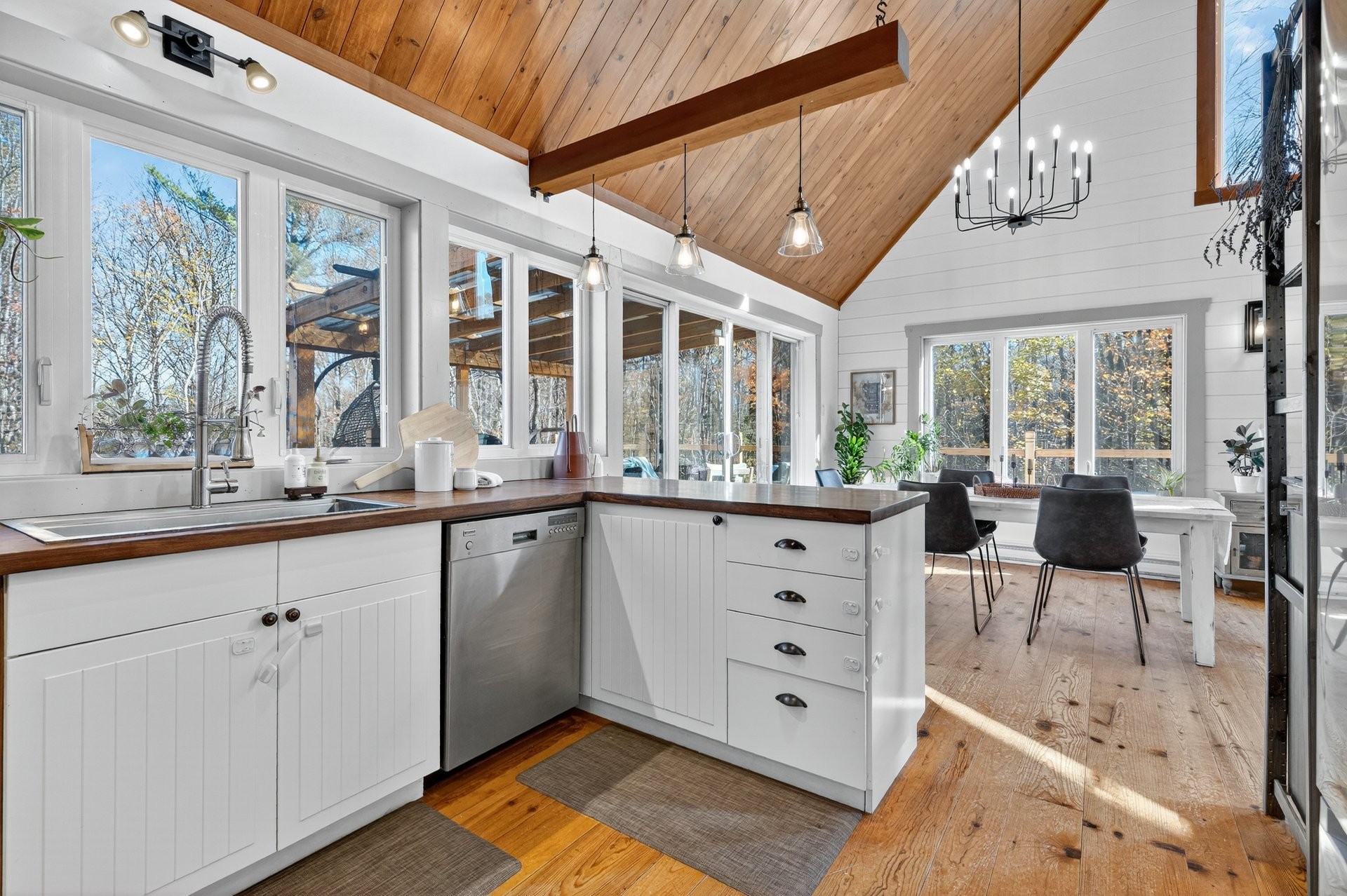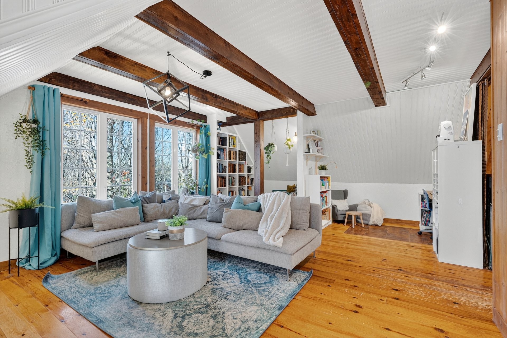 Dès l'entrée, la chaleur et la luminosité du lieu se font sentir. Les plafonds cathédrale, les poutres apparentes et les planchers de bois franc ajoutent un cachet indéniable à cette demeure accueillante. Les aires de vie à aire ouverte favorisent la convivialité et la fluidité entre les espaces, idéales pour la vie de famille comme pour recevoir. À l'étage, on retrouve trois grandes chambres, dont une superbe mezzanine privée de 24' x 14', parfaite comme chambre principale, espace d'invités ou atelier créatif. Deux salles de bain complètes desservent la propriété, dont une entièrement rénovée en 2023 avec des finitions modernes et soignées.