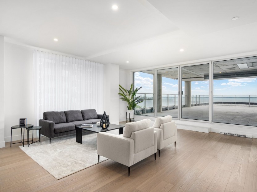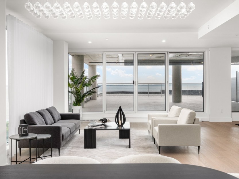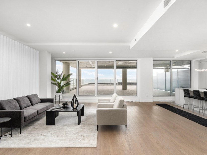 Le penthouse 1400 des Tours Lakeshore offre plus de 3 000 pi² habitables et une terrasse privée de 1450 pi² avec vue panoramique sur la baie...